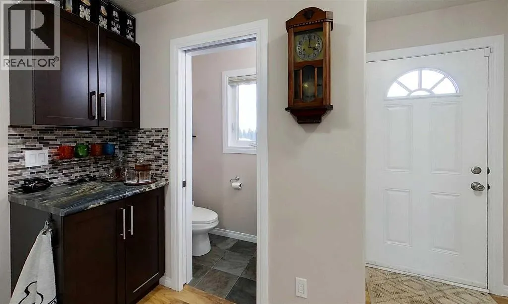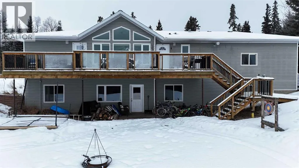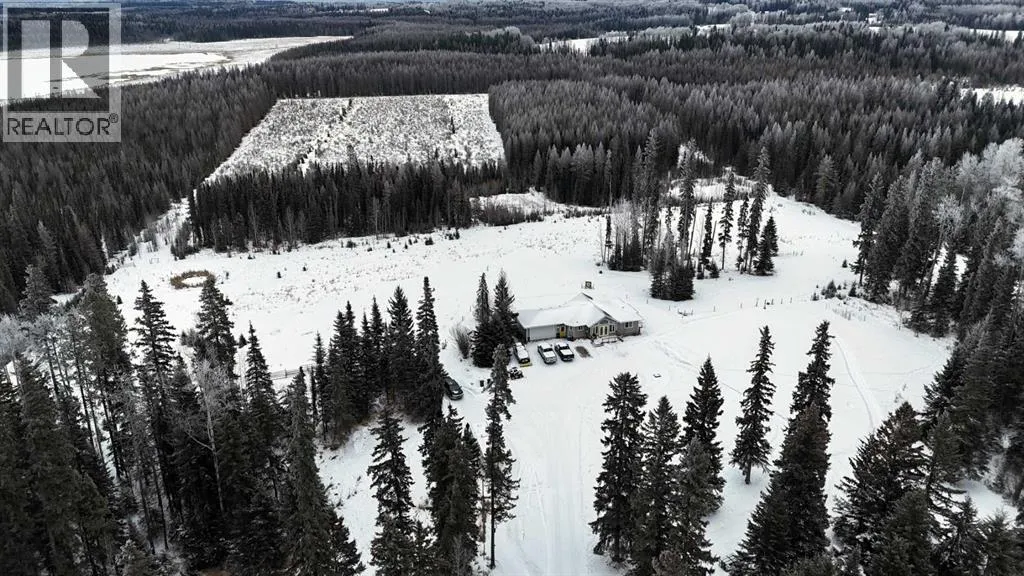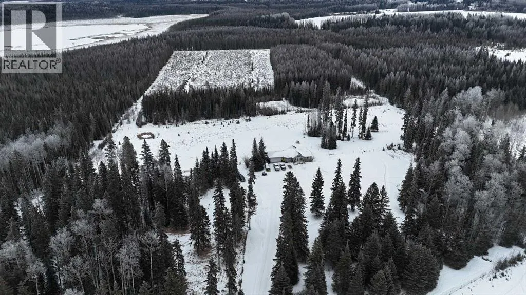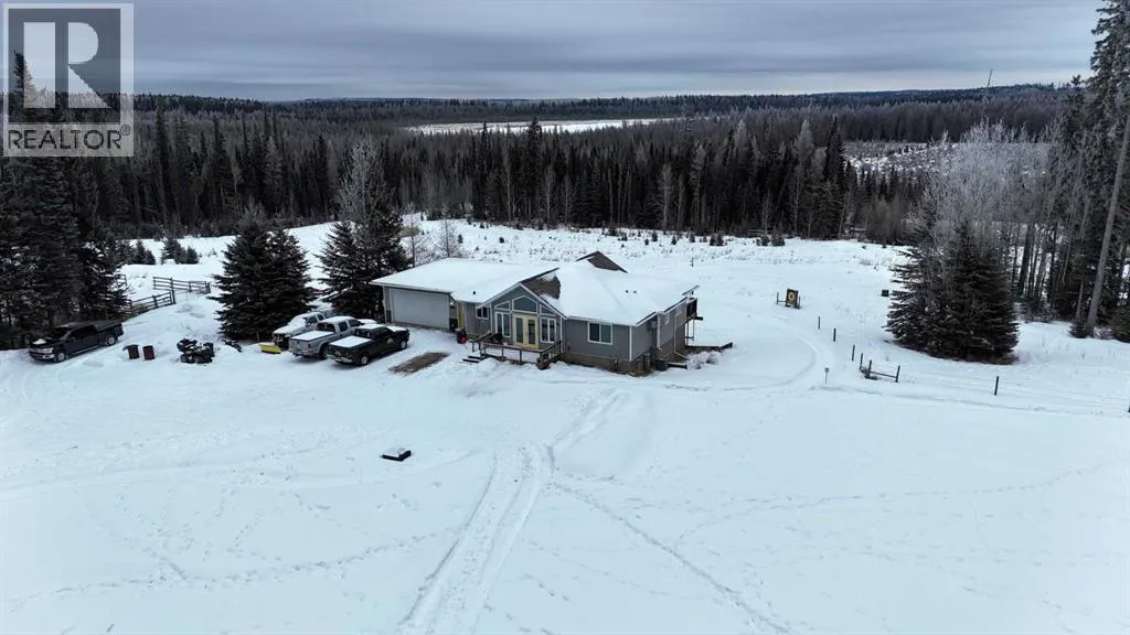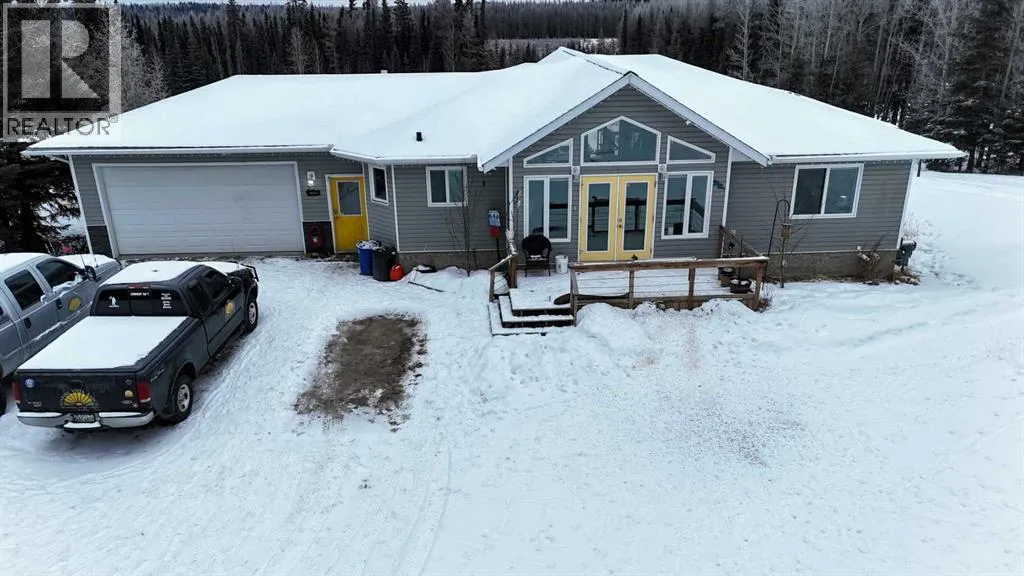 Your new acreage awaits! Just a short drive from town along the Grande Prairie Trail, this picturesque 28.5-acre property offers privacy, space, and modern comfort, backing directly onto Crown Land with access to sled trails. The beautiful bungalow with full basement welcomes you through a convenient garage entryâperfect for boots and outdoor gearâinto a spacious foyer with a 2-piece powder room. The open-concept main living area is filled with natural light from floor-to-ceiling windows at each end, vaulted ceilings, and generous room sizes throughout. The living room overlooks the backyard and provides access to the massive rear deck, while the dining room is ideal for family gatherings and features French doors to the front deck. The chefâs kitchen impresses with espresso cabinetry, custom built-ins, pull-out shelving and drawers, a powered island with eating bar, and a walk-in pantry with power. Two good-sized bedrooms are located on the main floor, including the primary bedroom with access to the back deck. The main bath features a jacuzzi tub, large shower, and additional storage. New custom honeycomb blackout up/down blinds are installed on all windows, with laminate and linoleum flooring throughout. The bright basement boasts 9â ceilings and is partially finished (flooring and ceiling remaining). It includes two large bedrooms with walk-in closets, a brand-new 3-piece bathroom, a spacious rec room for movie nights, and additional space for a pool table or workout area. A walk-out leads to the covered patio and yard. Laundry, mechanical, and ample storage complete the lower level. The home features central vac, in-floor heat, and central air conditioning. The attached heated 23â x 21â garage offers hot and cold water taps and excellent storage. The expansive rear deck spans the length of the home with plexiglass inserts, natural gas BBQ hookup, and covers the patio below. The property was developed in 2013 with all new services. Outside, the fully fenced and cross-fenced acreage (to the tree line) is well set up for animals with pens, heated auto-water, chicken coop, duck pond, and a 10â x 12â greenhouse. Gardeners will appreciate the raised garden beds, raspberry patch, and flower beds. Enjoy peaceful mornings and stunning sunsets from the east- and west-facing decks while watching the abundance of wildlife roam. (id:27476)