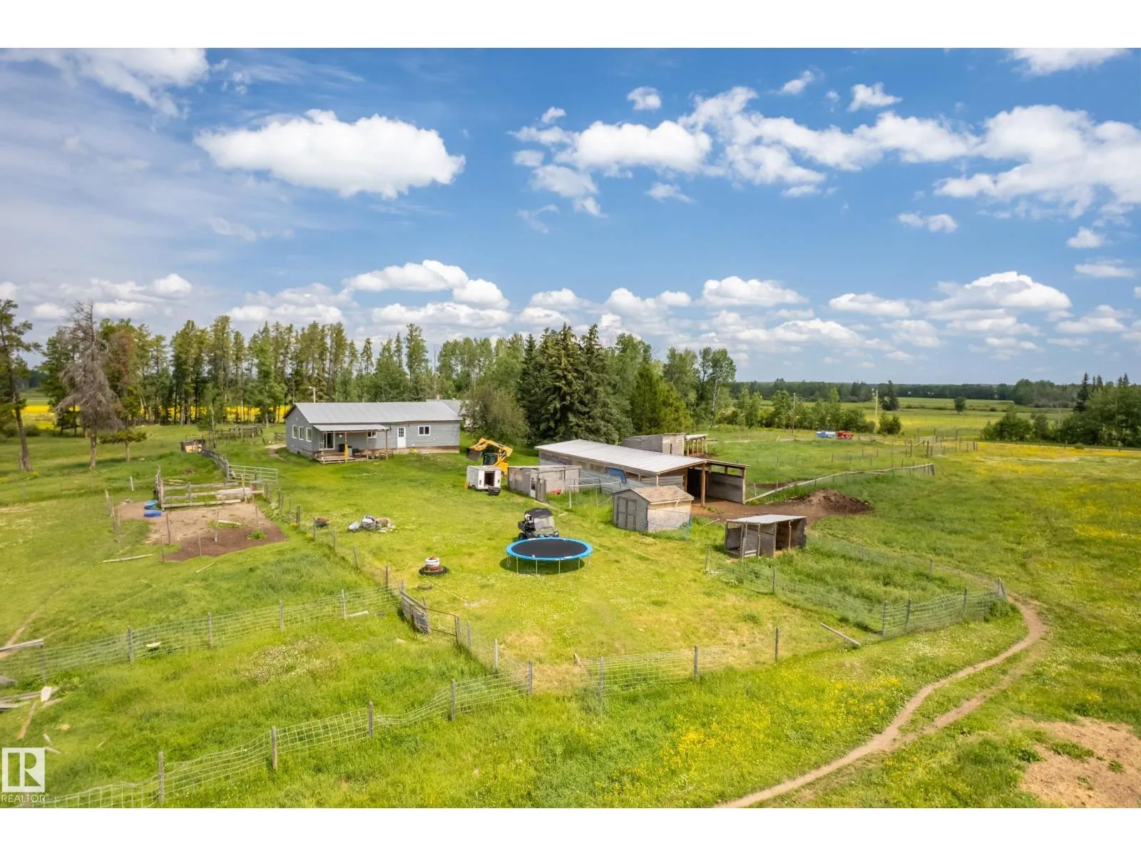 Enveloped in the natural splendor of 155 pristine acres, this 2014-built bungalow offers a rare blend of peace, potential, and natural wonder. The open-concept layout is warm and inviting, showcasing natural wood features, 2 spacious bedrooms, a 5-piece bath, rustic culinary space and extra windows that bathe the interior in natural light. Outside, enjoy the quiet majesty of rolling meadows, two natural water features, and towering forests that create an enchanting landscape teeming with wildlife. A 30x50 barn, storage out-buildings, artesian well (with two additional bored wells) and included farm equipment support hobby farming, hunting, or retreat-style living. An original homestead offers future restoration potential. With an approved subdivision plan already in place, the possibilities are endlessâmulti-generational living, a lifestyle retreat, or your dream rural escape. (id:27476)