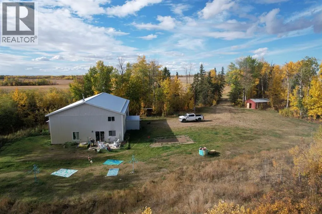 Very Private 15+/- acre property with newer 40X60 Shop/House located North East or Rycroft AB. Yard site is tucked away in the trees away from the road and features some corrals and a watering bowl for your livestock. The shop was built in 2015 and has 1500 s/ft of living space with 3 bedrooms and a bathroom upstairs and open kitchen / living area on the main floor with another bathroom. Home and shop are heated with wood and water is currently on a cistern but is also plumbed in to the dugout. This would make the perfect start to your farm! (id:27476)