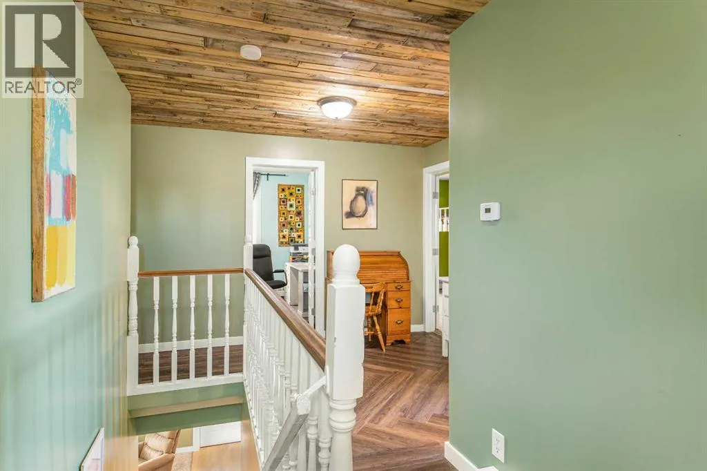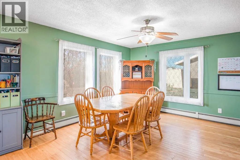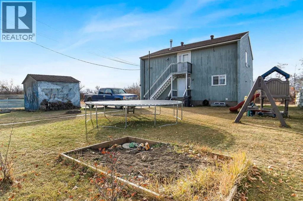 Looking for space, comfort, and a peaceful location? This large, well built home in the Village of Rycroft offers all that and more! Perfectly positioned on a quiet corner lot at the edge of the hamlet, this property enjoys a scenic setting with trees across the road in front and a open lot, ball diamond, and school grounds just across the other road. Inside the home, the main floor is bright and welcoming, filled with natural light from large windows. The generous living room, dining area, and kitchen provide plenty of room for family gatherings. The kitchen features tons of cabinetry, a built in pantry, and plenty of counter space for cooking and entertaining. A spacious rear entry offers access to a convenient half bath and a versatile flex room (also accessible from the living room) currently used as a library but ideal as a home office, den, or even an extra bedroom. Upstairs, youâll find four bedrooms including a massive primary suite complete with a ensuite and walk in closet. The other three bedrooms are roomy, with one featuring built in bunk, perfect for kids! A second full bathroom and a landing area large enough for a piano, reading nook, or workspace complete the upper level. The basement adds even more living space with a large rec room, laundry area, two storage rooms, a half bath, and another flexible room that could serve as a bedroom or office. This home has seen numerous updates over the years including vinyl windows, new hot water tank, refreshed bathrooms, updated flooring, and modern paint. It was overbuilt with 2x8 exterior walls, making it exceptionally solid and energy efficient compared to most homes built in that era. Outside, youâll find a two vehicle concrete parking pad, a handy storage shed, and a spacious yard with room for kids to play, a firepit, or a garden. If youâre looking for a comfortable, well maintained home with plenty of room for the whole family in a quiet small town setting this one is a must see! Call your favorite rea l estate professional to book a viewing today! (id:27476)