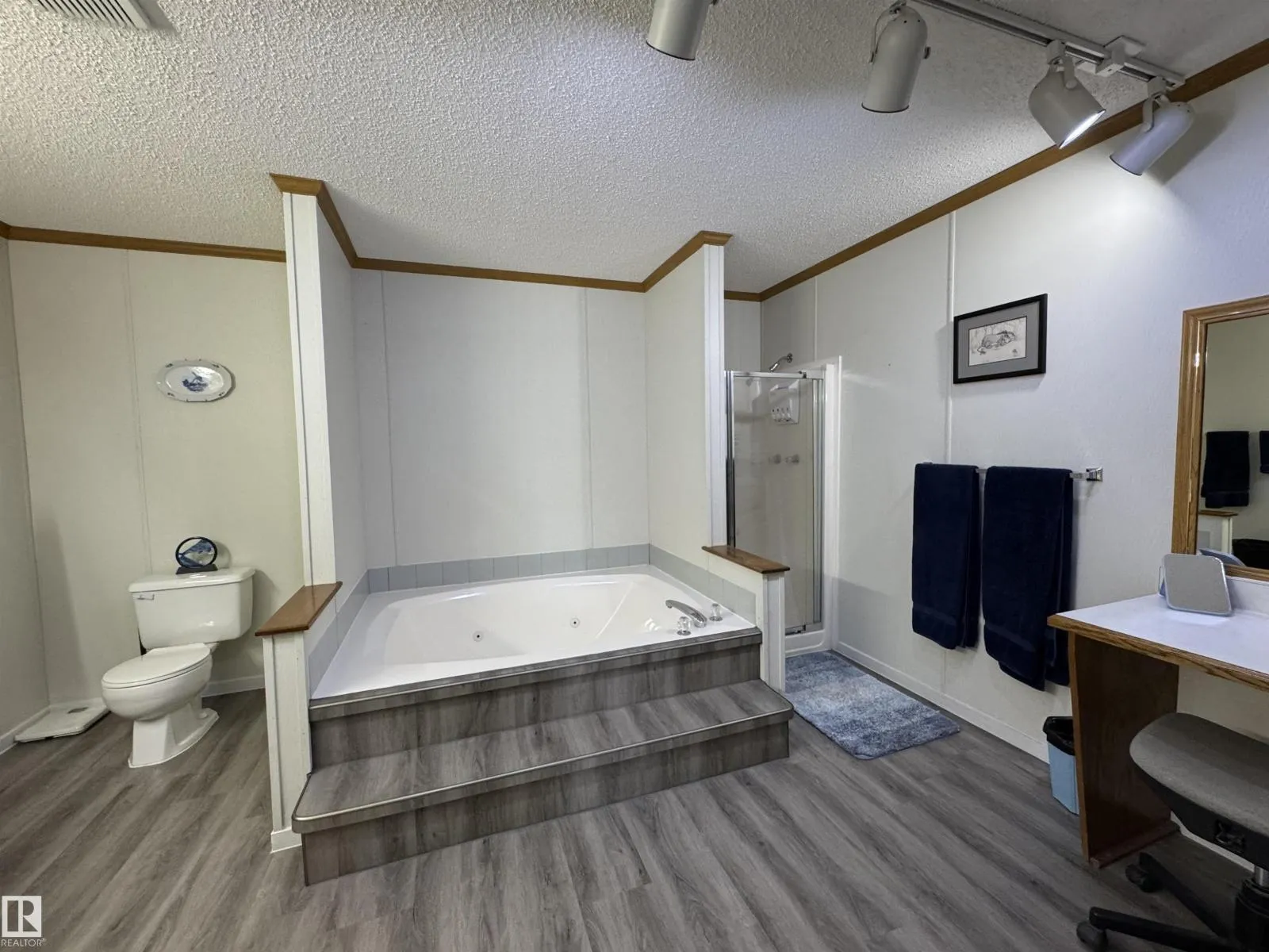 METICULOUSLY maintained 4 BEDROOM + HOME on a DOUBLE LOT! This amazing home features a 4 bed up and 4 multi-purpose rooms down with a large recreational area. Enjoy the cozy in-floor heating on the lower floor from a new boiler. A vaulted ceiling and large kitchen skylight on the main floor create an open and inviting kitchen, dining and living space. The large primary bedroom is appointed with a huge ensuite and jetted tub. You'll appreciate the upstairs laundry/storage room and newer maintenance-free roof and windows throughout! This is a vehicle enthusiast's paradise with a huge driveway and an oversized, infrared heated triple car garage with a drive thru bay and loads of storage cabinets! The sturdy garden shed has an overhead door. Low maintenance deck and easy to care for landscaping. Programmable exterior Gemstone LED lights offer beautiful options all year long. Tucked away in a quiet corner of town and only a 10 minute drive to Tofield and 50 minutes to Edmonton. What more could you want?! (id:27476)