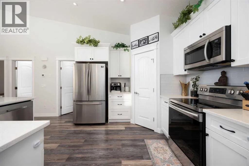 Welcome to this immaculate, upgraded estate offering over 3,165 SQFT of total living space with 7 bedrooms, 4.5 bathrooms, a triple attached heated garage, and income potential in the basement â all situated on nearly 2 acres of beautifully cleared land backing onto mature trees. This is a rare opportunity to enjoy the perfect balance of luxury, functionality, and peaceful acreage living.Step inside to a bright, open-concept main floor featuring vaulted ceilings, luxury vinyl plank flooring, and oversized windows that flood the space with natural light. The chef-inspired kitchen is beautifully finished with white quartz countertops, a central island with breakfast bar, apron-front sink, shaker-style cabinetry, designer lighting, glass subway tile backsplash, a walk-in pantry, and premium stainless steel appliances.The spacious primary suite at the front of the home offers a custom walk-in closet and a stunning 5-piece ensuite with dual sinks and quartz vanity. Two more bedrooms and a 4-piece bathroom complete this section of the main level.At the rear of the home, a separate living area provides added flexibility with its own full kitchen, family room, two bedrooms, a 4-piece bathroom, a guest powder room, and access to the back deck with views of the expansive yard â ideal for multigenerational living or guest use.The fully developed basement adds even more value with a kitchenette, large recreation room, two bedrooms, a 4-piece bath, and a private laundry area â offering excellent income potential or extra family space.Outside, enjoy a raised back deck, triple heated garage, RV parking, and the privacy of your own treed sanctuary. This home is truly move-in ready with endless possibilities. Donât miss your chance to own this exceptional property located in the amazing community of Saprea Creek, where you can golf, ski/ snowboard, ATV/OHV trails and so much moreâ book your private showing today! (id:27476)