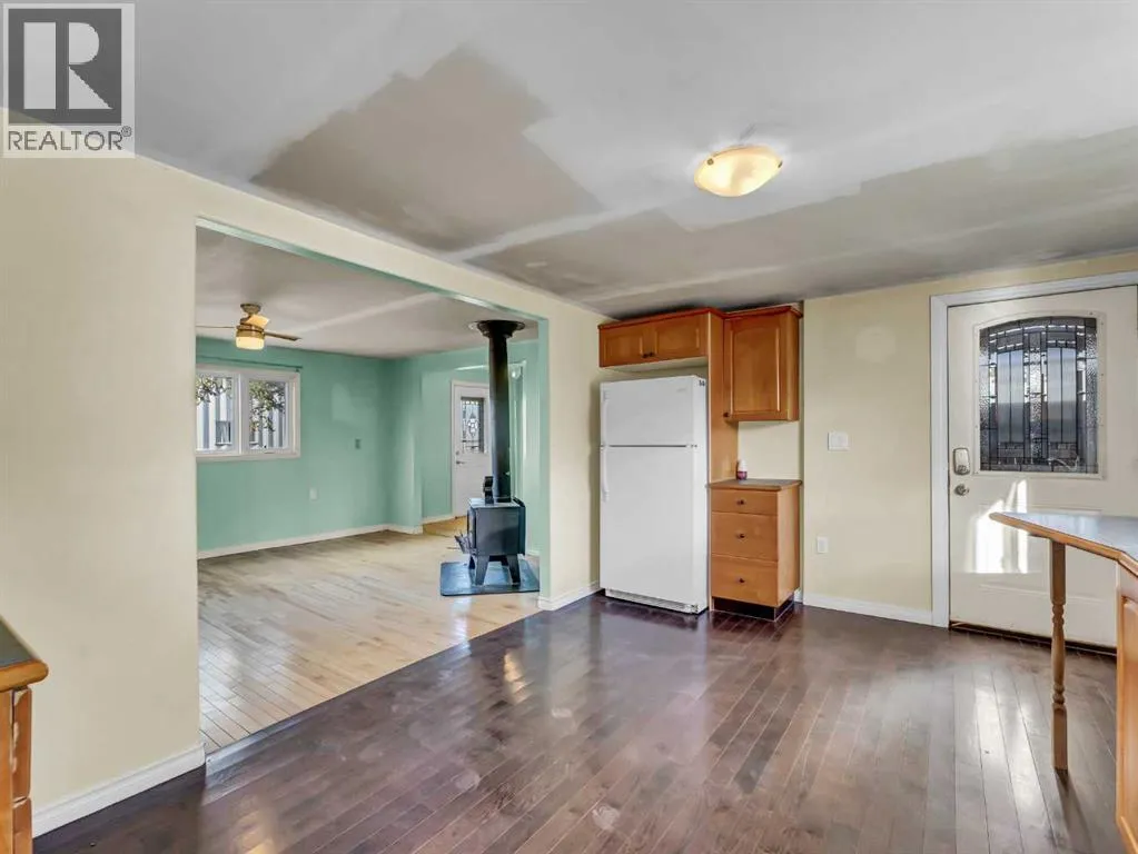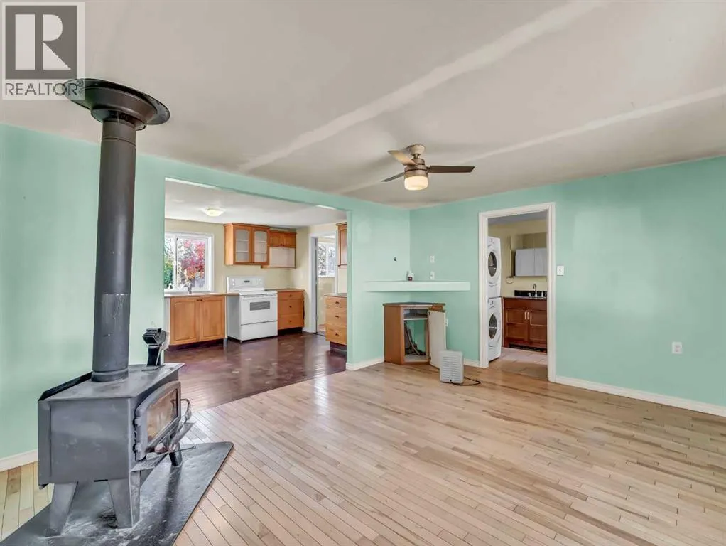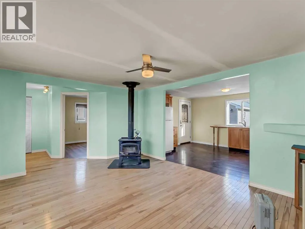 Looking for affordable small-town living with room to breathe? Welcome to 17 2 Street W in Schuler â a charming 2-bedroom, 1-bathroom bungalow situated on an impressively large double lot. Step inside to find a bright, spacious living room with a cozy wood-burning fireplace, perfect for chilly evenings. The kitchen offers plenty of space for cooking and gathering, while the updated 4-piece bathroom includes convenient stacked laundry. The home offers a large primary bedroom plus a second smaller bedroom or office/den â ideal for guests or working from home. Outside, youâll love the massive yard with room for gardening, pets, or future projects. Thereâs also a single detached garage and two storage sheds providing lots of space for tools and toys. This property offers comfortable living with all the charm of a quiet rural community. (id:27476)
