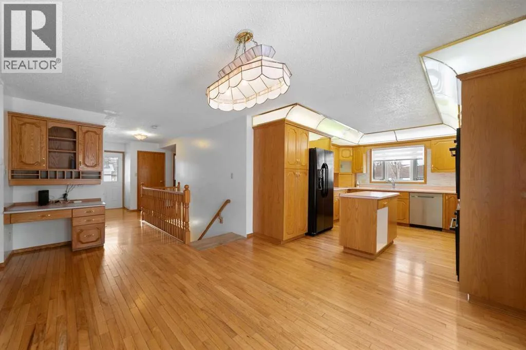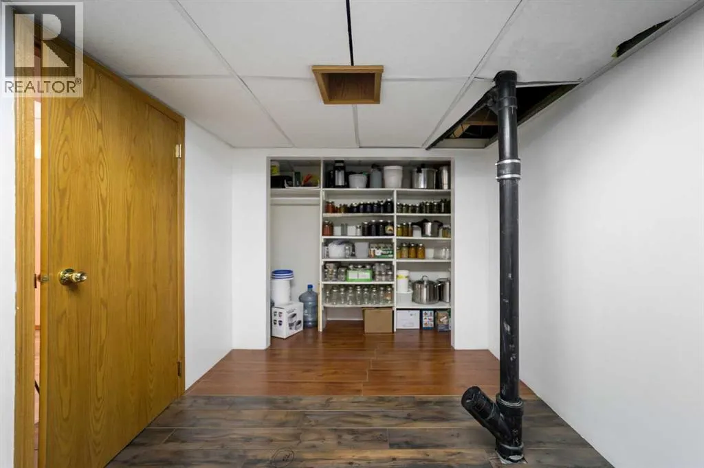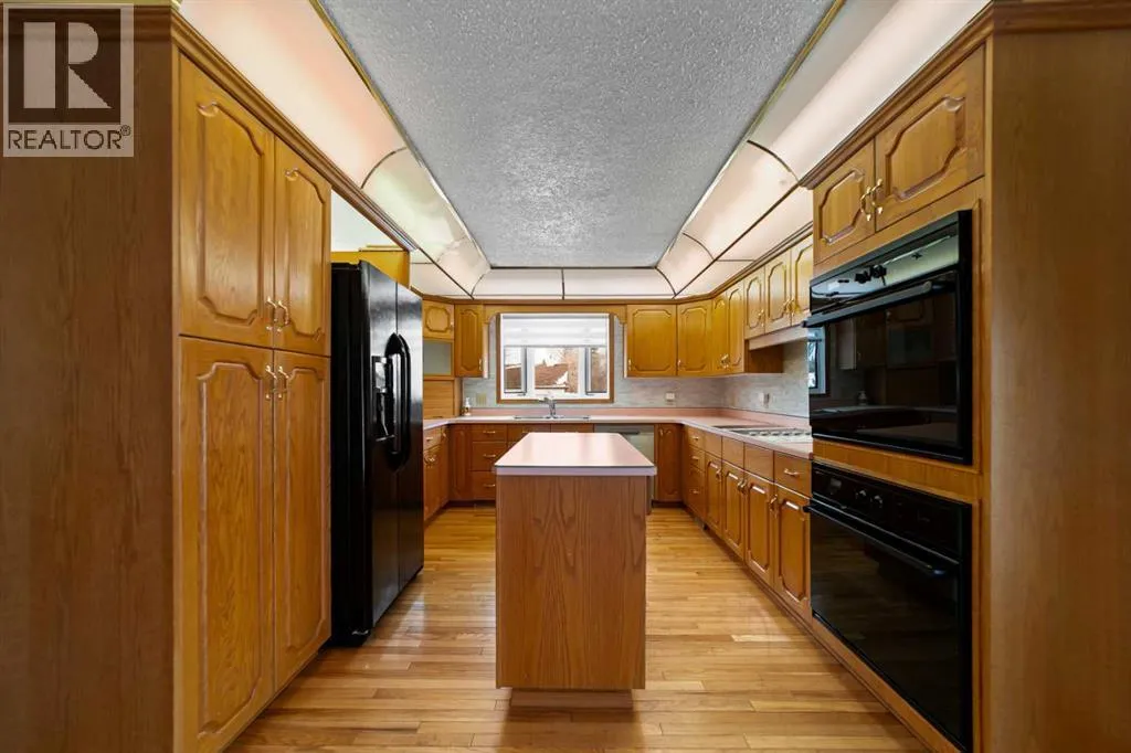 Welcome to this exceptionally spacious family home in Sedgewick, offering 3,100+ sq. ft. of living space and a rare main-floor layout with 5 bedrooms! Designed for busy households, the main level features 2 bathrooms, a massive family room with a wood-burning fireplace featuring brick surround and mantle, plus an impressive 550+ sq. ft. living roomâperfect for gathering, entertaining, or giving everyone room to spread out. The kitchen is built for function and hosting, offering a large layout with a moveable island, double built-in ovens, an electric cooktop with griddle, plus built-in fans and fat trays, along with a fridge with water & ice and a new dishwasher. Youâll also love the mix of hardwood flooring and some newer flooring in bedrooms, plus thoughtful upgrades throughout including pot lights, closet organizers, central air conditioning, and plenty of storage options. The finished basement adds even more flexibility with a family room, 2-piece bathroom, oversized storage room, utility room, and a laundry room set up for TWO washers and TWO dryersâan incredible bonus for large families. Additional features include a laundry chute for added convenience. Outside, enjoy a fully fenced backyard with extra storage options, and the attached double garage is finished, heated, and upgraded with LED lighting. Located just a couple blocks from the Kâ12 school, playgrounds, and Main Street, this is the ideal home for growing families looking for space, comfort, and convenience. (id:27476)