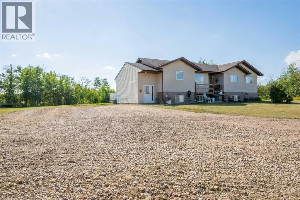 Nestled on 27.87 acres, this spacious home offers the perfect blend of comfort, functionality, and country living. With 7 bedrooms and 3.5 bathrooms, thereâs plenty of room for family and guests alike. The main floor showcases a bright open-concept layout with large windows that fill the home with natural light. At the heart of it all is a generous kitchen featuring an island, pantry, and eat-up barâperfect for both everyday living and entertaining. Just off the living room, step out onto the deck and soak in the peace and quiet of your private acreage.The primary suite is a true retreat with a 5-piece ensuite and walk-in closet. Convenient main floor laundry, a spacious entryway, and an additional storage roomâideal for freezers or an extra fridgeâadd to the homeâs practicality.The fully finished basement expands your living space with a welcoming family room and cozy wood fireplace, 4 additional bedrooms, and a full bathroomâmaking it ideal for children, guests, or home offices. A dedicated cold room provides excellent storage for canning, produce, and preserves, while a wood room with exterior access makes refilling the fireplace simple and efficient.Outdoors, youâll find a large gravel driveway with plenty of parking, a garden spot, and multiple sheds for storage or hobbies. Whether youâre looking for space for your family, a small hobby farm, or simply more privacy, this acreage truly has it all. (id:27476)