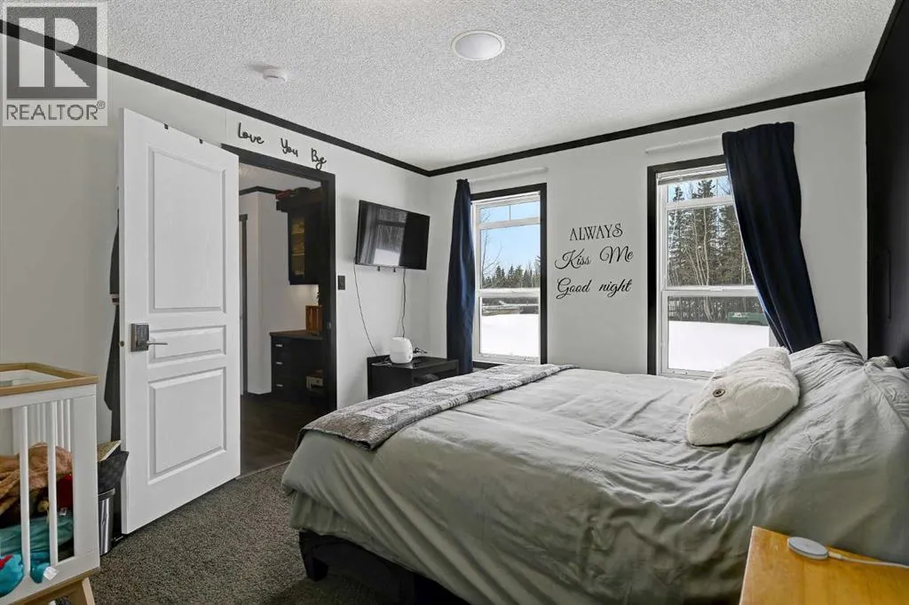 Stunning 3-acre private acreage with incredible lifestyle upgrades! This beautifully designed home welcomes you with a bright, open-concept layout flooded with natural light and finished in modern, inviting tones throughout. From the moment you walk in, youâll be impressed by the expansive kitchen featuring high-end stainless steel appliances, an oversized island, abundant counter space, and a MASSIVE walk-in pantryâperfect for families or those who love to entertain. The seamless flow into the dining and living areas creates the ideal space for hosting guests or keeping an eye on the kids while preparing meals. The spacious primary suite is a true retreat, offering a large closet and a private ensuite complete with a relaxing jetted tub. Thoughtful upgrades like built-in wireless speakers and USB outlets throughout the home add both convenience and modern functionality. Step outside and enjoy everything acreage living should be with a large deck perfect for summer BBQs, a custom firepit area for evening gatherings, and a fully set-up dog run for pet lovers. The property also features a C-Can for secure storage and the added comfort of air conditioning, making it ideal for year-round living. Surrounded by nature and offering exceptional privacy, this property delivers the perfect blend of comfort, space, and outdoor lifestyleâbook your showing today! (id:27476)