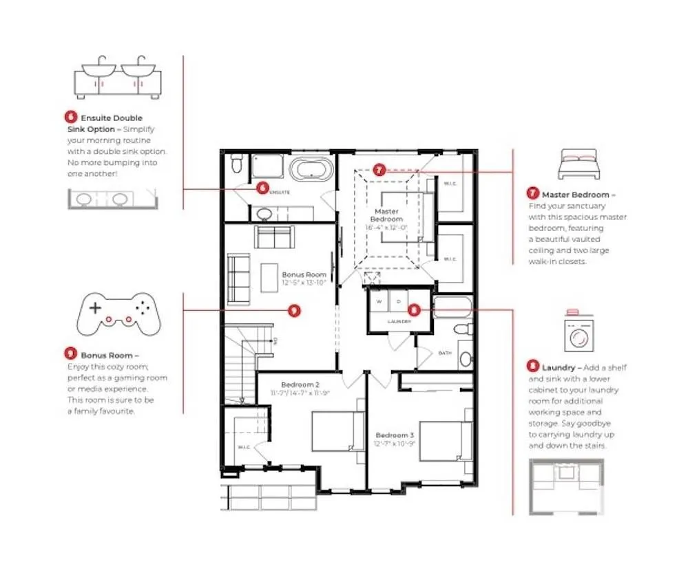The Luminoso is a family home that you will be PROUD to show off, filled with natural light & elegant functionality. This 2292 sqft, 2 Storey home offers 3 bedrooms, 3 baths & DOUBLE garage. Finished in a NeoClassical Revival Designer Interior, this home blends timeless design with modern elegance. A stylish kitchen that offers plenty of cabinets, RI for gas stove, WI pantry & island that over looks the dining & living area bursting with natural light. Den with 4pc ensuite complements the layout. Moving upstairs you will find a king sized primary suite featuring vaulted ceilings, TWO Walk in closets & 5pc ensuite. 2 bdrms are generous in size, a 4pc bath, laundry & bonus room complete this home with room to grow! SIDE ENTRANCE & rough in for potential SUITE. EXPLORE the multiple parks, playgrounds & 8kms of ravine trails through Oldman Creek! It will also be the home to future schools & shopping. Photos may not reflect the exact home for sale, as some are virtually staged or show design selections. (id:27476)