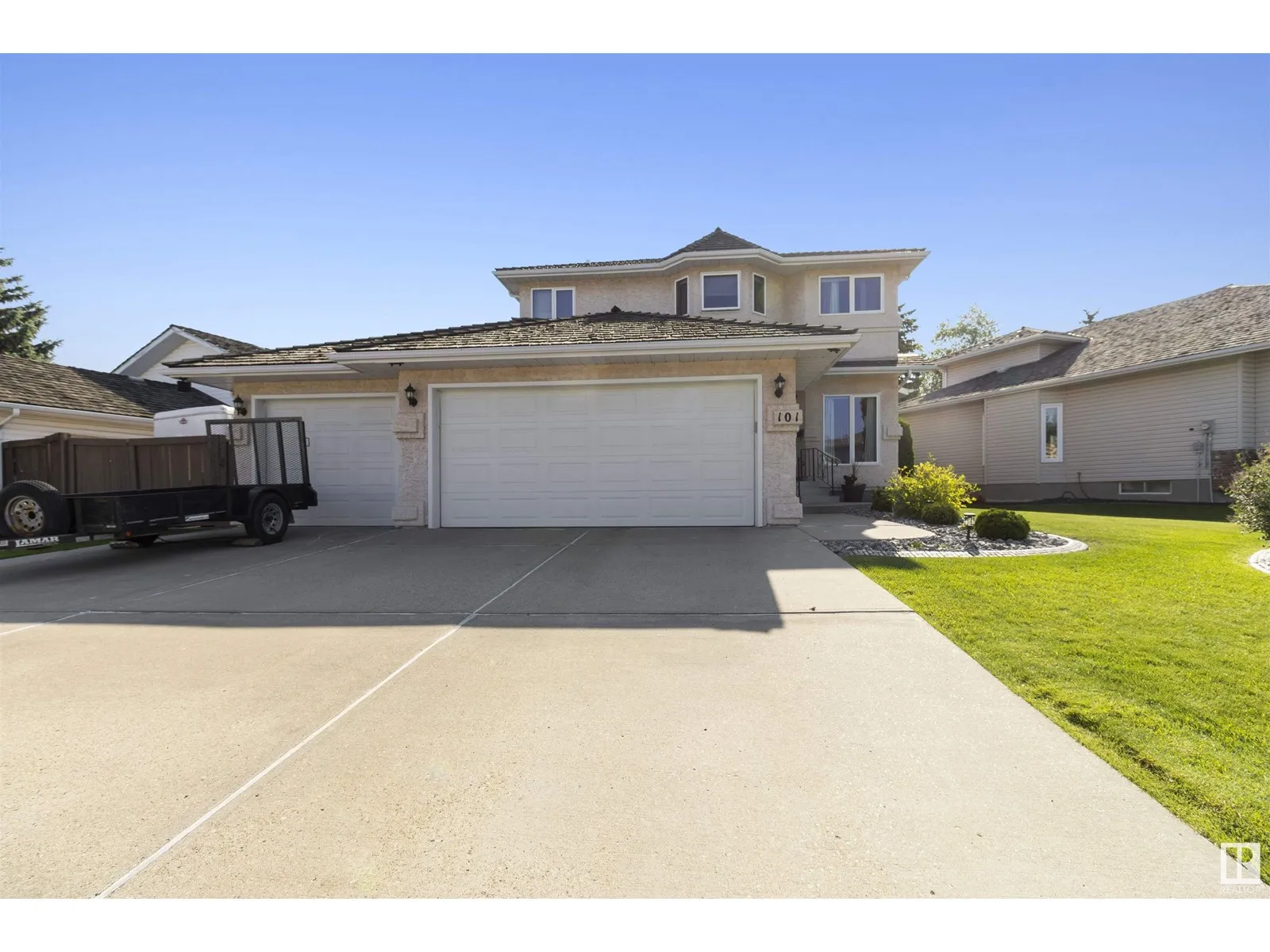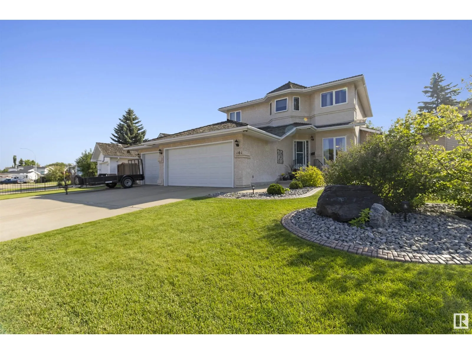 Located on a quiet street in Nottingham is this beautiful 2 storey home! Featuring a BIG PIE LOT & TRIPLE & HEATED ATTACHED GARAGE! Newer garage doors, floor drain and man door too. Great layout offering over 2000 square feet plus a FULLY FINISHED basement. Open front living room, office, & a family room with attractive gas fireplace. Generous eat-in kitchen with newer counter tops, stainless steel appliances & an open dining area. NEW FURNACE & NEW CENTRAL AIR-CONDITIONING. Upstairs are 3 large bedrooms and a 4 piece bathroom. The Primary Bedroom accommodates a King sized bed & offers a walk-in closet & lovely 5 piece ensuite. Awesome basement with huge Rec Room, second fireplace, NEW CARPETS, utility room, storage space and a 3 piece bathroom with steam shower. You'll love the PRIVATE & BEAUTIFUL BACKYARD! RV parking too! Prime location in one of Sherwood Park's most sought after communities. Close to beautiful parks, ponds & walking trails. A must see home! Visit REALTOR® website for more information. (id:27476)
