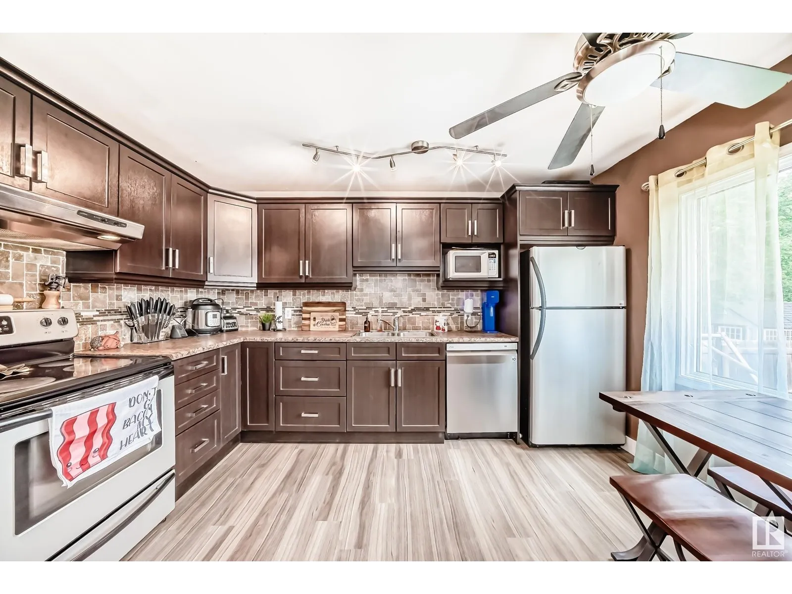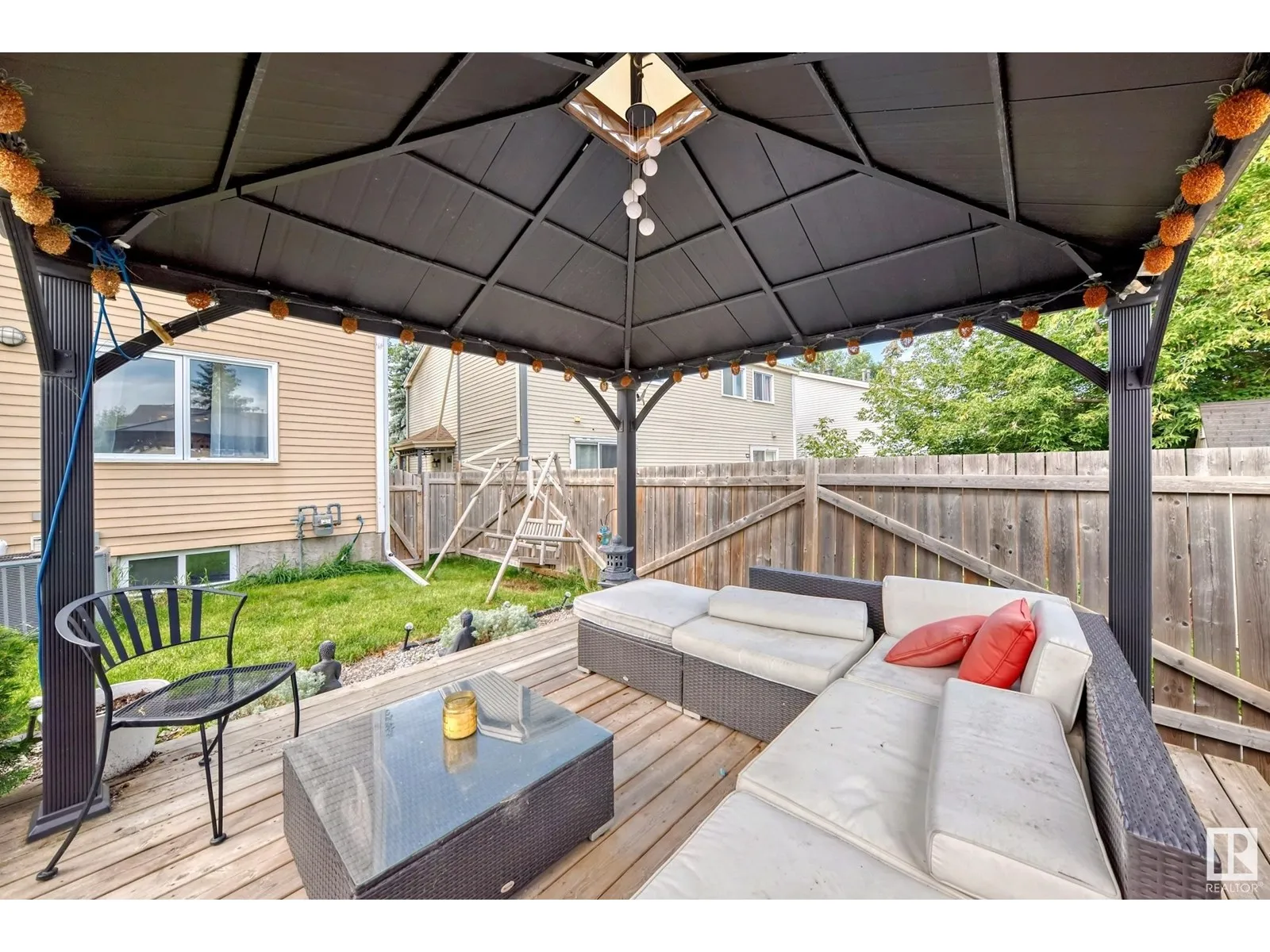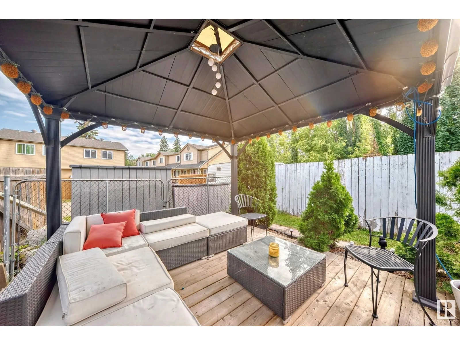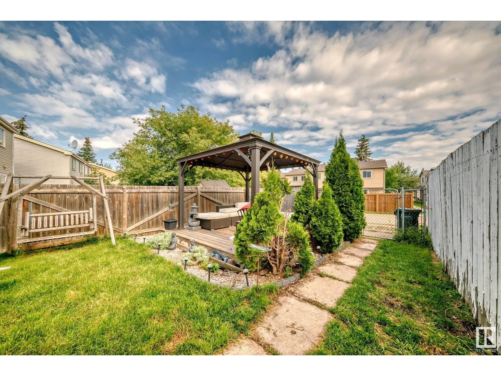 In the heart of Sherwood Park, this beautifully renovated duplex blends comfort, style & function. Enjoy a sleek modern kitchen with newer cabinetry, generous counters, updated bathrooms, energy-efficient windows, & a high-efficiency furnace. Upstairs boasts 3 spacious bedrooms including a king-sized primary suite with ample closet space, plus a full 4-piece bath. The bright main level offers an open living/dining area, large kitchen, & a handy 2-piece bath. The fully finished basement expands your living space with a cozy rec room, versatile den, laundry & storage. Outside, a free-standing deck with a charming gazebo lets you enjoy the outdoorsâeven when it rains. Ideal for first-time buyers or savvy investors, this home delivers lasting value in a sought-after location. (id:27476)