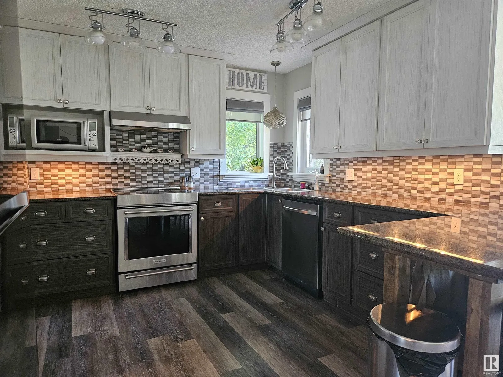 Welcome home to this beautifully upgraded and well maintained 5 bedroom 2 storey home located on a massive quarter acre lot in the heart of Sherwood Park! Main floor offers a bedroom and 3 pc bathroom, living room, family room, two dining areas, spacious kitchen with stainless steel appliances and a sizeable mudroom leading into an oversized, insulated and heated two car garage. A grand staircase leads to the upstairs where you will find a large master bedroom with a 5 piece ensuite and a walking in closet, two additional bedrooms, a 3 piece bathroom and laundry suite combo. Basement offers ample storage space, a bedroom, 3 piece bathroom, family room and a gun safe! The back yard is a true oasis, featuring fruit trees, flower beds, fire pit, RV parking, large deck and two large sheds for storage. New furnaces and h/w tank (2024), Triple pane windows (2017), Roof replaced (2012), Chefs kitchen completely redone in 2017, fridge and dishwasher replaced in 2021. Truly a move in ready home! (id:27476)