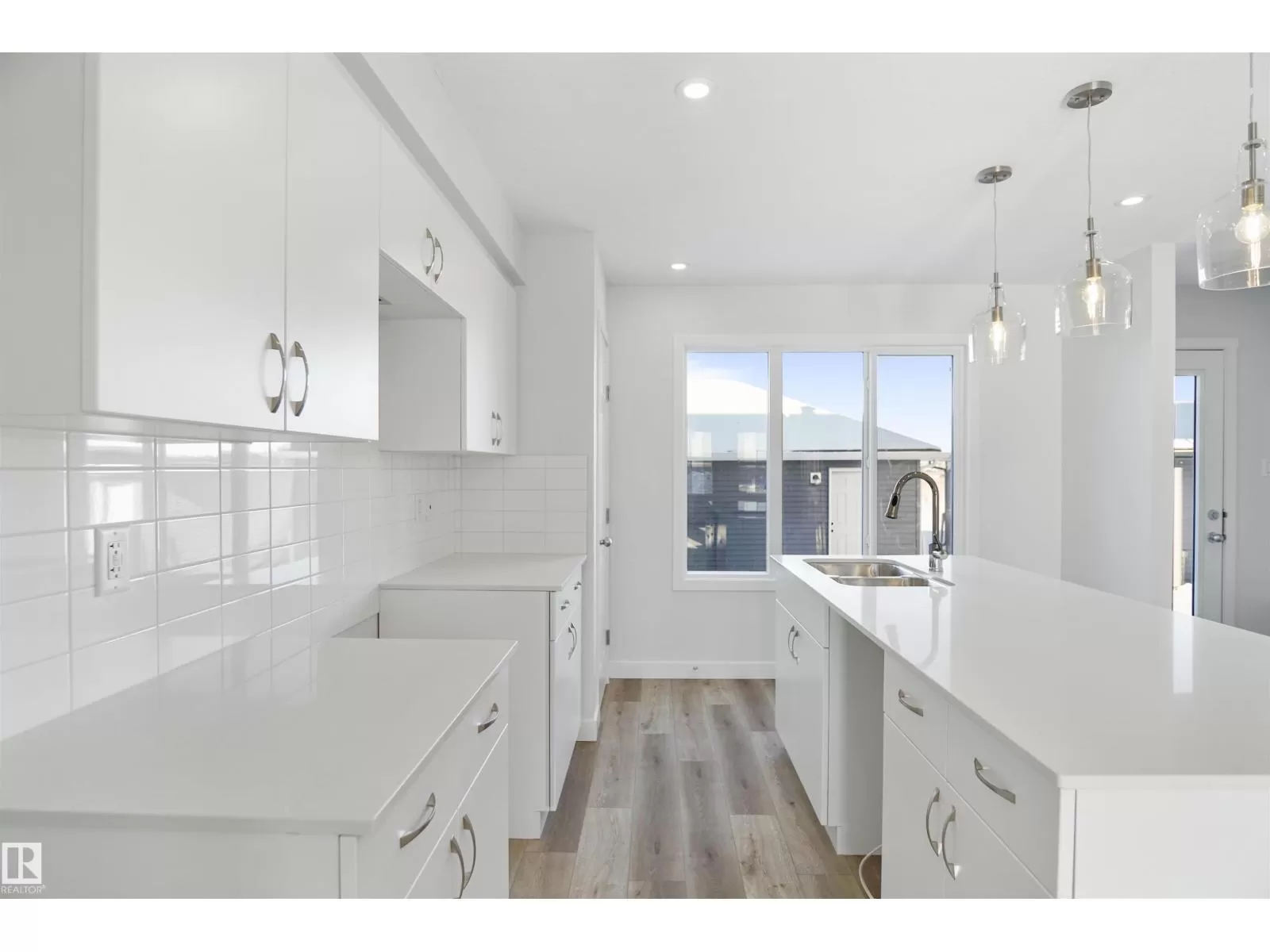 NO CONDO FEES and AMAZING VALUE! You read that right welcome to this brand new townhouse unit the âSaratoga Built by the award winning builder Pacesetter homes and is located in one of Sherwood Parks premier communities of Summerwood. The Saratoga is a spacious end unit townhome with a layout that maximizes space. Its 1,350+ square feet includes three bedrooms, two-and-a-half bathrooms, upper floor laundry, and a convenient mudroom. The L-shaped kitchen offers plenty of cabinet storage space and a large island with eating bar. The nook and great room are open concept and spacious. Upstairs, the laundry room is large with space to move around, and conveniently located near all three bedrooms. The ownerâs suite offers full ensuite bathroom and large walk-in closet. The Saratoga model includes a double car garage and full front and back landscaping. *** Photos are from the same style home recently built and finishing's and colors will vary home is under construction and will be complete by next week *** (id:27476)