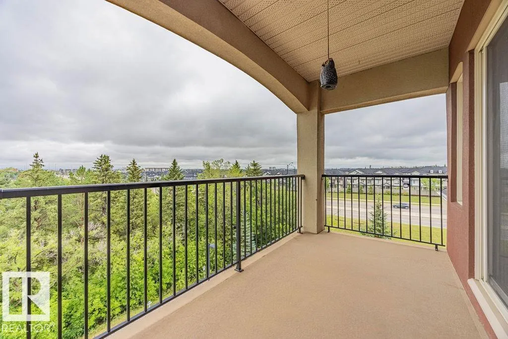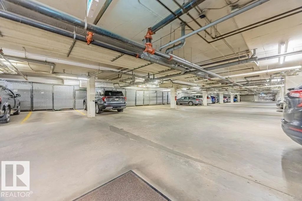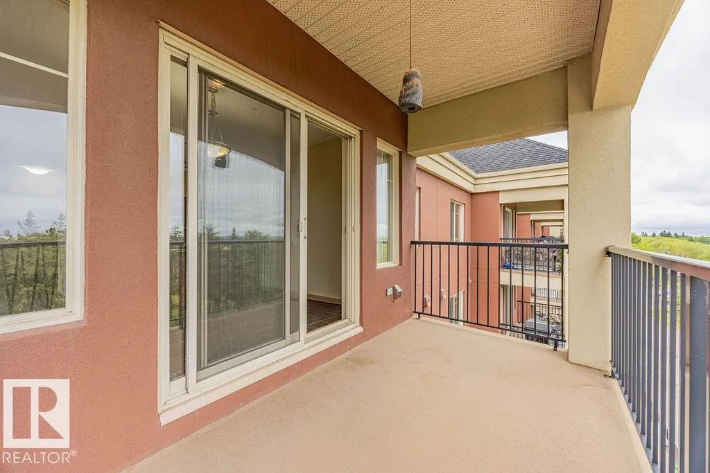 Welcome to The Palisades â a well-managed 18+ building backing onto a peaceful treed ravine in Sherwood Park. This bright northeast corner unit offers 2 bedrooms, 2 full bathrooms, and TWO private balconies â one massive north-facing and one smaller northeast-facing for extra outdoor space. The open-concept layout features a spacious kitchen with ample cabinetry, a large dining area, and a sunlit living room surrounded by windows. The primary bedroom includes a walk-through closet and 3-pc ensuite; the second bedroom sits next to the main 4-pc bath. Extras include in-suite laundry with oversized storage, underground heated parking with attached storage unit, and a second covered surface stall with plug-in. Also note that this is a Concrete & Steel building which is a rarity in Sherwood Park! Steps from Emerald Hills shopping, trails, and amenities. A rare find offering space, privacy, and convenience!! (id:27476)