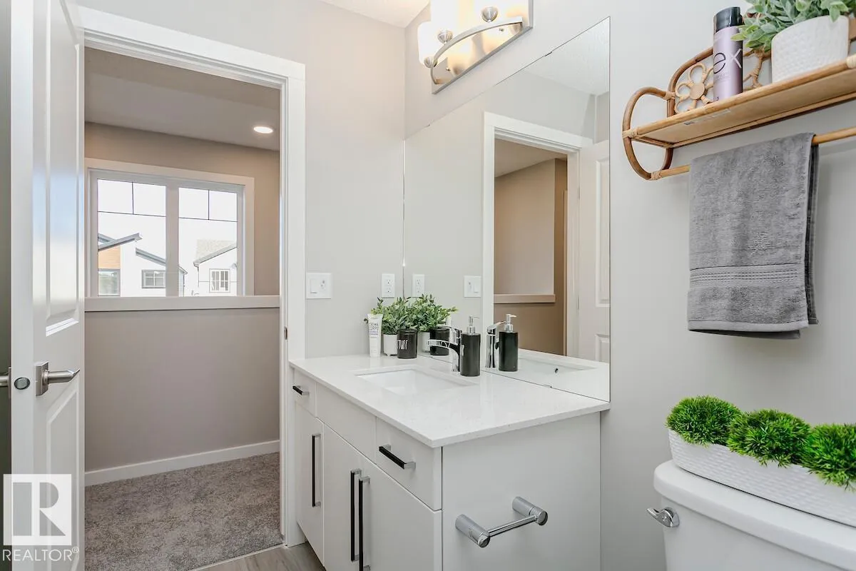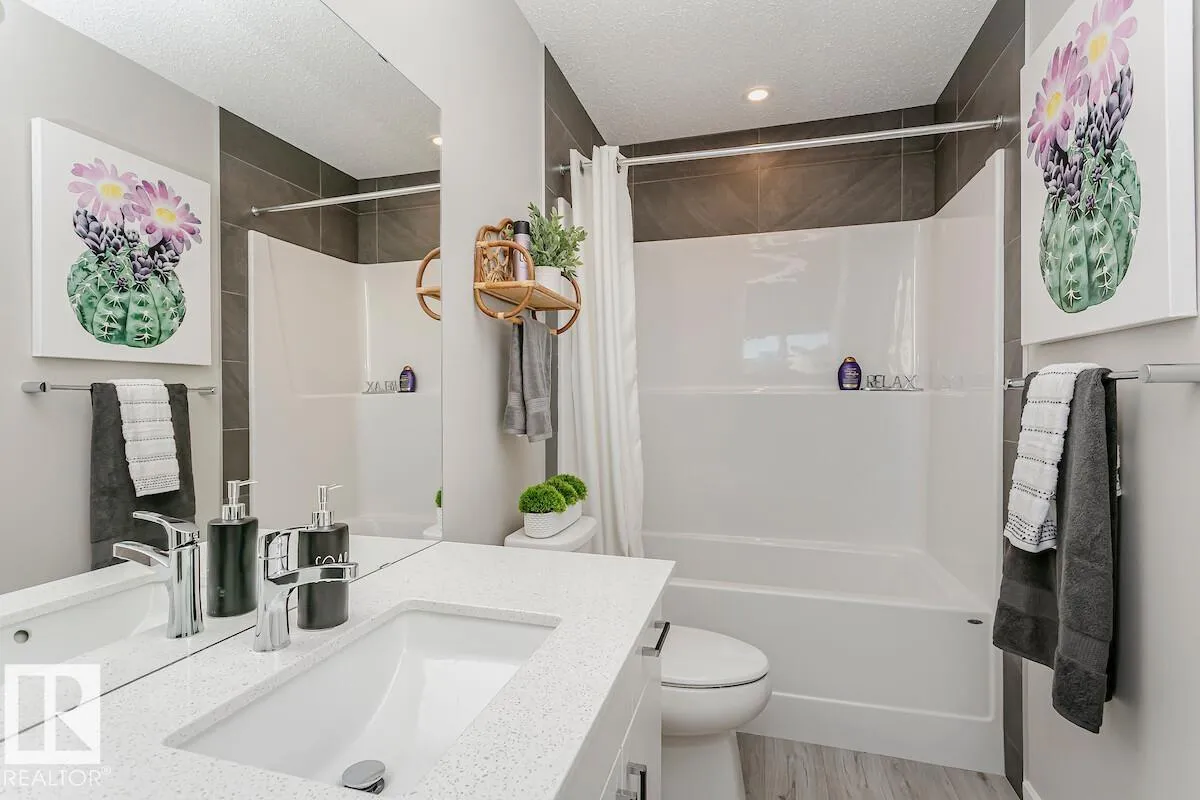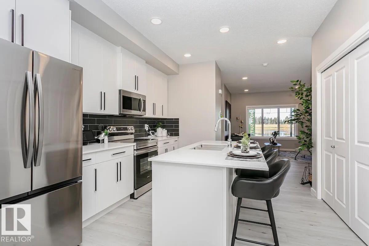 Open-Concept Main Floor: Enjoy a spacious kitchen with a large island, double-door pantry, and extended 41 upper cabinets. Seamless flow to the dinette and great room, ideal for family time or entertainment. Plus, a true rear mudroom adds everyday convenience. Modern Finishes Throughout: Luxury Vinyl Plank flooring on the main floor and all bathrooms, quartz countertops, under-mount sinks, and soft-close cabinets and drawers for a stylish, low-maintenance lifestyle. Comfortable Upper Level: Large primary bedroom with walk-in closet and ensuite w/ dual sinks and a walk-in shower. Two more bedrooms, a full bath, and upstairs laundry complete the upper floor. Energy-Efficient Design: Double-pane, Low-E, argon-filled Energy Star windows, 95% high-efficiency furnace, heat recovery ventilator, and 80-gallon hot water tank offer comfort and long-term savings. Smart Home Features: Includes Echo Show, Lorex Smart Video Doorbell, Ecobee 3 Lite Thermostat, Weiser Smart Deadbolt, Alexa Hub. Photos representative. (id:27476)