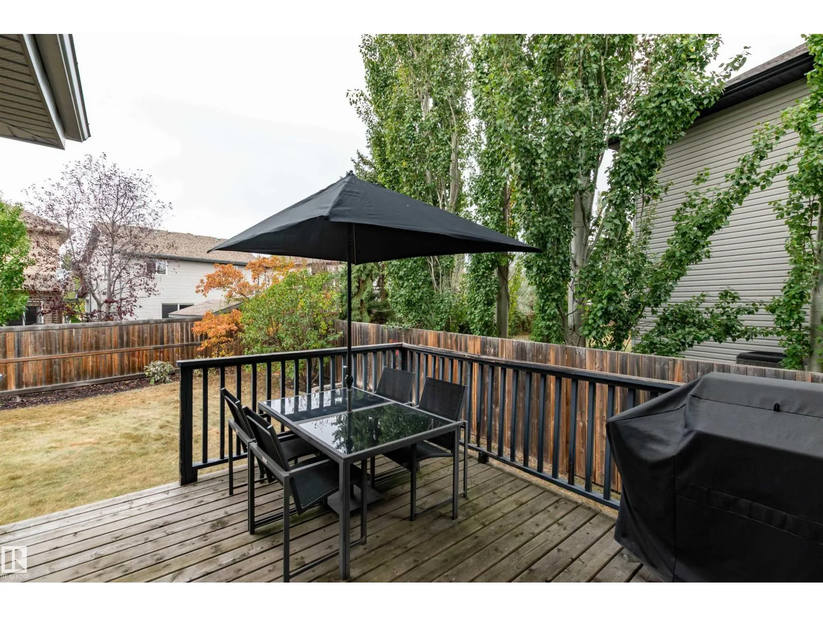 This beautiful home built by Jayman in desirable Summerwood is situated in a quiet cul-de-sac and close to parks, trails, schools and shopping. Inside, discover loads of upgrades, including the Showstopper kitchen with Quartz counters, MASSIVE island with beverage fridge and peninsula, and built-in appliances. including gas range. Engineered hardwood throughout the main. The generous dining area faces the deck with private west-facing back yard. Cozy up to the fireplace in the Great Room on chilly Fall nights. The main floor has extra storage next to the Powder room. Upstairs, you will the spacious sunken Bonus Room, perfect for TV nights! There is a convenient upper laundry room next to the 3 bedrooms. Primary BR is spacious with an elegant and roomy ensuite. The other BRs have double door closets and are complemented with a 4 pc bath. Other upgrades include furnace (2023), water softener, and AC and OVERSIZED garage. This home is in mint condition and would make a perfect Family Home- great location! (id:27476)