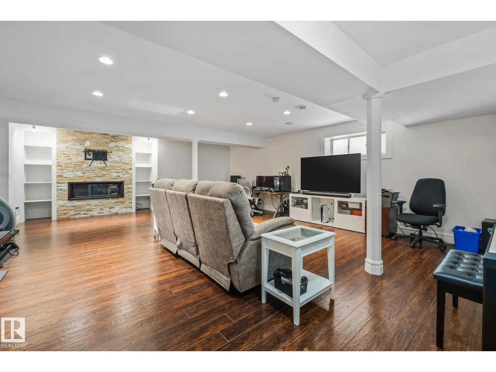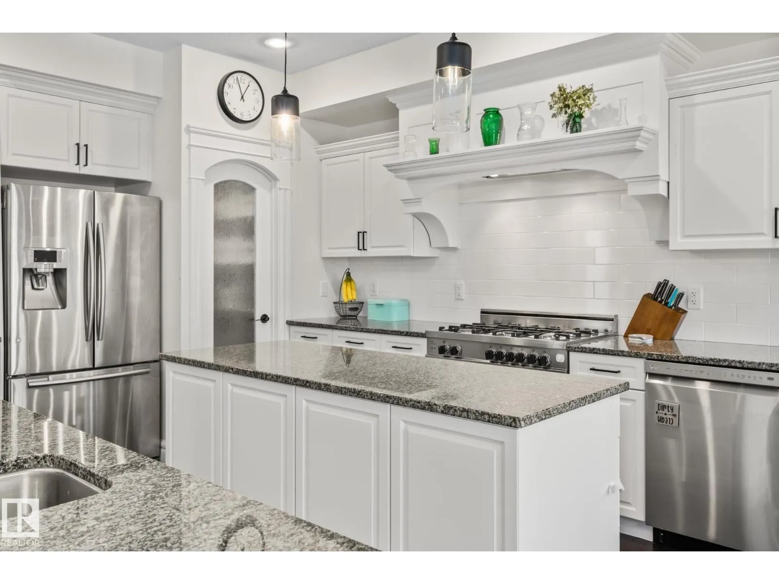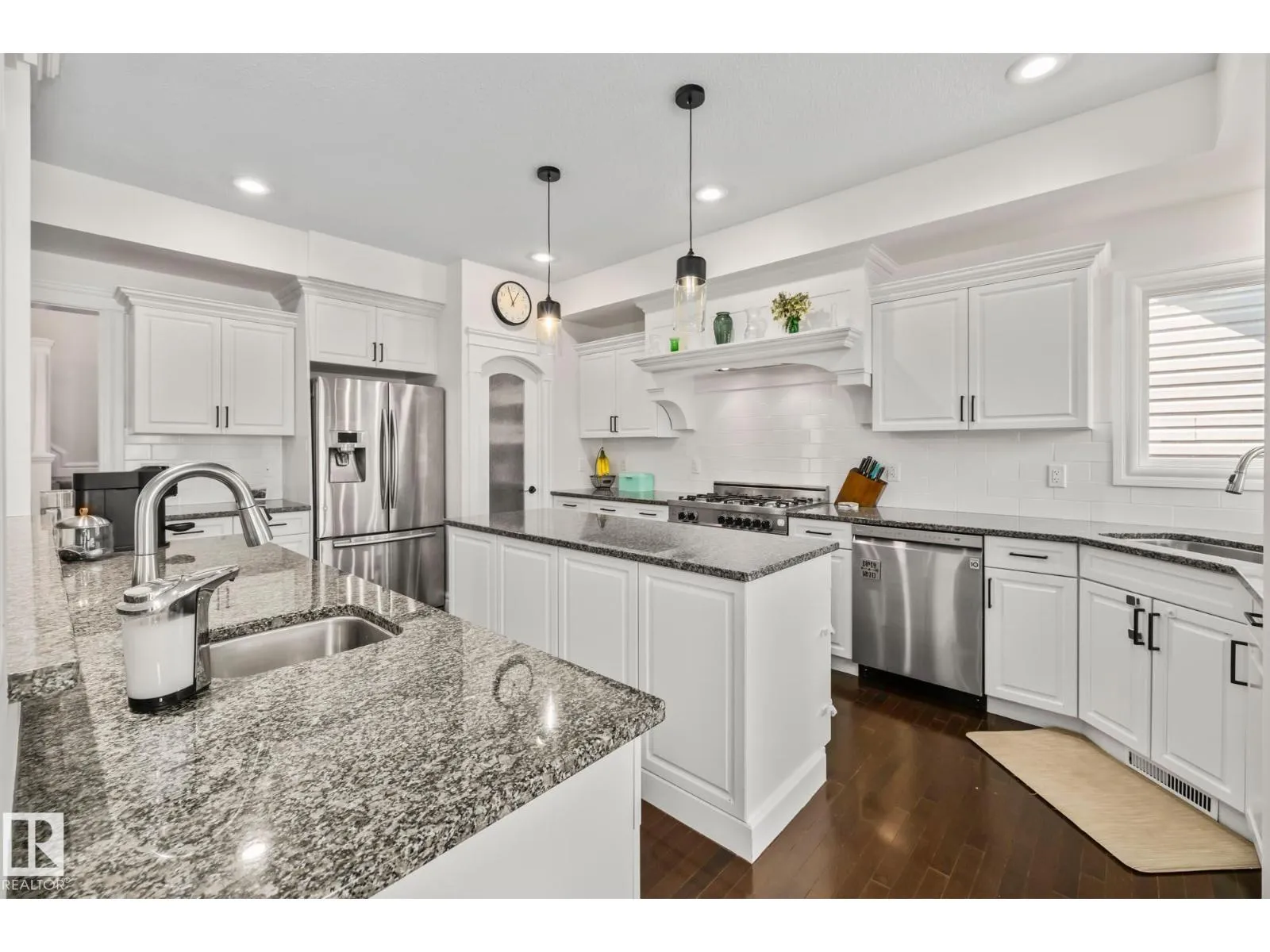 With over $100K in upgrades, this Summerwood 2 storey is truly move in ready. Offering 4 bedrooms, 3.5 baths, and an oversized insulated double garage, it blends modern style with everyday function. The main floor features a chefâs kitchen with granite island, professional gas range, refinished cabinets, new backsplash, updated sinks and hardware, opening to a bright living room with stone fireplace. Upstairs, a spacious bonus room, two bedrooms, full bath, and convenient laundry surround the luxurious primary suite with walk in closet, wet bar, and spa inspired ensuite with soaker tub and glass shower. The finished basement adds scraped hardwood floors, a second fireplace, large rec room, flexible fitness or office space, and an additional bedroom with a full bath nearby. Key updates include fresh paint, lighting, hot water tank, water softener, furnace motherboard, washer, dryer, and a remodeled powder room. Outside, enjoy artificial grass, a stone patio, and built in seating, all close to trails, parks (id:27476)