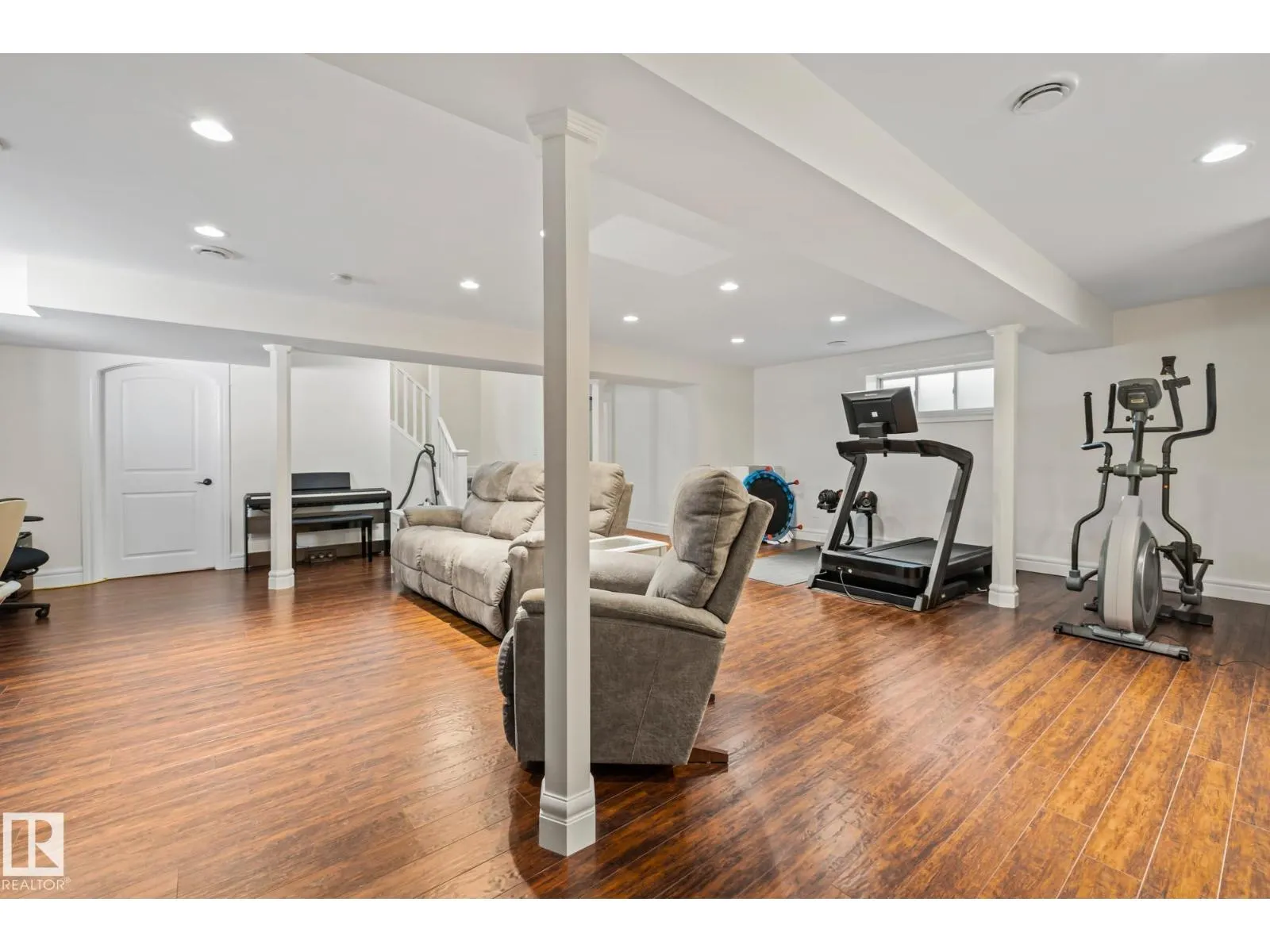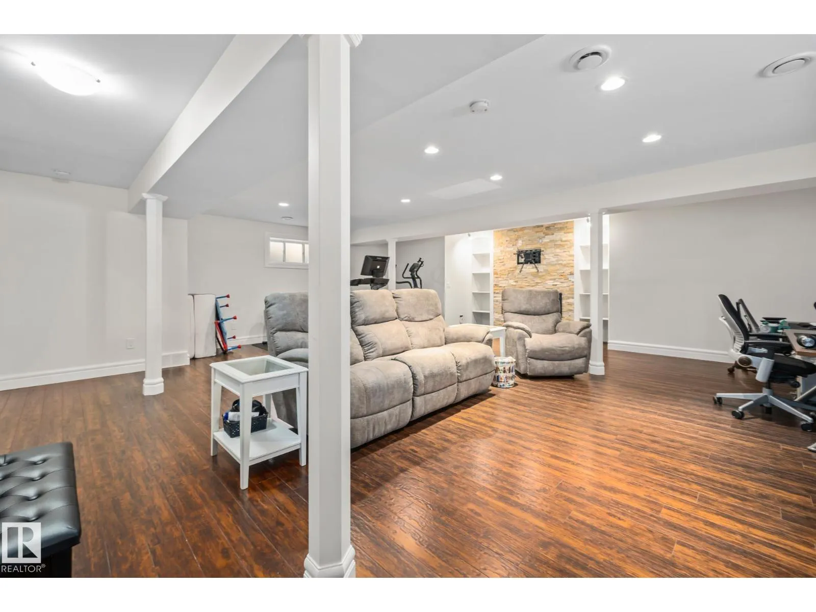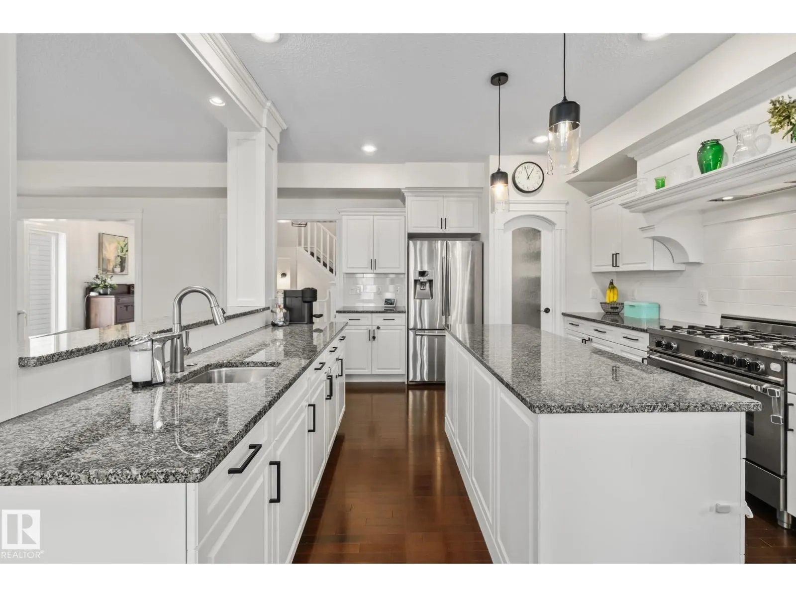 With over $100K in upgrades, this Summerwood 2 storey is truly move in ready. Offering 4 bedrooms, 3.5 baths, and an oversized insulated double garage, it blends modern style with everyday function. The main floor features a chefâs kitchen with granite island, professional gas range, refinished cabinets, new backsplash, updated sinks and hardware, opening to a bright living room with stone fireplace. Upstairs, a spacious bonus room, two bedrooms, full bath, and convenient laundry surround the luxurious primary suite with walk in closet, wet bar, and spa inspired ensuite with soaker tub and glass shower. The finished basement adds scraped hardwood floors, a second fireplace, large rec room, flexible fitness or office space, and an additional bedroom with a full bath nearby. Key updates include fresh paint, lighting, hot water tank, water softener, furnace motherboard, washer, dryer, and a remodeled powder room. Outside, enjoy artificial grass, a stone patio, and built in seating, all close to trails, parks (id:27476)