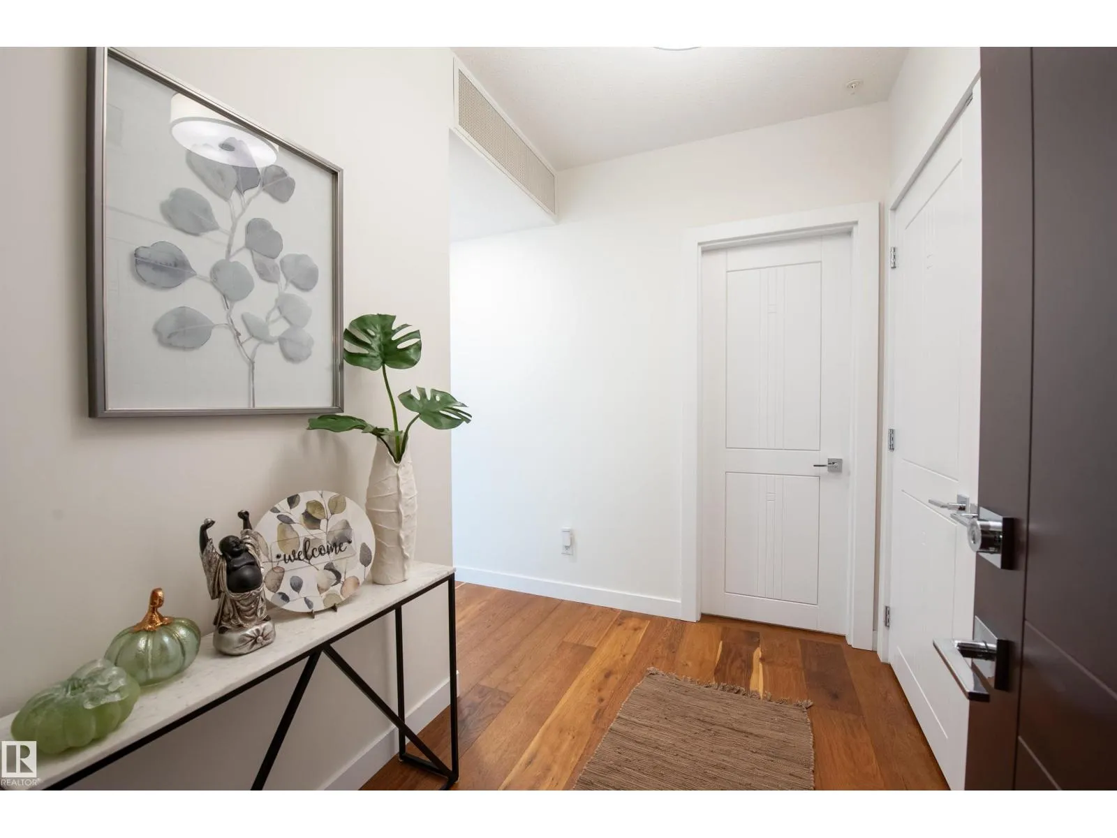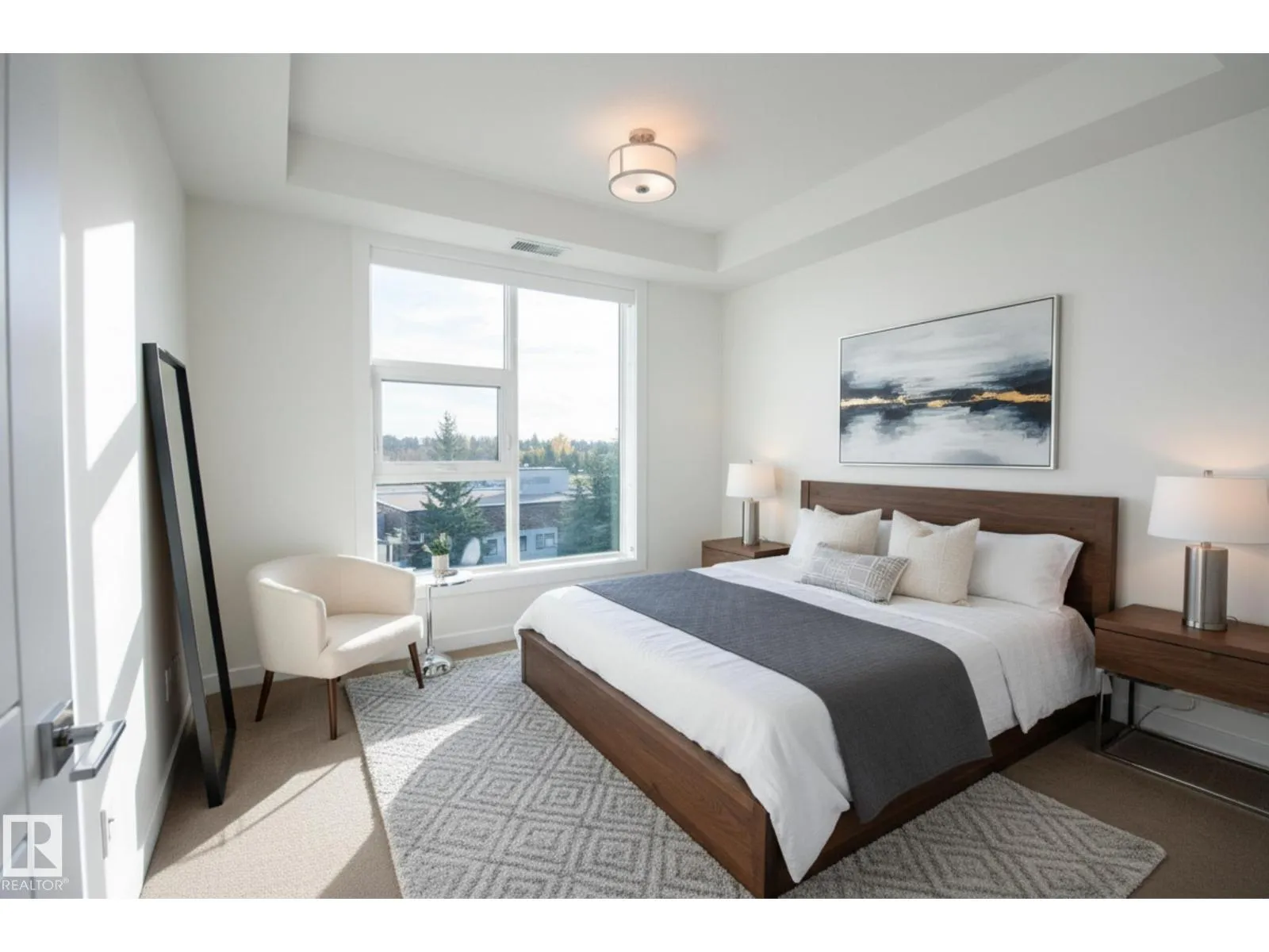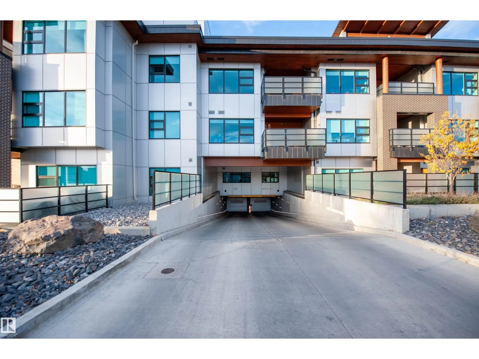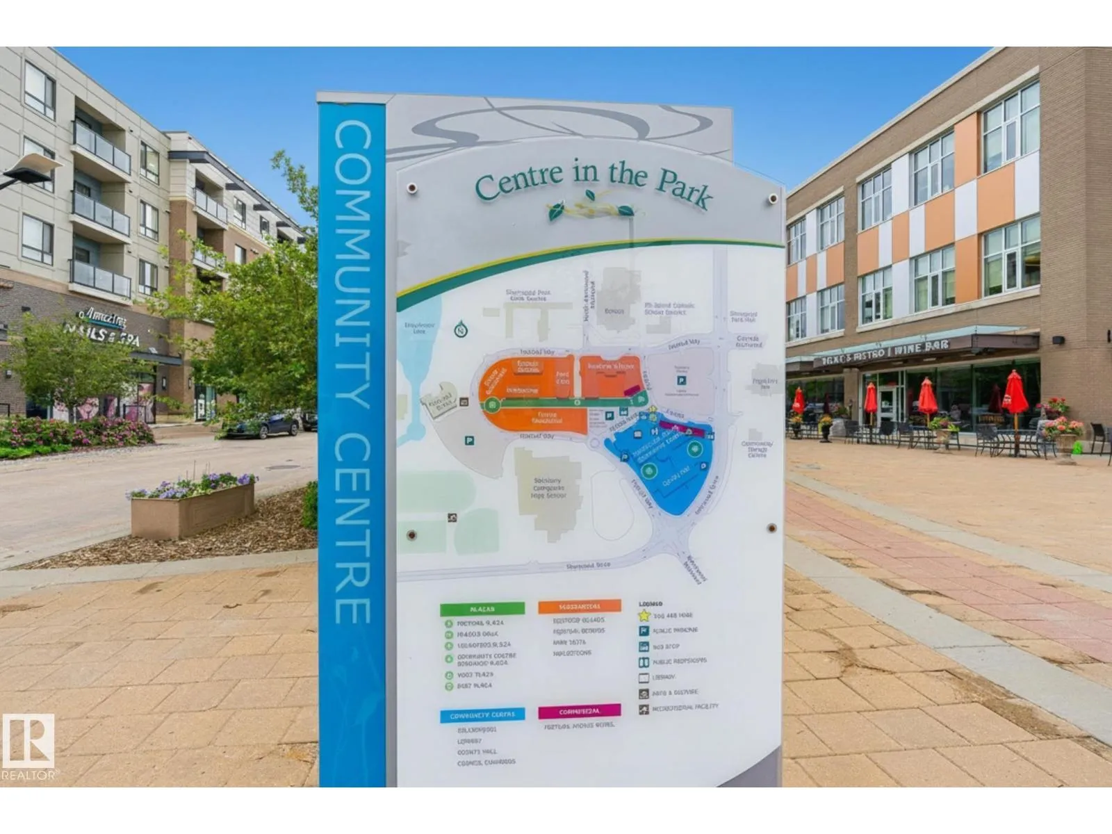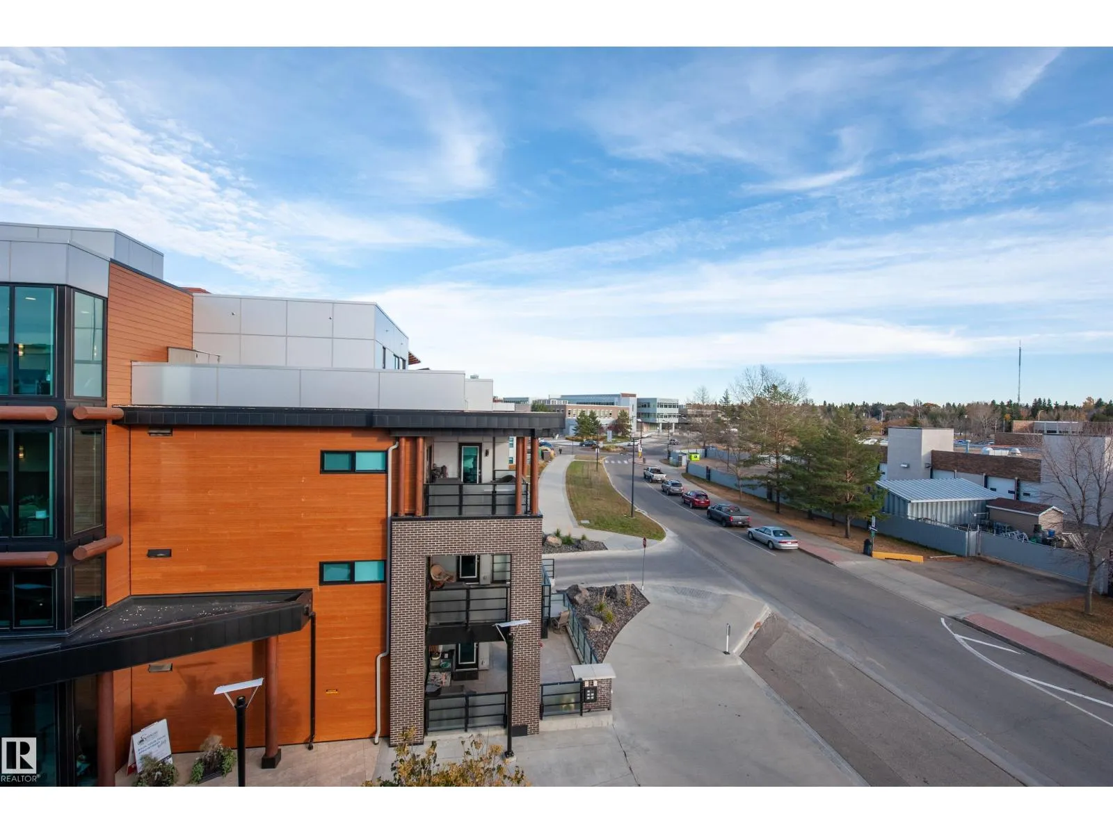 Live the Good Life in Centre in the Park! Set in an elegant, modern building surrounded by shops, cafés, and greenspace, this Top Floor 2-bedroom, 2-bath Corner Unit offers over 1,000 sq. ft. of contemporary comfort and style. Built with luxury materials and unmatched craftsmanship, this residence stands apart from anything else in Sherwood Park. The open floor plan features a sleek kitchen with quartz counters, stainless steel appliances, and rich cabinetry flowing into a spacious living area with hardwood-tone floors and large windows. Step onto the covered balcony for peaceful, tree-lined views. The primary suite includes a private 4-piece ensuite and generous closet space, while the second bedroom and full bath add flexibility. HUGE BONUS: Also includes 2 SEPARATELY TITLED HEATED UNDERGROUND PARKING STALLS, and a Secure Storage unit! Plus access to premium amenities â a Fitness Centre with patio, CAR WASH, and Rooftop Terrace. Visit REALTOR® website for more info. *Some photos are virtually staged* (id:27476)