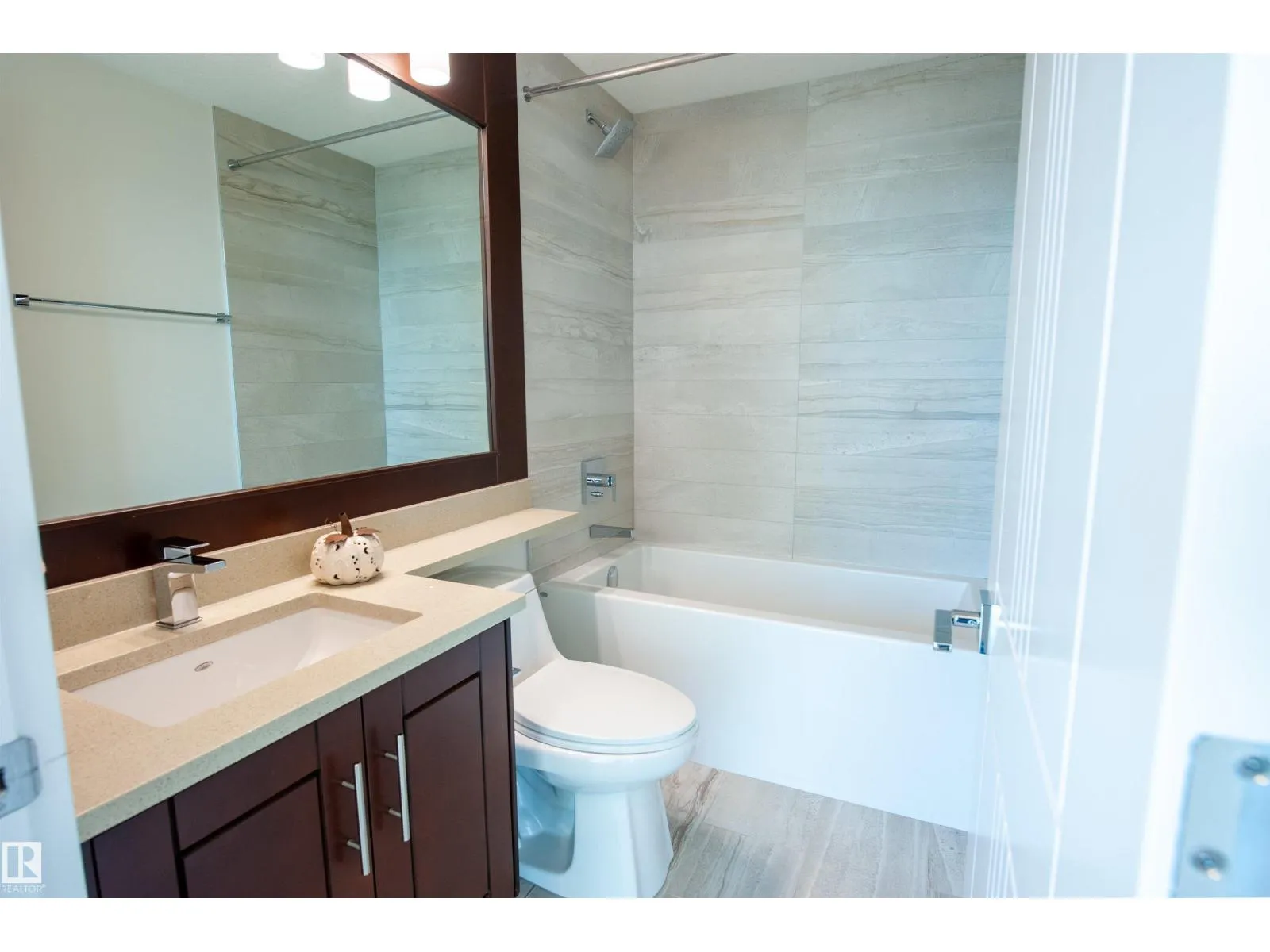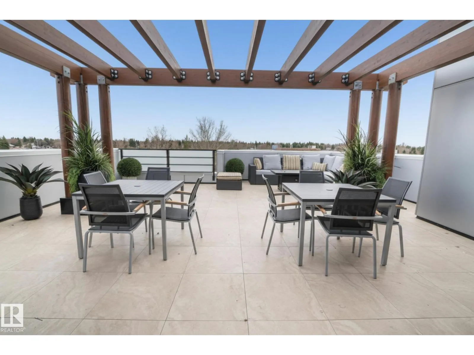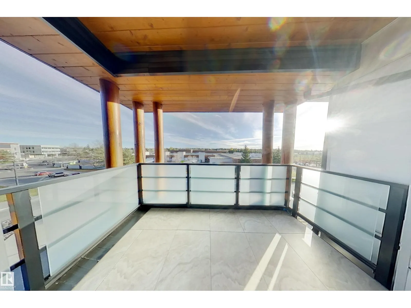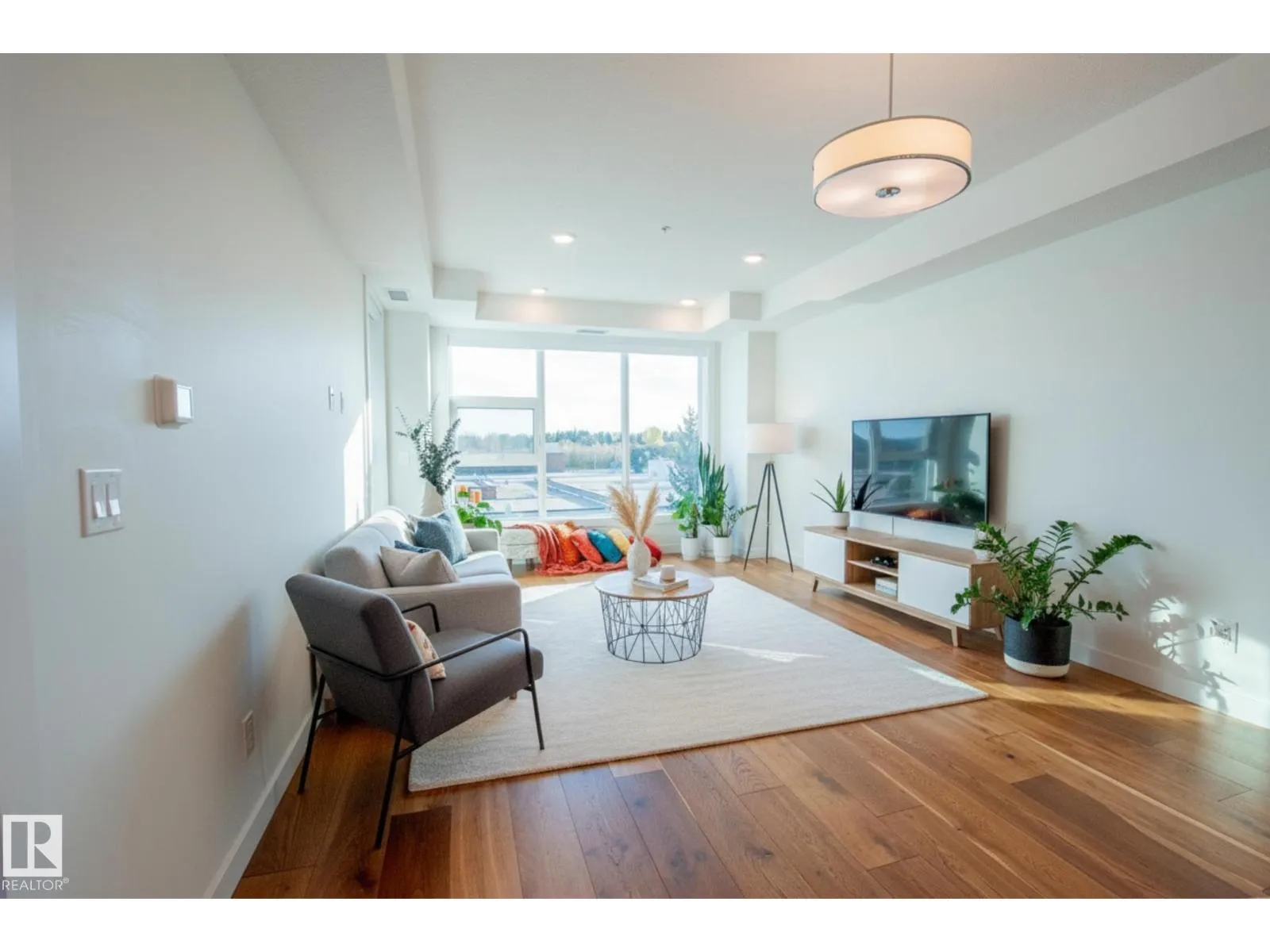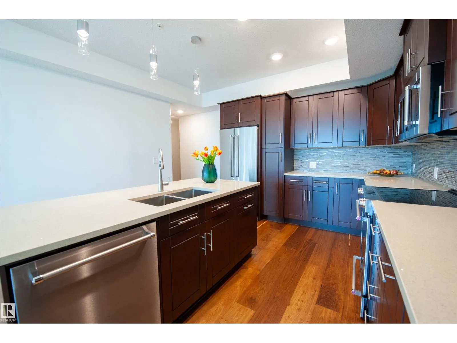 Live the Good Life in Centre in the Park! Set in an elegant, modern building surrounded by shops, cafés, and greenspace, this Top Floor 2-bedroom, 2-bath Corner Unit offers over 1,000 sq. ft. of contemporary comfort and style. Built with luxury materials and unmatched craftsmanship, this residence stands apart from anything else in Sherwood Park. The open floor plan features a sleek kitchen with quartz counters, stainless steel appliances, and rich cabinetry flowing into a spacious living area with hardwood-tone floors and large windows. Step onto the covered balcony for peaceful, tree-lined views. The primary suite includes a private 4-piece ensuite and generous closet space, while the second bedroom and full bath add flexibility. HUGE BONUS: Also includes 2 SEPARATELY TITLED HEATED UNDERGROUND PARKING STALLS, and a Secure Storage unit! Plus access to premium amenities â a Fitness Centre with patio, CAR WASH, and Rooftop Terrace. Visit REALTOR® website for more info. *Some photos are virtually staged* (id:27476)