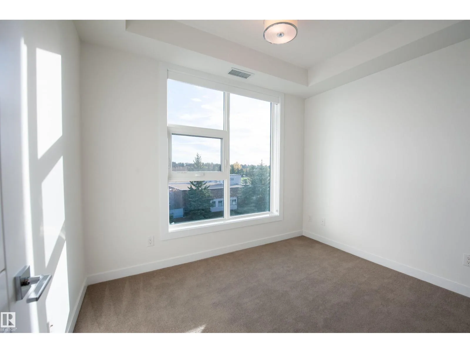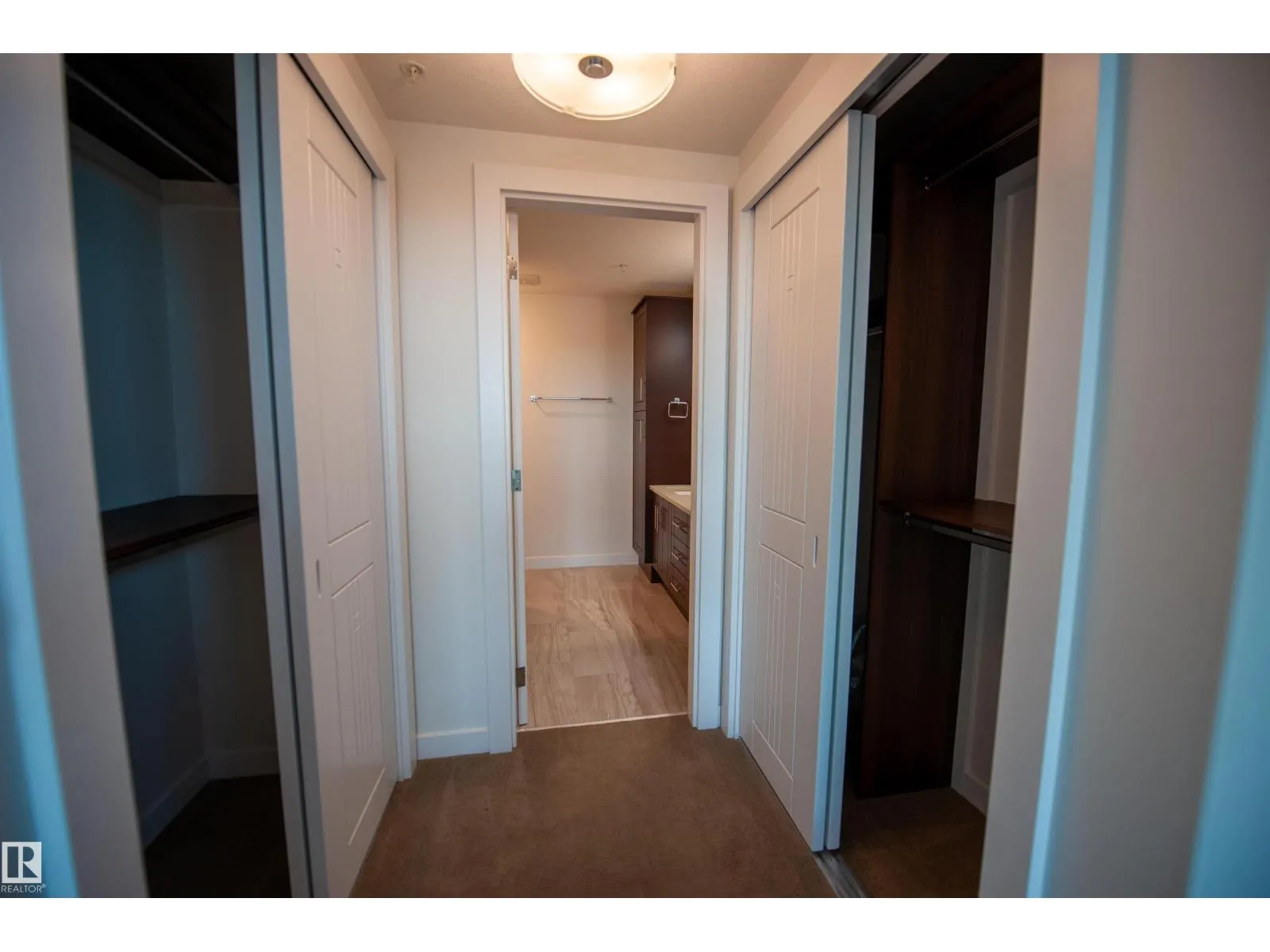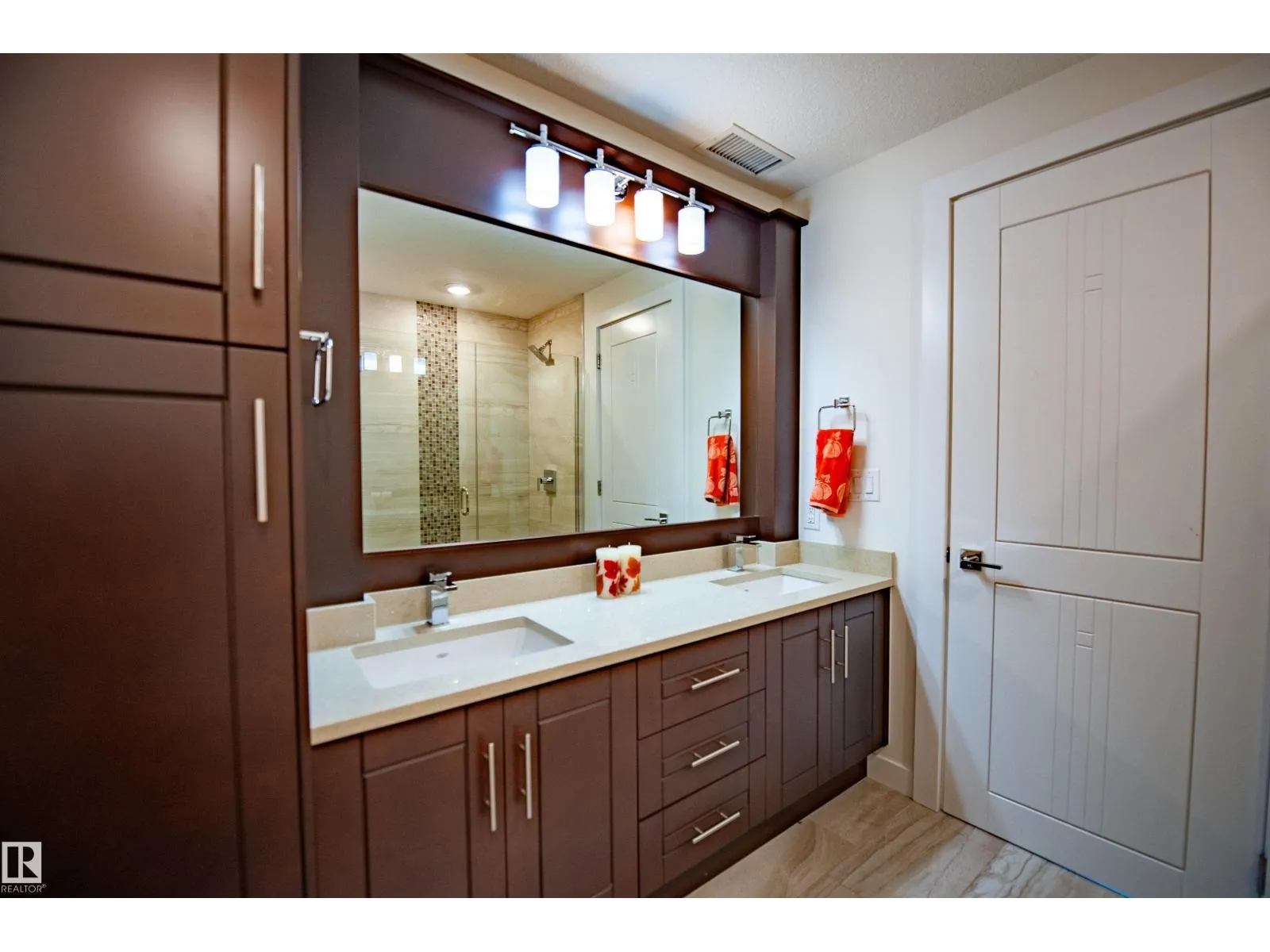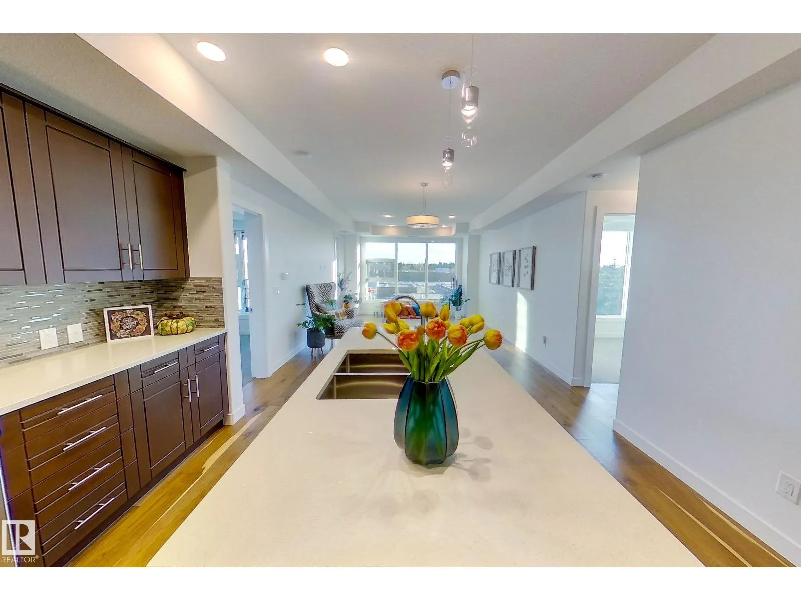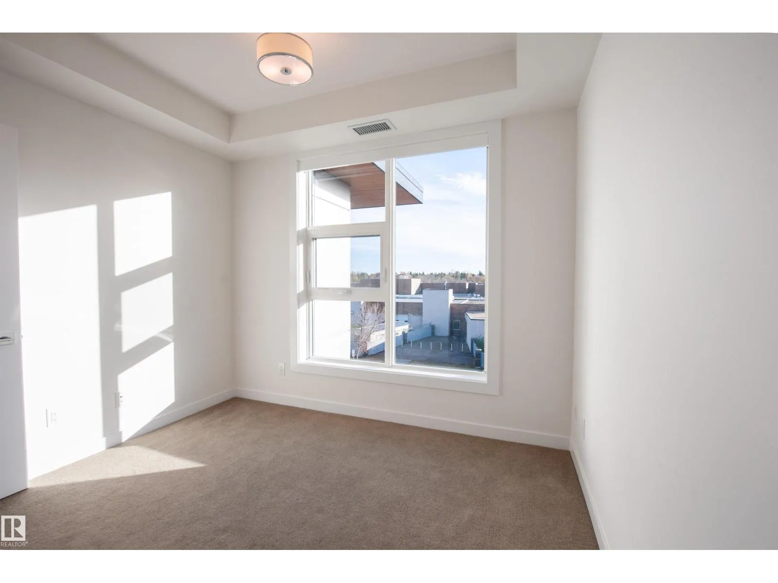 Live the Good Life in Centre in the Park! Set in an elegant, modern building surrounded by shops, cafés, and greenspace, this Top Floor 2-bedroom, 2-bath Corner Unit offers over 1,000 sq. ft. of contemporary comfort and style. Built with luxury materials and unmatched craftsmanship, this residence stands apart from anything else in Sherwood Park. The open floor plan features a sleek kitchen with quartz counters, stainless steel appliances, and rich cabinetry flowing into a spacious living area with hardwood-tone floors and large windows. Step onto the covered balcony for peaceful, tree-lined views. The primary suite includes a private 4-piece ensuite and generous closet space, while the second bedroom and full bath add flexibility. HUGE BONUS: Also includes 2 SEPARATELY TITLED HEATED UNDERGROUND PARKING STALLS, and a Secure Storage unit! Plus access to premium amenities â a Fitness Centre with patio, CAR WASH, and Rooftop Terrace. Visit REALTOR® website for more info. *Some photos are virtually staged* (id:27476)