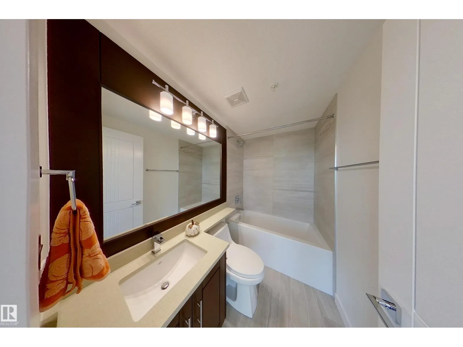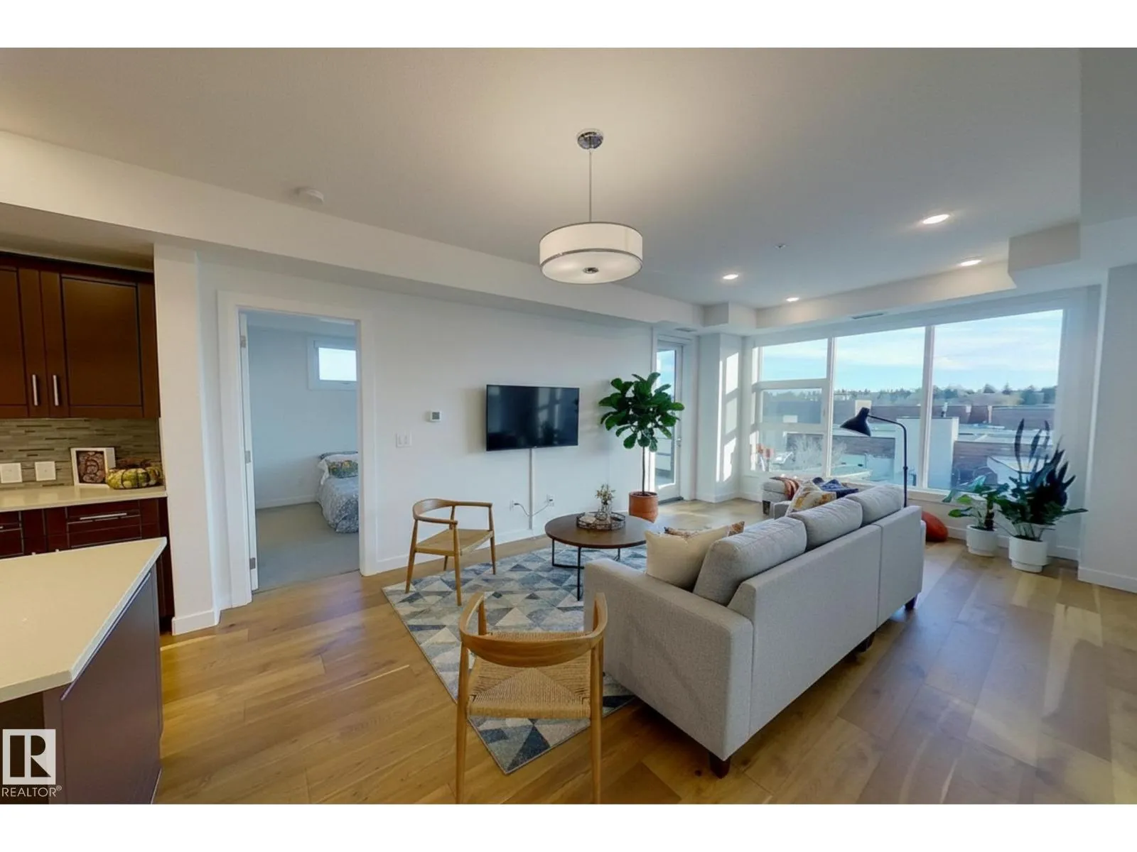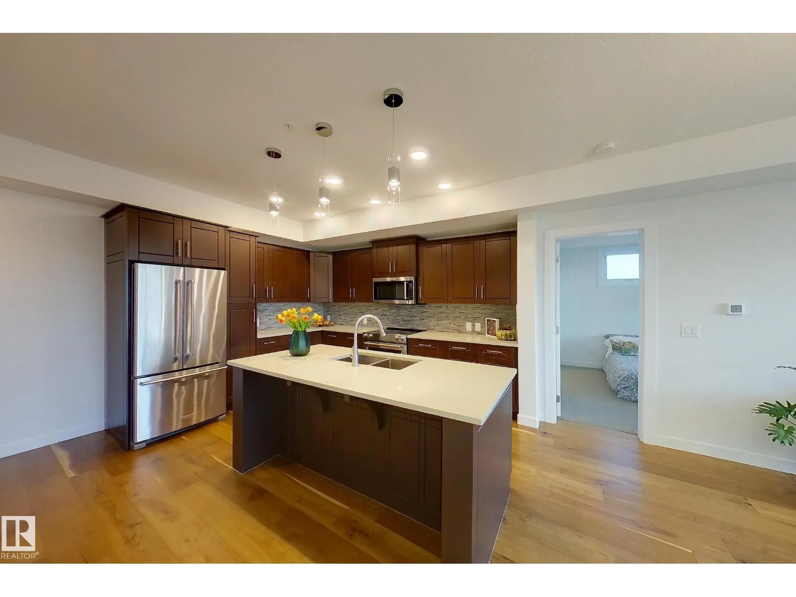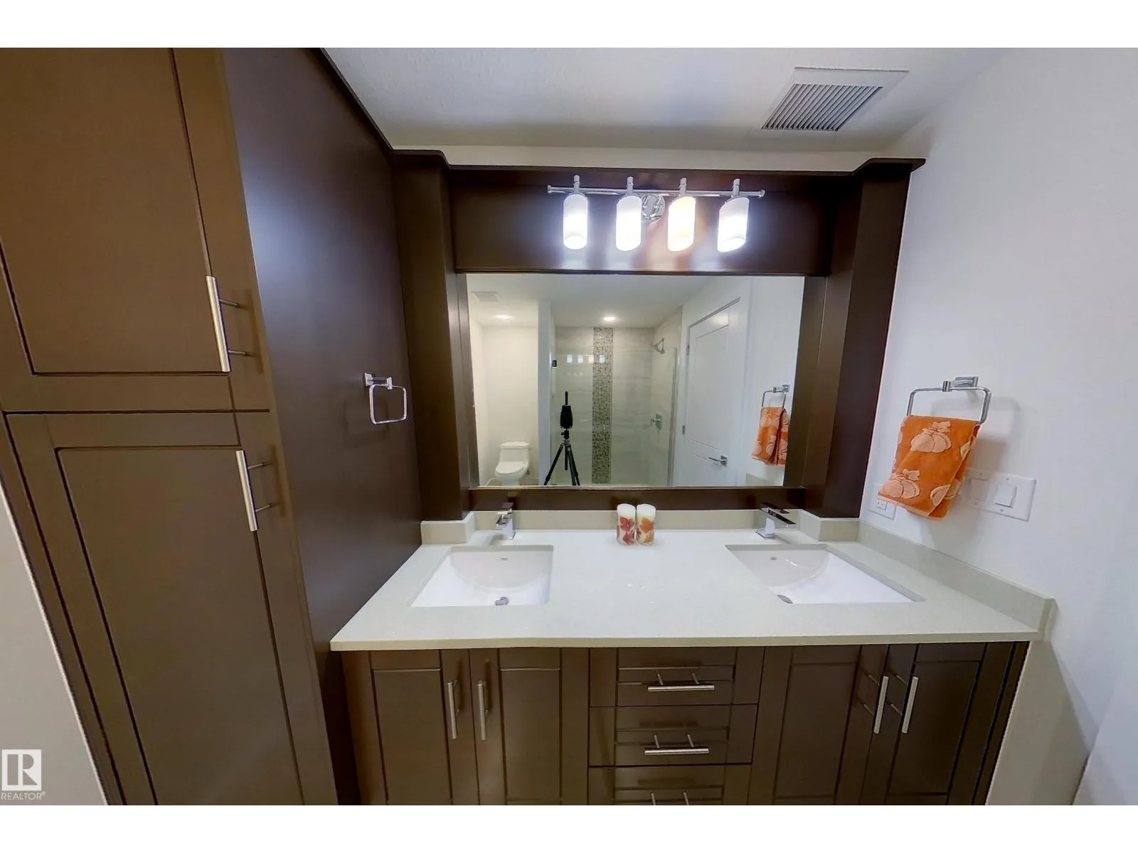 Live the Good Life in Centre in the Park! Set in an elegant, modern building surrounded by shops, cafés, and greenspace, this Top Floor 2-bedroom, 2-bath Corner Unit offers over 1,000 sq. ft. of contemporary comfort and style. Built with luxury materials and unmatched craftsmanship, this residence stands apart from anything else in Sherwood Park. The open floor plan features a sleek kitchen with quartz counters, stainless steel appliances, and rich cabinetry flowing into a spacious living area with hardwood-tone floors and large windows. Step onto the covered balcony for peaceful, tree-lined views. The primary suite includes a private 4-piece ensuite and generous closet space, while the second bedroom and full bath add flexibility. HUGE BONUS: Also includes 2 SEPARATELY TITLED HEATED UNDERGROUND PARKING STALLS, and a Secure Storage unit! Plus access to premium amenities â a Fitness Centre with patio, CAR WASH, and Rooftop Terrace. Visit REALTOR® website for more info. *Some photos are virtually staged* (id:27476)