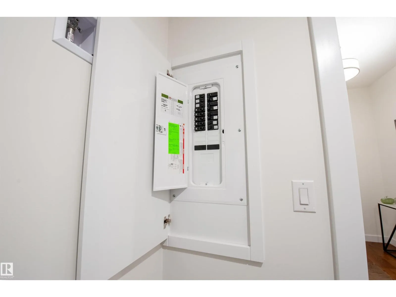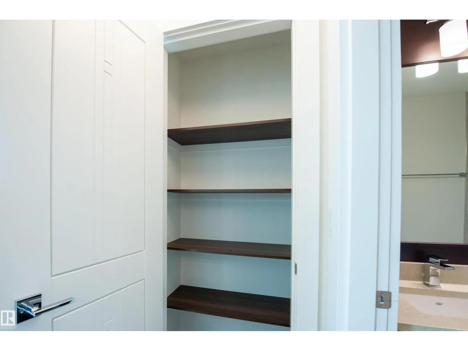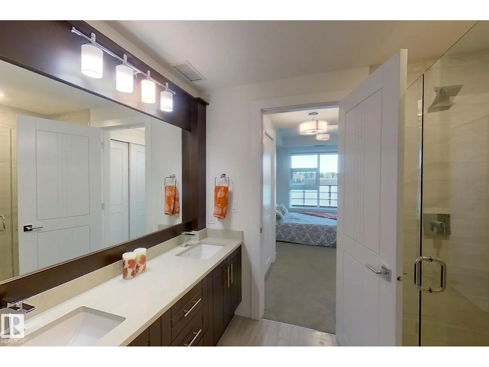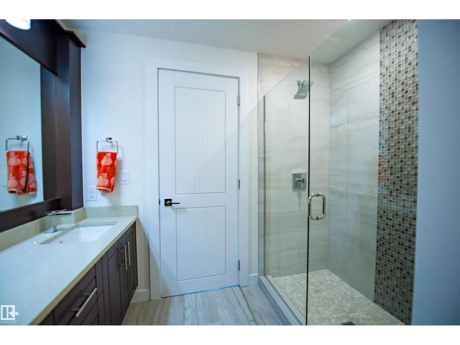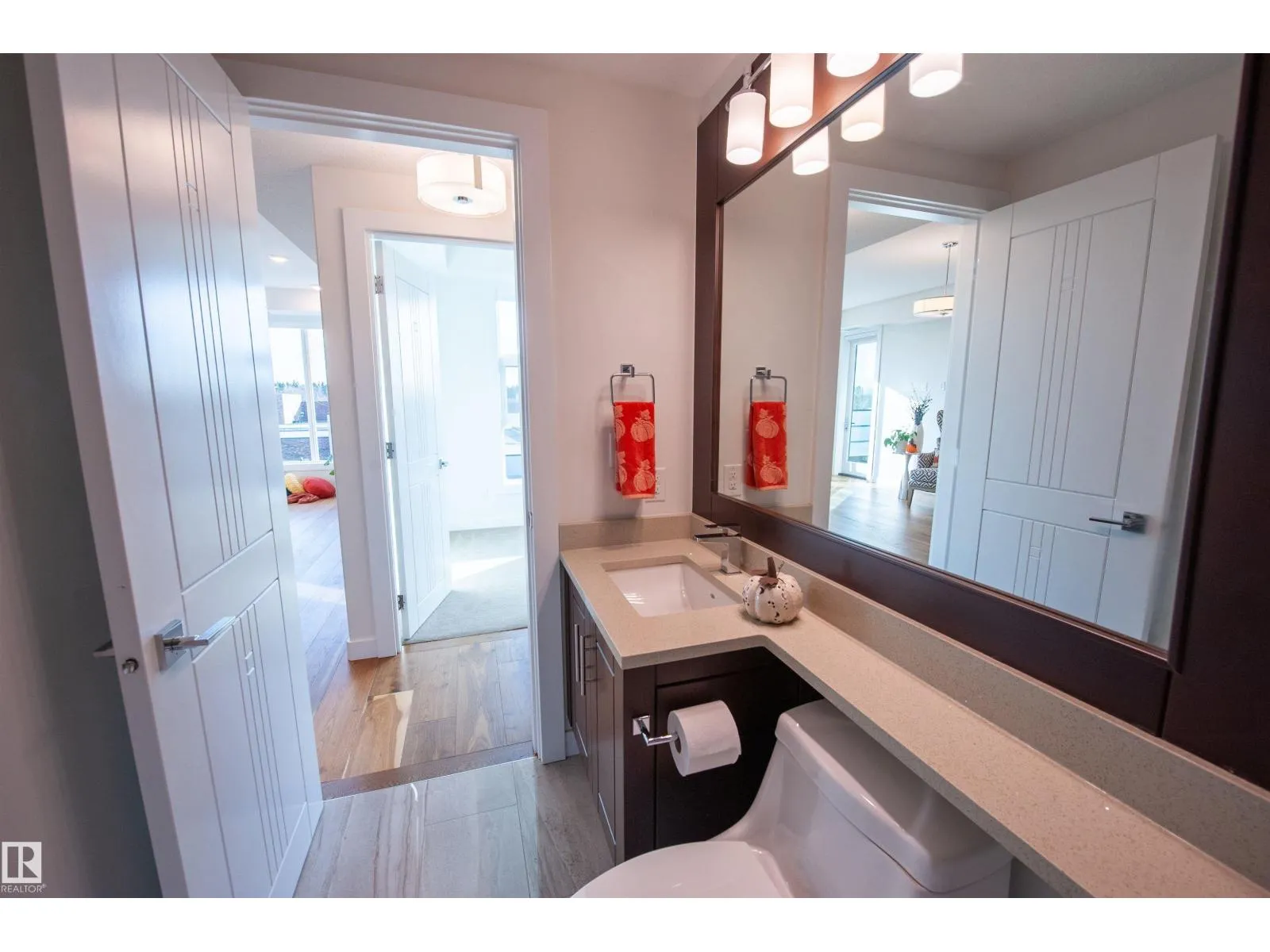 Live the Good Life in Centre in the Park! Set in an elegant, modern building surrounded by shops, cafés, and greenspace, this Top Floor 2-bedroom, 2-bath Corner Unit offers over 1,000 sq. ft. of contemporary comfort and style. Built with luxury materials and unmatched craftsmanship, this residence stands apart from anything else in Sherwood Park. The open floor plan features a sleek kitchen with quartz counters, stainless steel appliances, and rich cabinetry flowing into a spacious living area with hardwood-tone floors and large windows. Step onto the covered balcony for peaceful, tree-lined views. The primary suite includes a private 4-piece ensuite and generous closet space, while the second bedroom and full bath add flexibility. HUGE BONUS: Also includes 2 SEPARATELY TITLED HEATED UNDERGROUND PARKING STALLS, and a Secure Storage unit! Plus access to premium amenities â a Fitness Centre with patio, CAR WASH, and Rooftop Terrace. Visit REALTOR® website for more info. *Some photos are virtually staged* (id:27476)