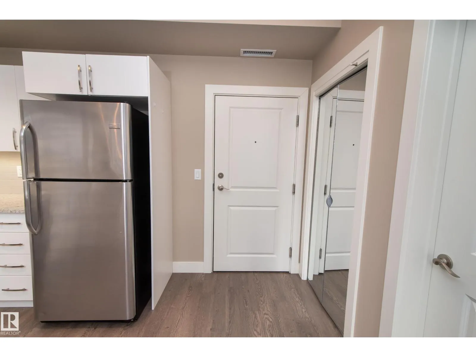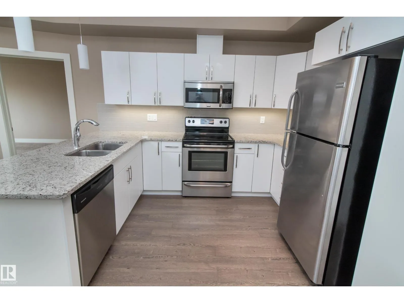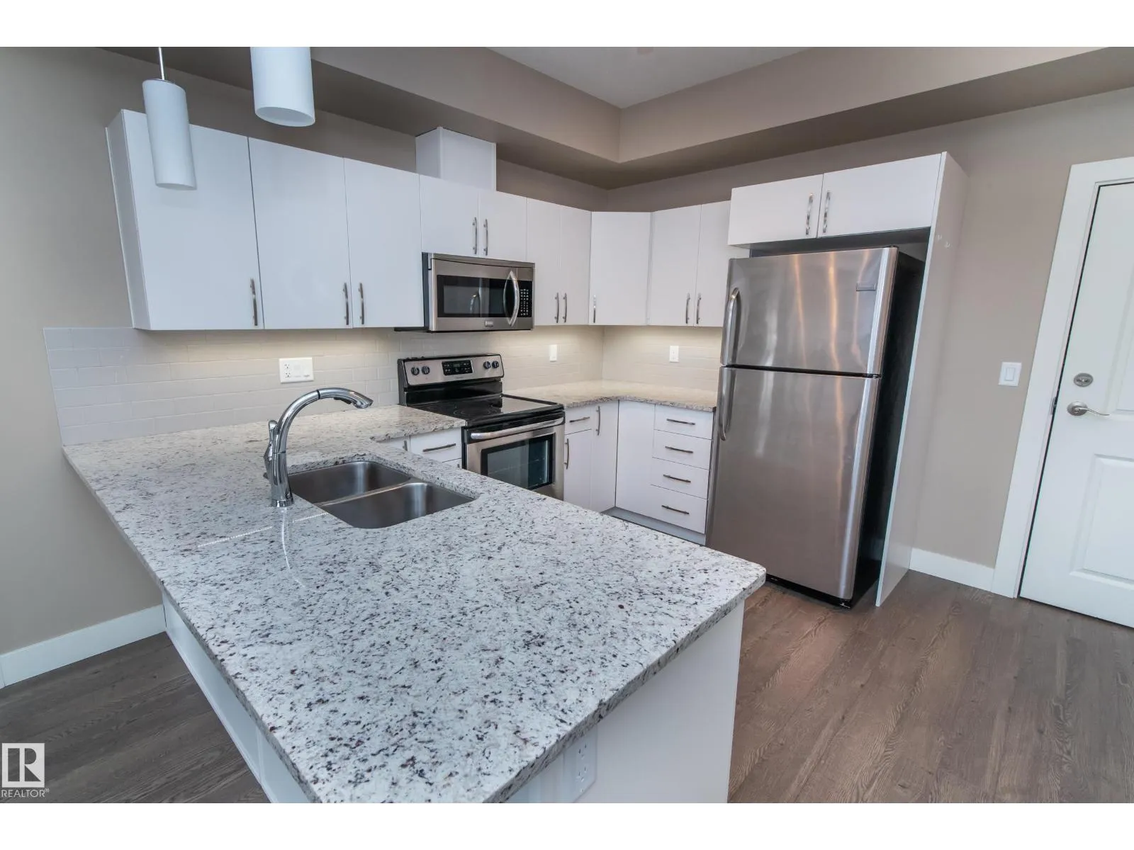 You wonât find better value than this 1,005 sq.ft. Christenson-built (18+) main-floor suite! The elegant lobby welcomes you with comfortable seating and a warm, inviting atmosphere. Inside, this former show suite features an open-concept design with laminate flooring, a bright peninsula kitchen with granite countertops, and a sun-filled living room that opens onto an east-facing balcony overlooking a walking path. The primary bedroom offers a 4-piece ensuite, while a second bedroom, in-suite laundry, and another full bath complete the layout. Additional highlights include central A/C, heated underground parking, and a large fitness room. Ideally located within walking distance to Emerald Hills shopping, hospital, parks, and public transit. A beautifully maintained home in a quiet, adult-oriented building! (id:27476)