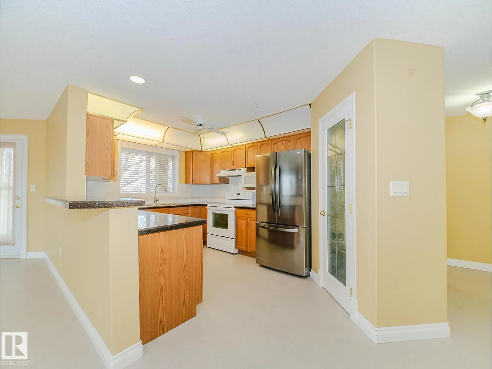 This is so much more than an adult living condo - it's a vibrant community! Live like you're in assisted living without paying for it! A 55 yr plus condo with oodles of amenities and activities. Two social rooms, a games room, a well-acquainted fitness room and a car wash! This suite is freshly painted, has newly finished ceilings and new cork flooring. Overlooking green space provides a beautiful view and sense of privacy. The suite is open and spacious with lots of windows. The primary bedroom has double closets with a walk-in tub/shower. The kitchen includes stone tops and there is an A/C unit to stay cool on warm summer days. Have guests that would like to stay? No problem! There are two guest suites available for short term rental for a small fee. This is so much more than a condo - it's a lifestyle and community. (id:27476)