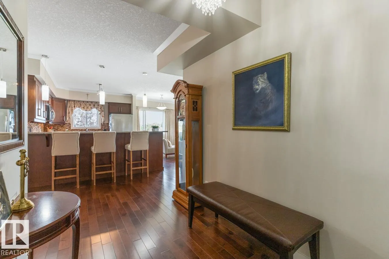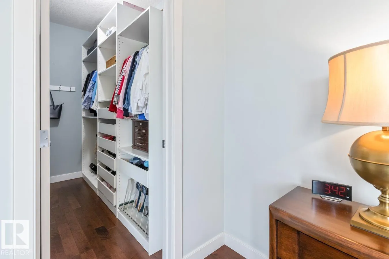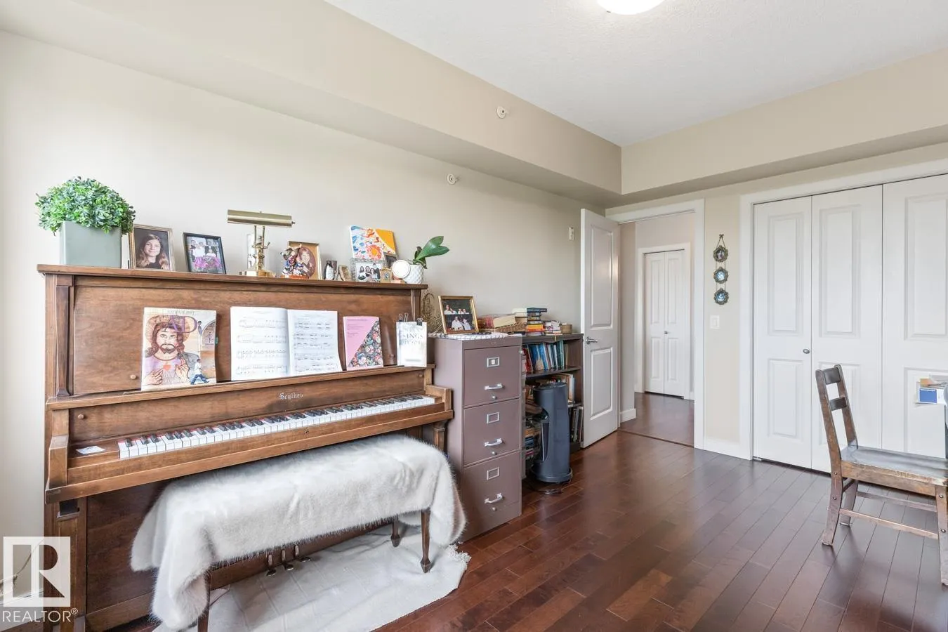 Pristine top floor unit with the BEST VIEWS in this desirable 45+ complex, featuring AC, titled underground parking (2 tandem stalls) with storage cage, 2 bedrooms, 2 baths & elegant hardwood & tile flooring throughout. A spacious entry welcomes you into a bright, open layout filled with natural light & tree top views from the abundance of windows. The kitchen offers ample cabinetry, pantry, granite counters, glass tile backsplash, S/S appliances & raised breakfast bar. Spacious living & dining room with garden door to the SOUTH facing 107.16 sqft patio, perfect for enjoying quiet, park views. The large primary suite includes a WI closet & 3pc ensuite. Second bedroom, a 4pc bath & laundry/storage room complete this functional design. The quiet building features video security, plenty of additional parking & a beautiful lobby ideal for coffee visits, card nights & other gatherings. Condo fees include heat and water. Fantastic central location close to parks, shopping & restaurants. (id:27476)