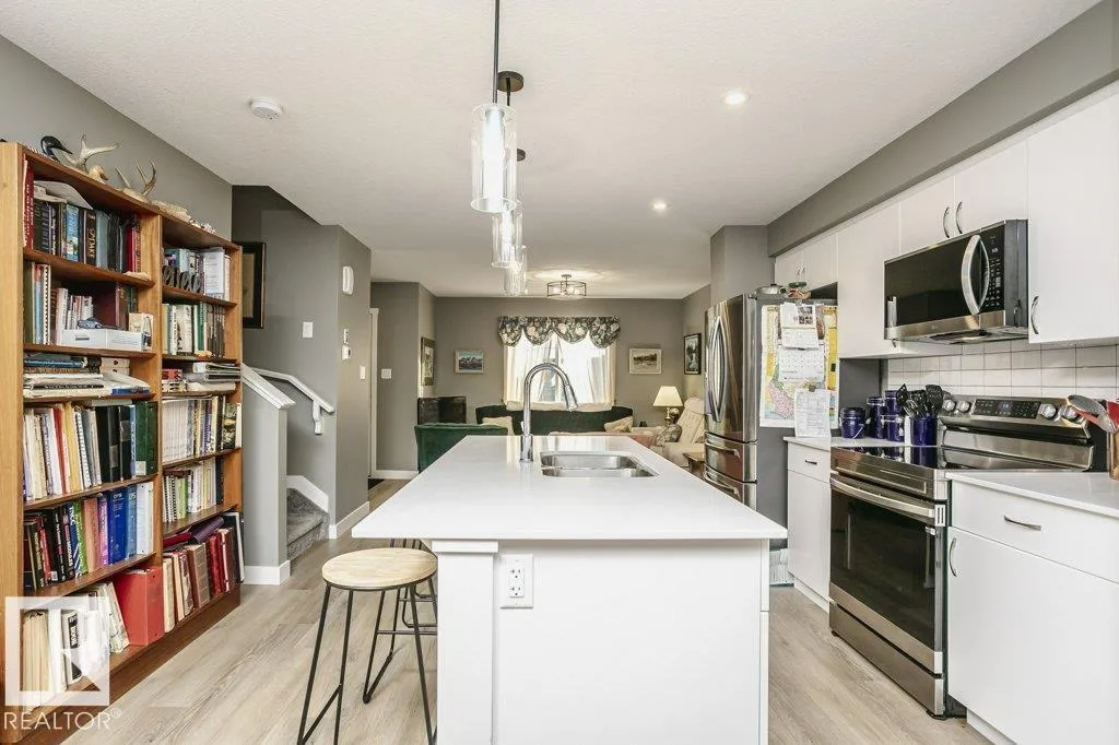 NO Condo FEES !!! An amazing value in Summerwood awaits this THREE BEDROOM THREE BATH Townhouse Built by Pacesetter Homes. You can MOVE in before Christmas !! Open concept on the main floor with Vinyl plank flooring throughout main level. Spacious front living area is open to the Dining Room and Kitchen with an abundance of soft close cabinets - working Island and Quartz counter tops. Back door leads to landscaped yard and Double Garage off back alley. Upstairs of this home you will find a large primary suite with massive walk in closet and full 4 piece ensuite - two additional bedrooms and another FULL bath. Second floor laundry is a real bonus. Basement level has plumbing for a future 4th bathroom and open for additional family expansion. Great location in Summerwood close to parks -walking trails and Public Transit (id:27476)