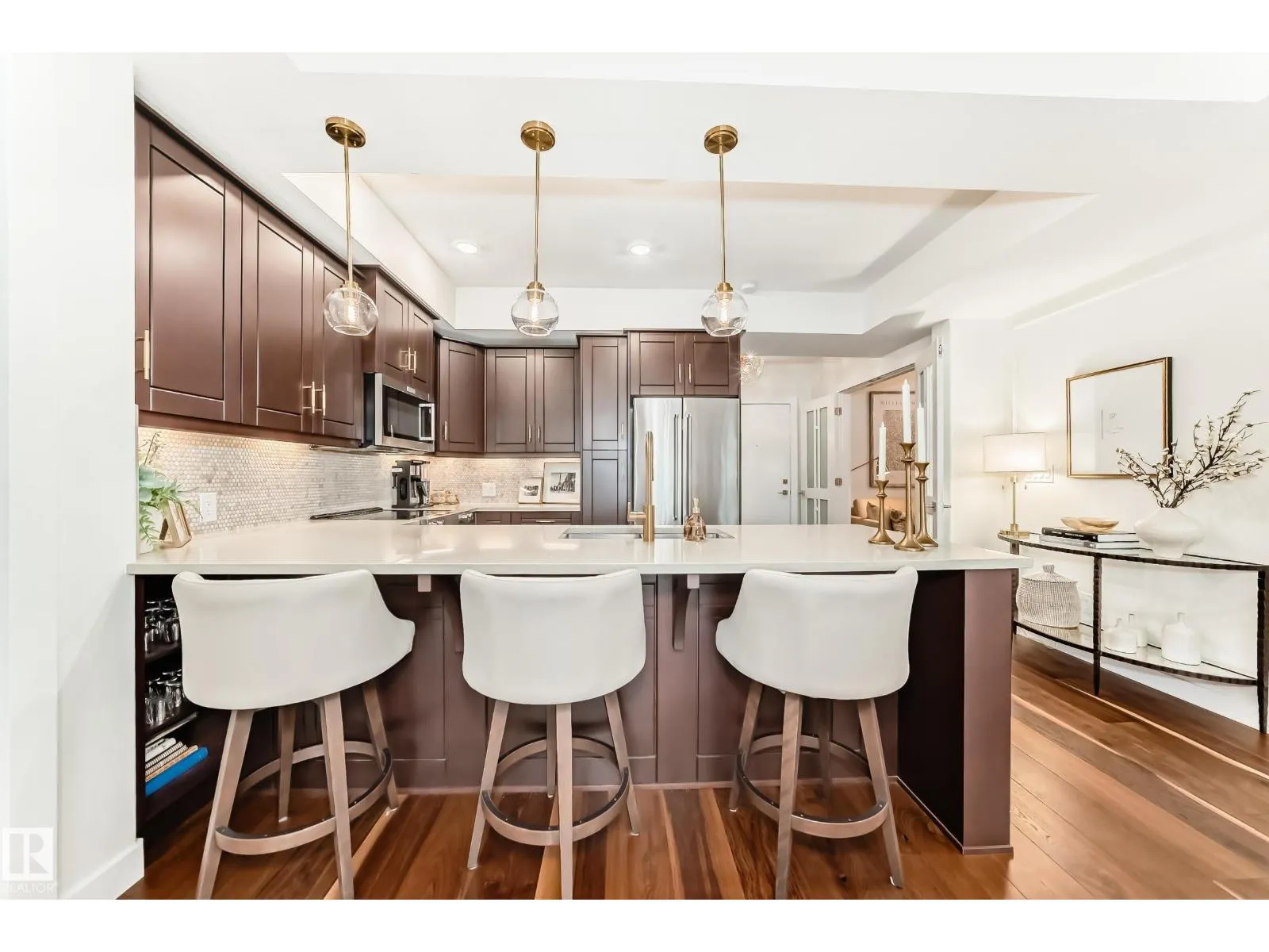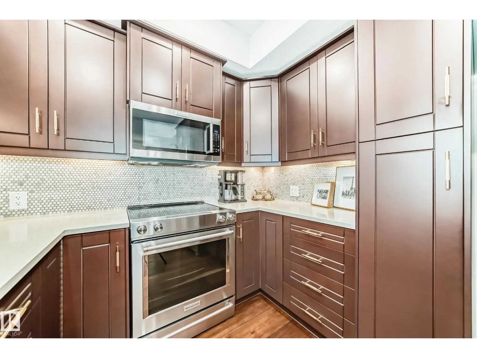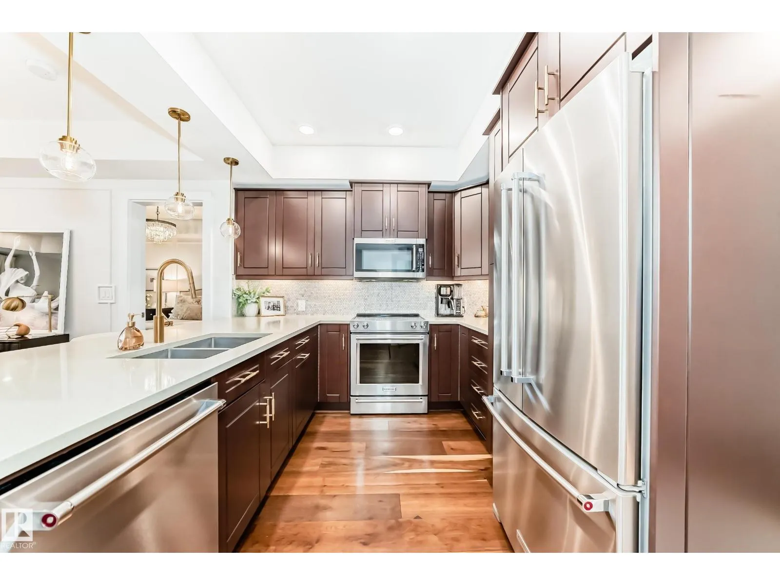 Welcome to Savona at Centre in the Park â Sherwood Parkâs premier urban address. This exceptional 2-bedroom + den, 2-bath residence offers the perfect combination of luxury, comfort, and convenience. Enjoy bright, open-concept living with 9-ft ceilings and expansive windows that flood the home with natural light. The chef-inspired kitchen features quartz countertops, sleek cabinetry, and stainless steel appliances, flowing seamlessly into a spacious living area and private balcony. The primary suite includes a walk-through closet and spa-like ensuite, while the second bedroom, den, and full bath provide flexibility for guests or a home office. Additional highlights include in-suite laundry, central A/C, and heated underground parking with storage. Steps from Festival Place, Broadmoor Lake, shops, and restaurants â Savona offers refined living in the heart of Sherwood Park. (id:27476)