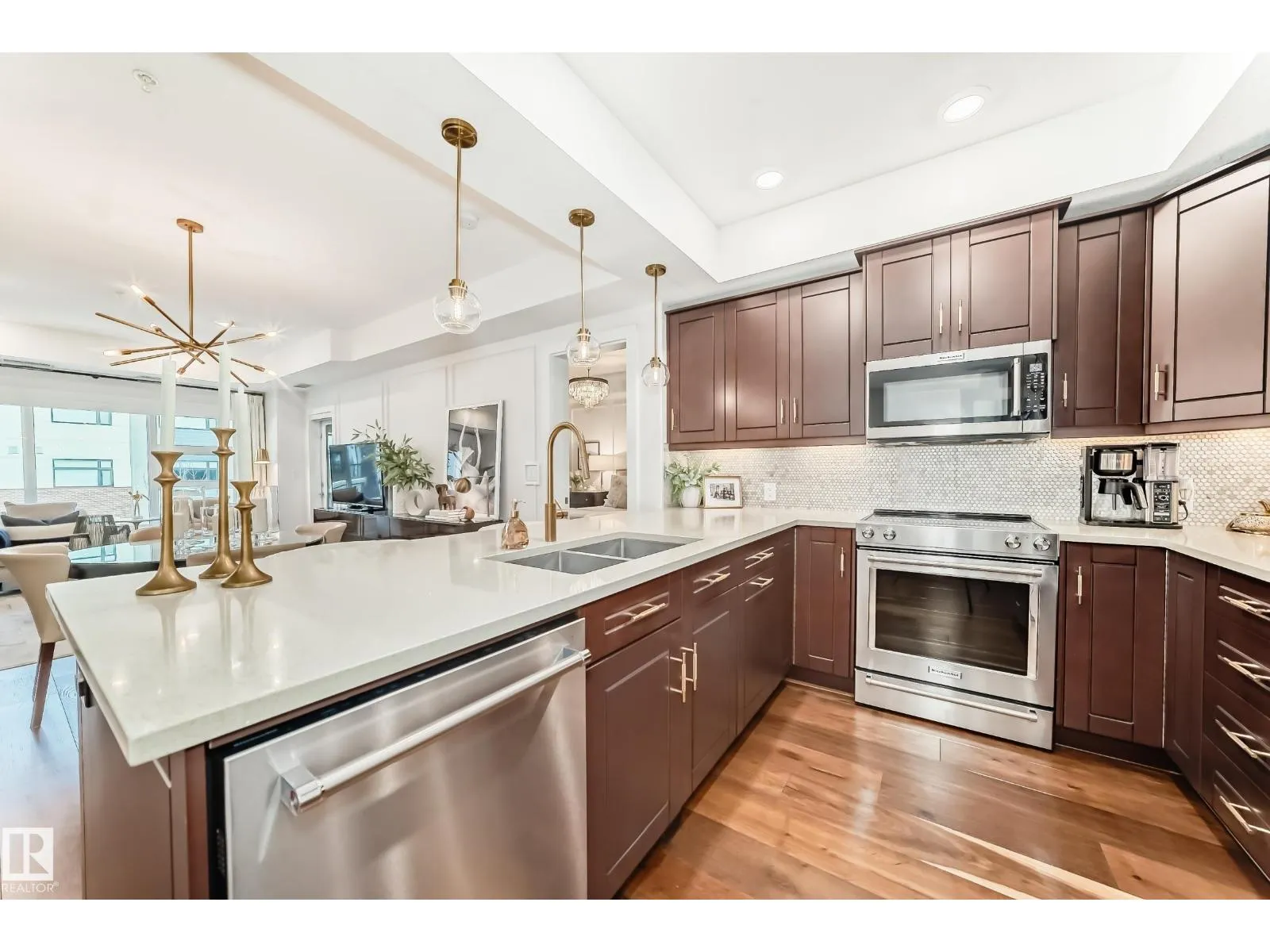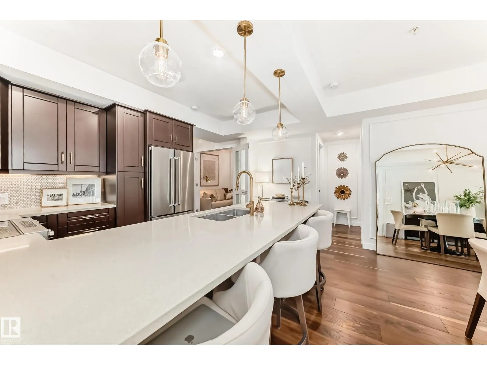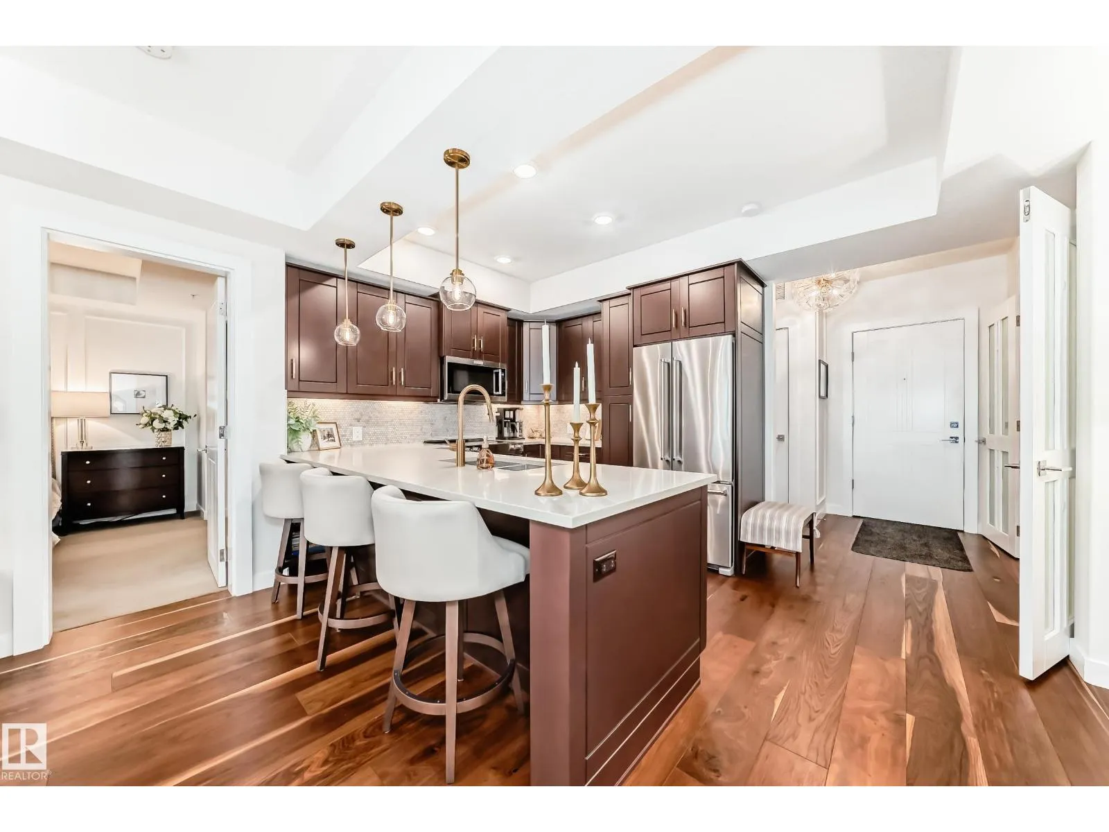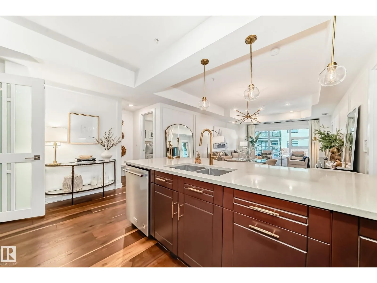 Welcome to Savona at Centre in the Park â Sherwood Parkâs premier urban address. This exceptional 2-bedroom + den, 2-bath residence offers the perfect combination of luxury, comfort, and convenience. Enjoy bright, open-concept living with 9-ft ceilings and expansive windows that flood the home with natural light. The chef-inspired kitchen features quartz countertops, sleek cabinetry, and stainless steel appliances, flowing seamlessly into a spacious living area and private balcony. The primary suite includes a walk-through closet and spa-like ensuite, while the second bedroom, den, and full bath provide flexibility for guests or a home office. Additional highlights include in-suite laundry, central A/C, and heated underground parking with storage. Steps from Festival Place, Broadmoor Lake, shops, and restaurants â Savona offers refined living in the heart of Sherwood Park. (id:27476)