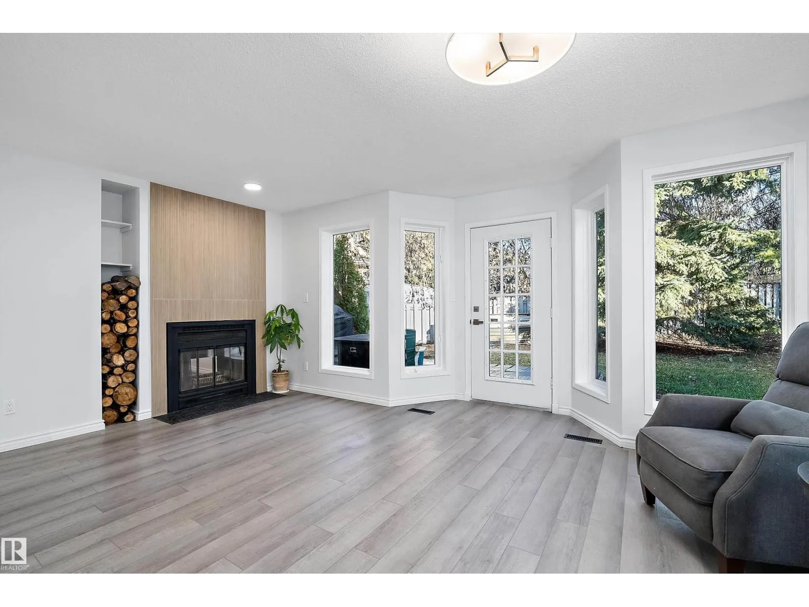 PRICED TO SELL! If cookie cutter isn't for you, Discover this exceptional value in Woodbridge Farms! Updated 2 storey home on a mature, treed pie lot located on a cul-de-sac offers over 2000 sq. ft. of stylish, unique living space, featuring 3 bedrooms plus den/office up and 2.5 baths. Recent renovations showcase newer flooring, trim, doors, fresh paint, a stunning custom kitchen with premium finishes, ample storage, and abundant natural light. The incredible primary suite is a true retreat with a luxurious ensuite shower featuring a custom tiled double walk-in shower, while two additional bedrooms and a bright den/4th bedroom provide flexibility for family or work-from-home living. Enjoy a private balcony off the second bedroom, a spacious living room, and a formal dining area anchored by a two-sided tile-surround fireplaceâperfect for cozy winter evenings. Additional highlights include main floor laundry and mudroom, unspoiled basement & double attached insulated garage. (id:27476)