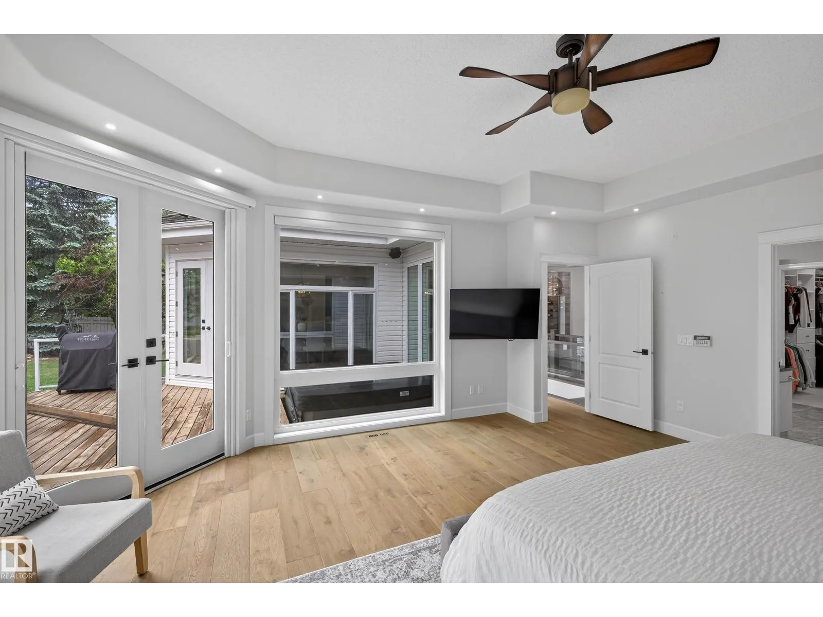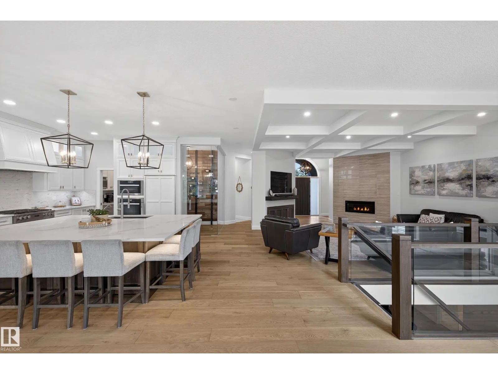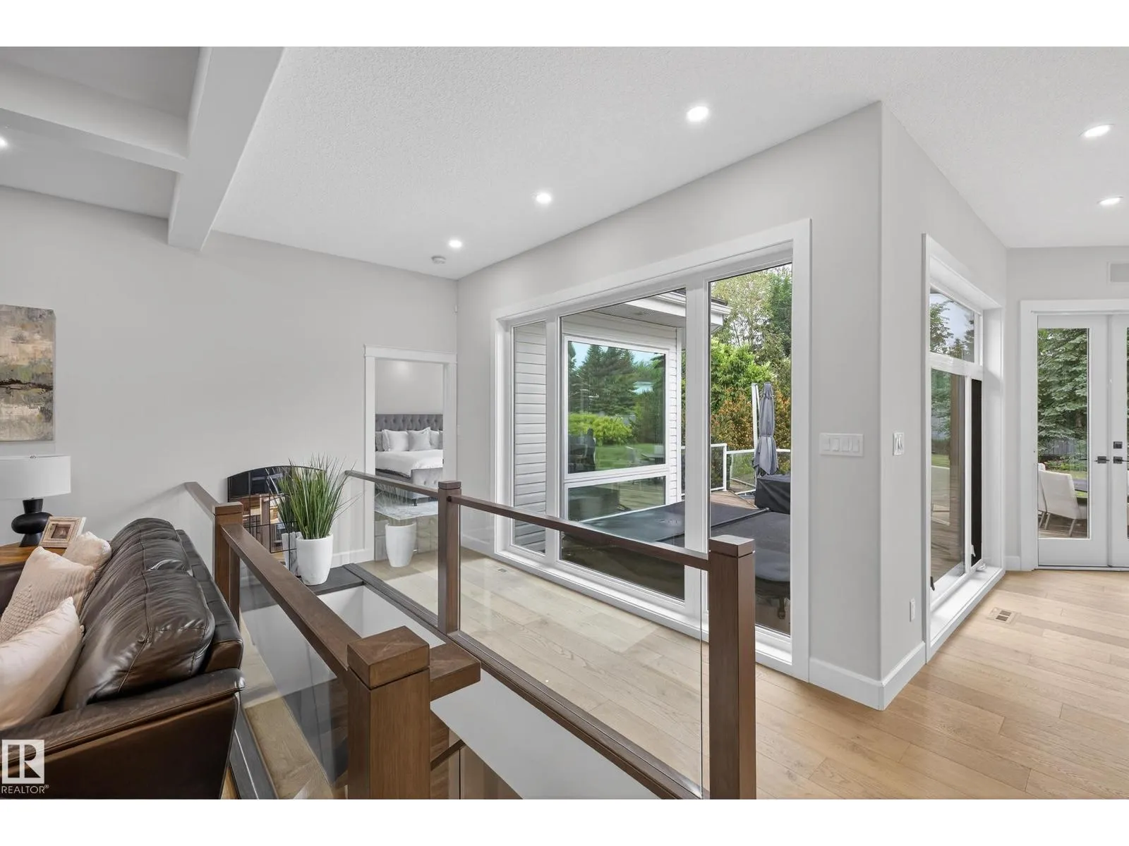 Exceptional newly renovated custom built walkout BUNGALOW on a beautifully landscaped and private 0.5 acre lot. This property features a dream 5 car garage with in-floor heat, perfect for car enthusiasts or extra workspace. The main floor offers 10ft ceilings, engineered hardwood, and wall to wall windows that fill the home with natural light. The open concept design includes a chef's kitchen with custom cabinetry, Caesarstone quartz countertops, premium Miele appliances, a butler's pantry, and a glass wine room with wine fridge. The large island is the perfect centerpiece for entertaining. The main level also includes the primary suite, bright home office, and a spacious mudroom and laundry area. The walkout lower level offers a bar, family room with gas fireplace, glass-enclosed gym, two bedrooms, and a 4-pc bath. A fourth bedroom above the garage has its own ensuite and rooftop patio. The yard features an in-ground sprinkler system and hot tub for relaxing or entertaining. (id:27476)