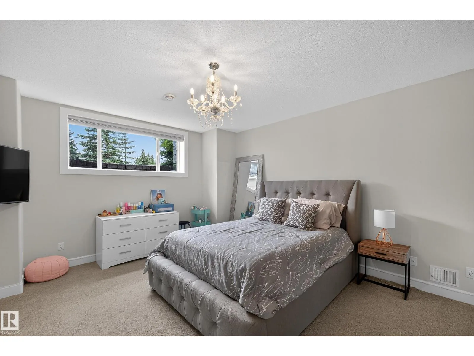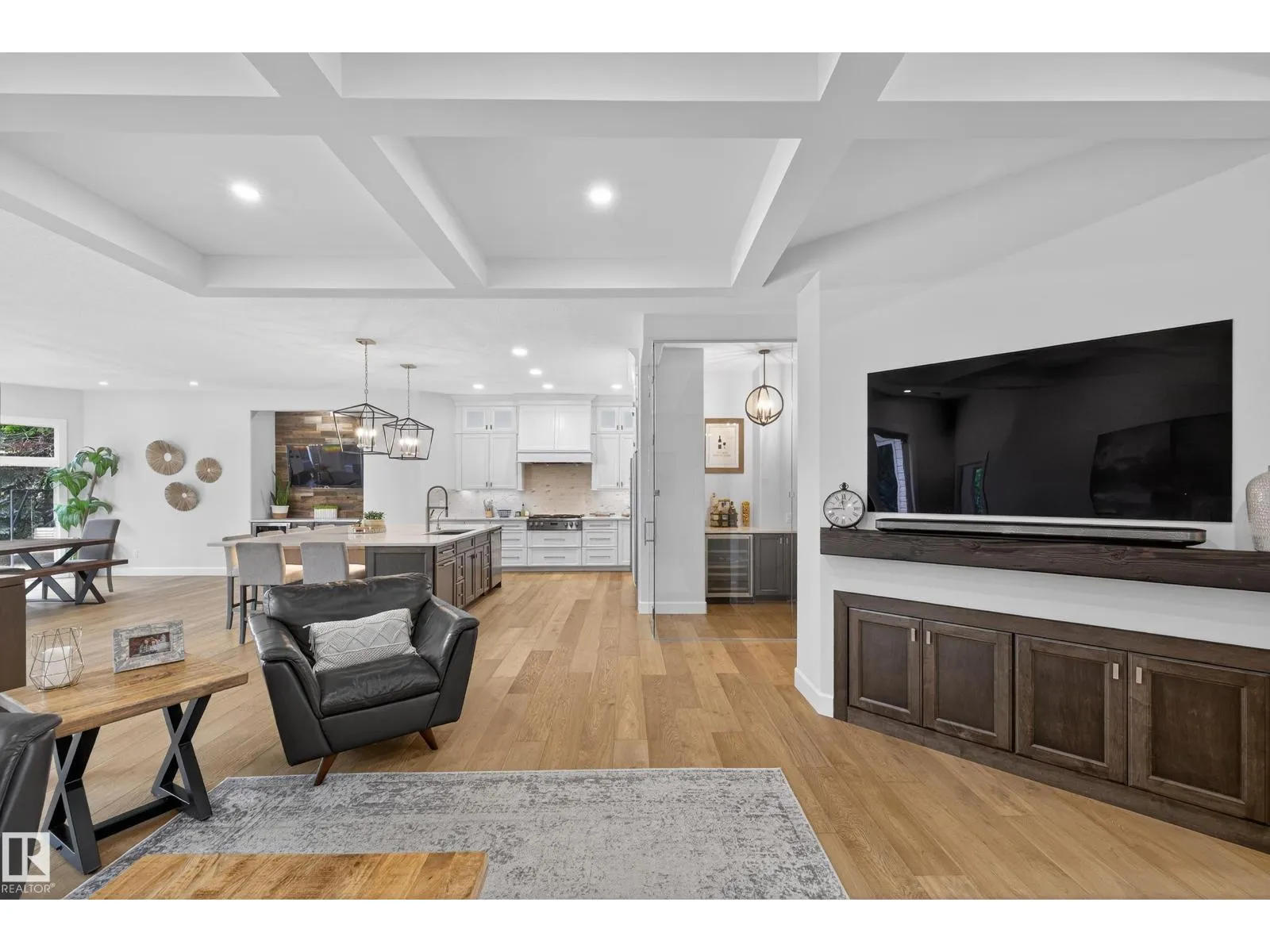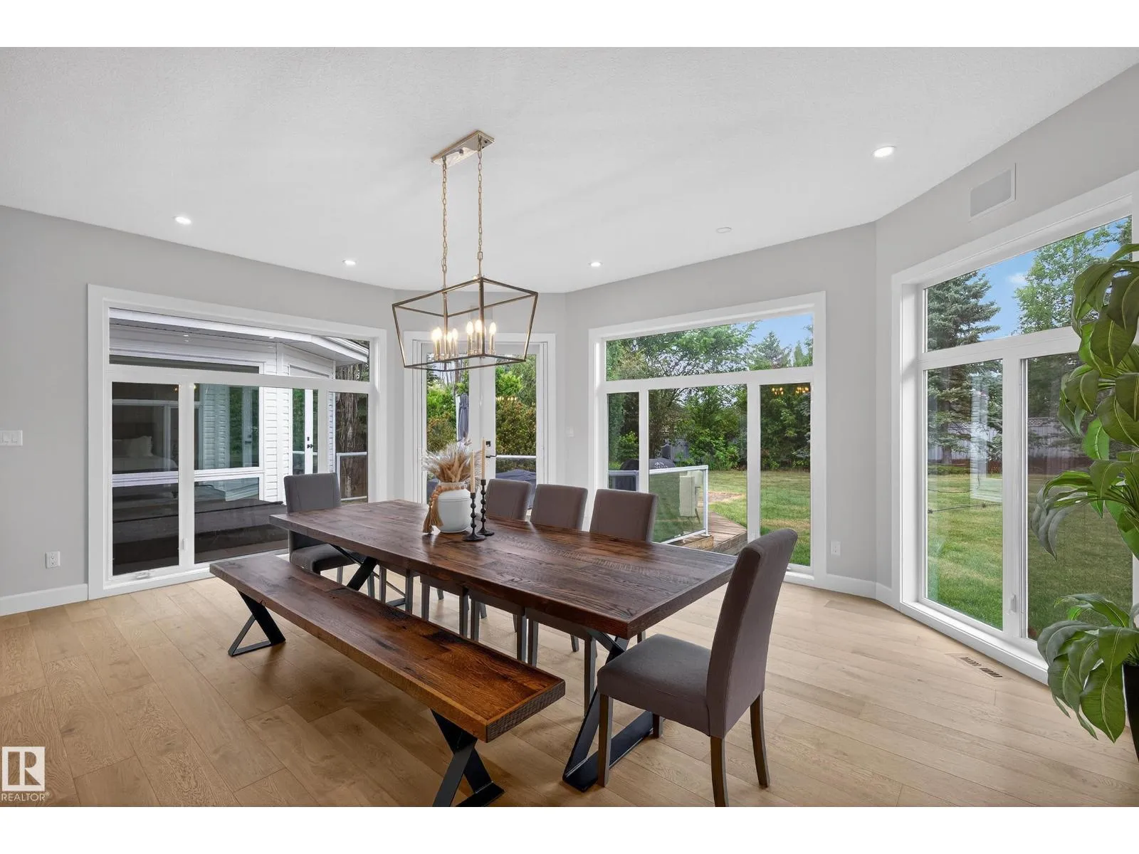 Exceptional newly renovated custom built walkout BUNGALOW on a beautifully landscaped and private 0.5 acre lot. This property features a dream 5 car garage with in-floor heat, perfect for car enthusiasts or extra workspace. The main floor offers 10ft ceilings, engineered hardwood, and wall to wall windows that fill the home with natural light. The open concept design includes a chef's kitchen with custom cabinetry, Caesarstone quartz countertops, premium Miele appliances, a butler's pantry, and a glass wine room with wine fridge. The large island is the perfect centerpiece for entertaining. The main level also includes the primary suite, bright home office, and a spacious mudroom and laundry area. The walkout lower level offers a bar, family room with gas fireplace, glass-enclosed gym, two bedrooms, and a 4-pc bath. A fourth bedroom above the garage has its own ensuite and rooftop patio. The yard features an in-ground sprinkler system and hot tub for relaxing or entertaining. (id:27476)