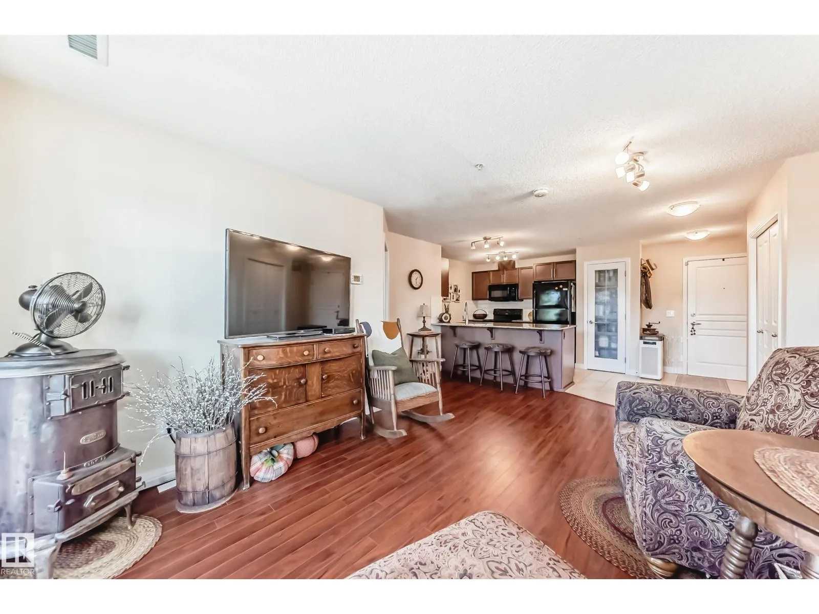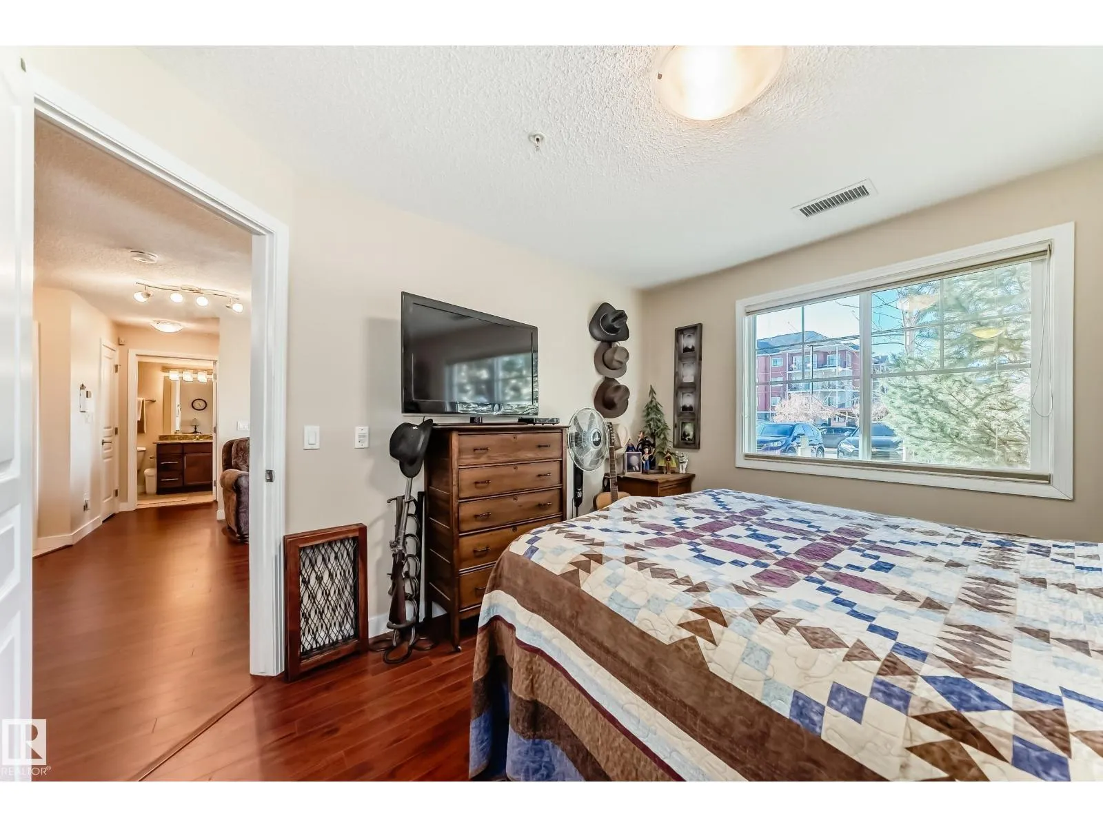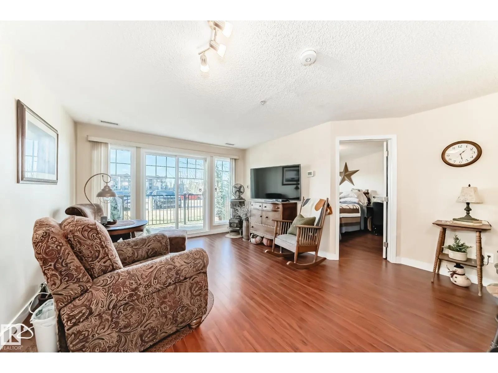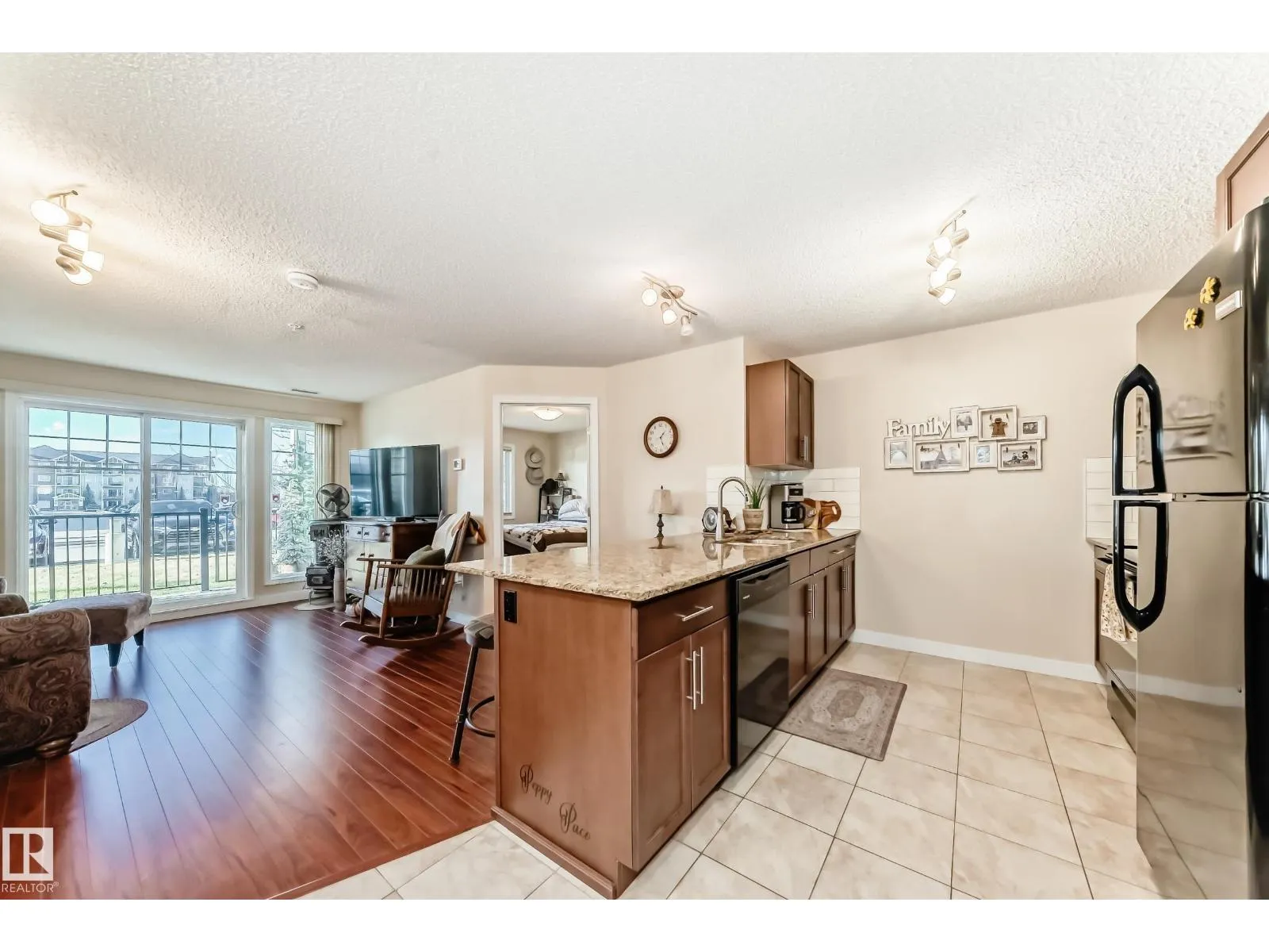 Welcome to Aspen Park Condos! Step inside to this very well maintained 2 bedroom, 2 bath situated on the main floor near the front entrance. The unit offers a functional living space, two good size bedrooms with the primary having a walk-through closet and walk-in shower. The kitchen is finished with granite countertops, ceramic tile flooring and breakfast bar. The laundry room has plenty of space for storage with the unit having A/C roughed in. The west facing patio conveniently has a gated railing steps from your titled parking stall. The building also has communal planter boxes and a small fitness area. This location has plenty of shopping, transportation, restaurants, medical services and endless walking paths surrounded by ponds and greenery. Condo fees include heat and water. (id:27476)