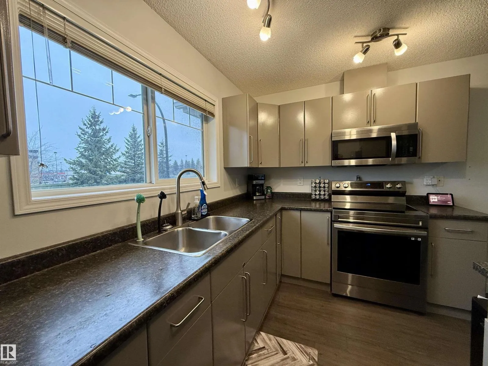Perfect for First-Time Home Buyers or Professionals! Pride of ownership is evident in this well-maintained 2 bedroom, 2 bathroom townhouse in an 18+ community with low condo fees. With a neutral paint palette, vinyl flooring, updated bathrooms, and large windows providing excellent natural light. The main floor offers a versatile layout with a bedroom, full bathroom, laundry/storage room, and access to your single car garage! The upper level will impress with an open-concept living and dining area that flows seamlessly into the functional, stylish kitchen with stainless steel appliances. The large primary bedroom is privately located off to the side and includes an updated 3-piece bath with a gorgeous walk-in shower. Enjoy the cozy front patio overlooking green space. Additional features include a single attached garage with parking pad and convenient proximity to visitor parking. Easy access to major transportation routes including the Yellowhead, Anthony Henday, and Highway 21. (id:27476)