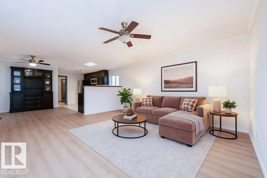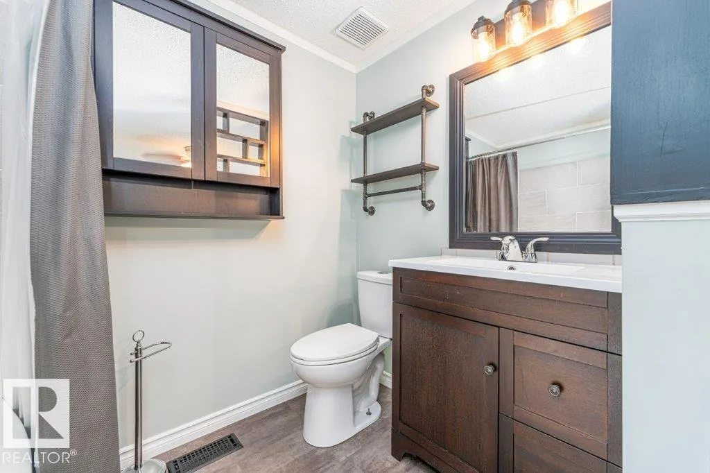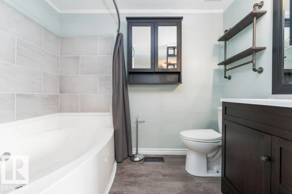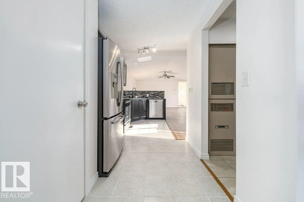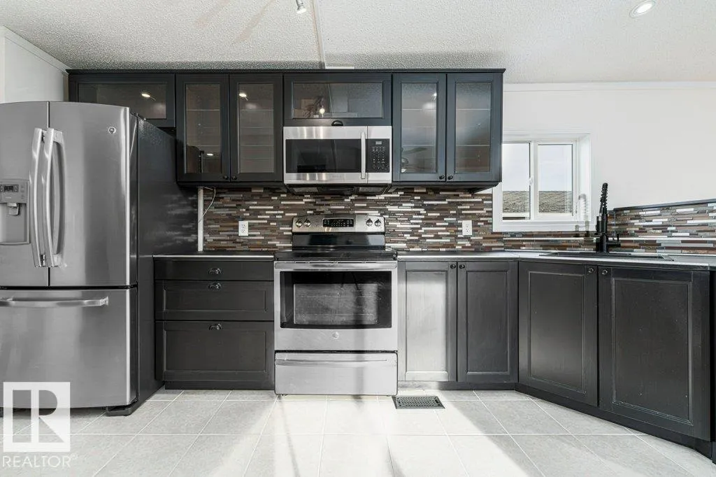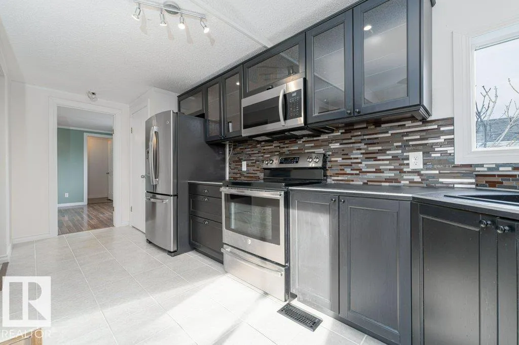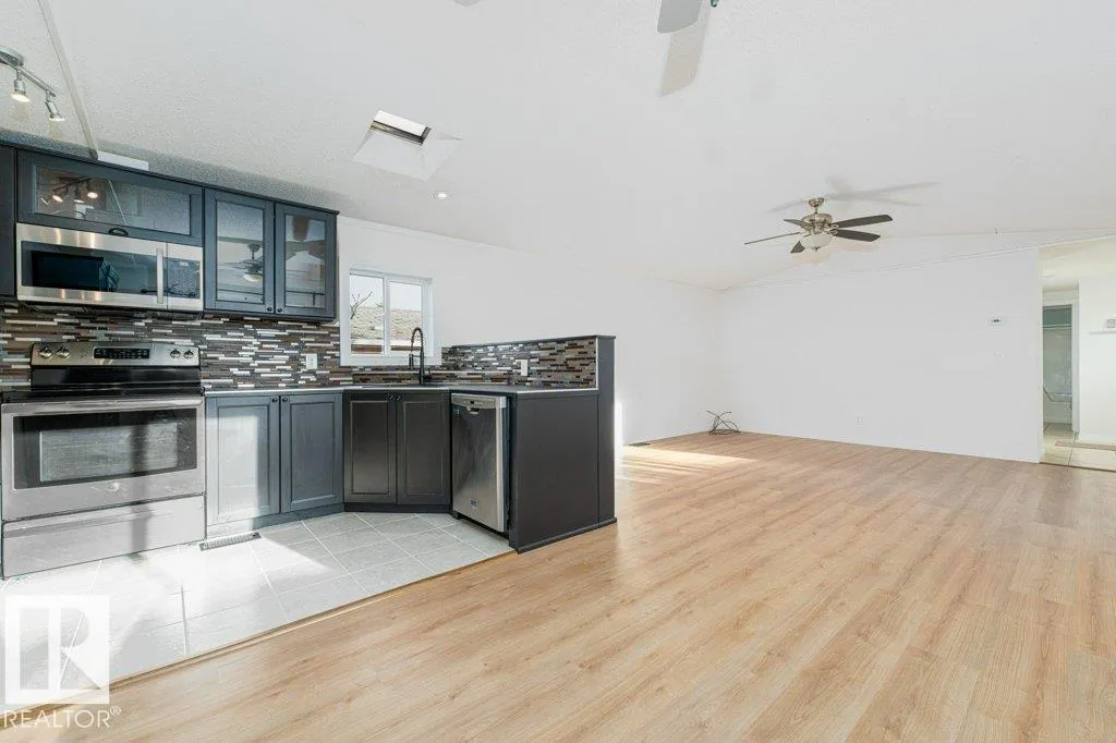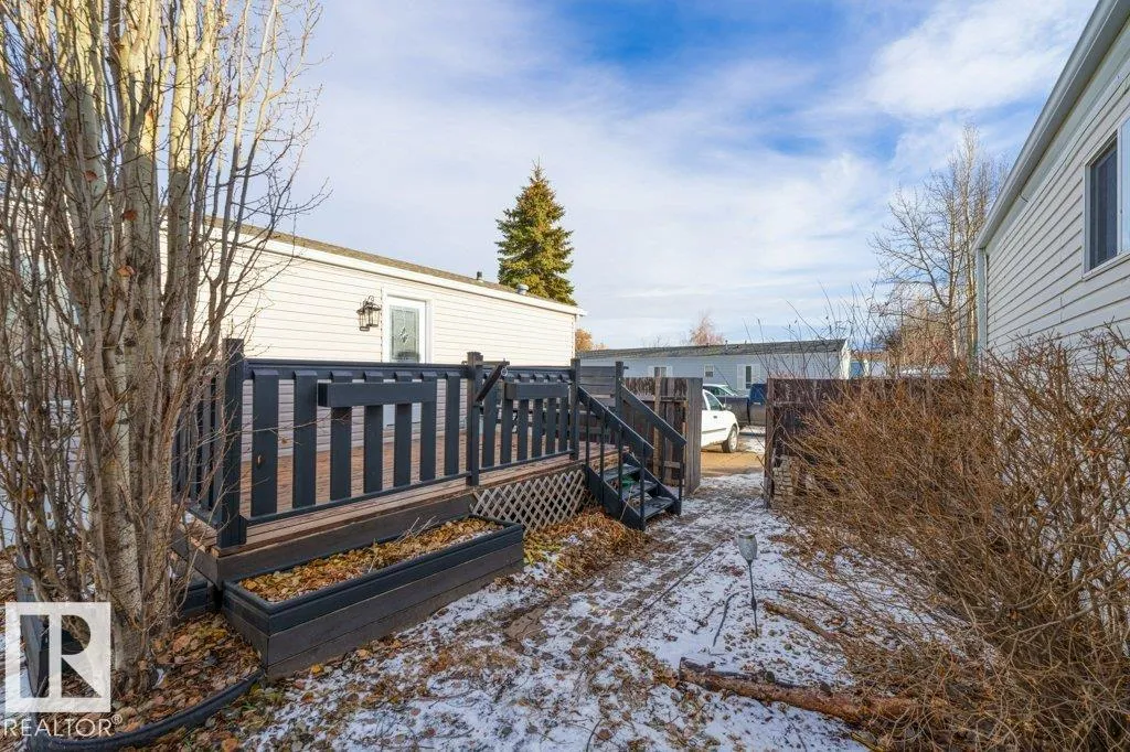 Move-in-Ready home, perfect for first-time home buyers to downsizers! The house has been recently updated with fresh paint, new vinyl flooring, new tile countertops, and kitchen cabinets. Upon arrival, you will notice that the large yard is fully fenced and features a welcoming deck. Inside, you have two bedrooms near the front, along with the guest bathroom. The open living room, dining area, and kitchen make for easy entertaining, with large windows that let in tons of natural light. The kitchen boasts Stainless steel appliances and kitchen cabinets, some with glass doors to display your best. The kitchen also has ample pantry space and is connected to the laundry room with an extra entrance and additional shelving. In the back, you enter the primary retreat with a great window, a large walk-in closet, and the ensuite has a soaker tub perfect for relaxing. Lakeland Village is located near Emerald Hills with great shops, with easy access to the Yellowhead, Highway 21 and the Henday for easy commuting. (id:27476)