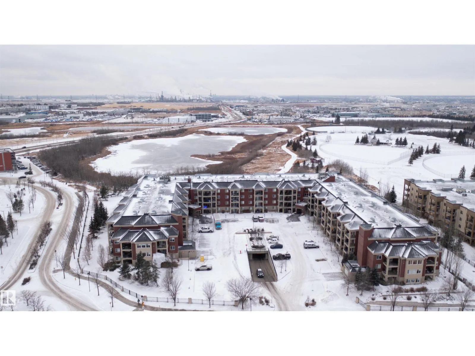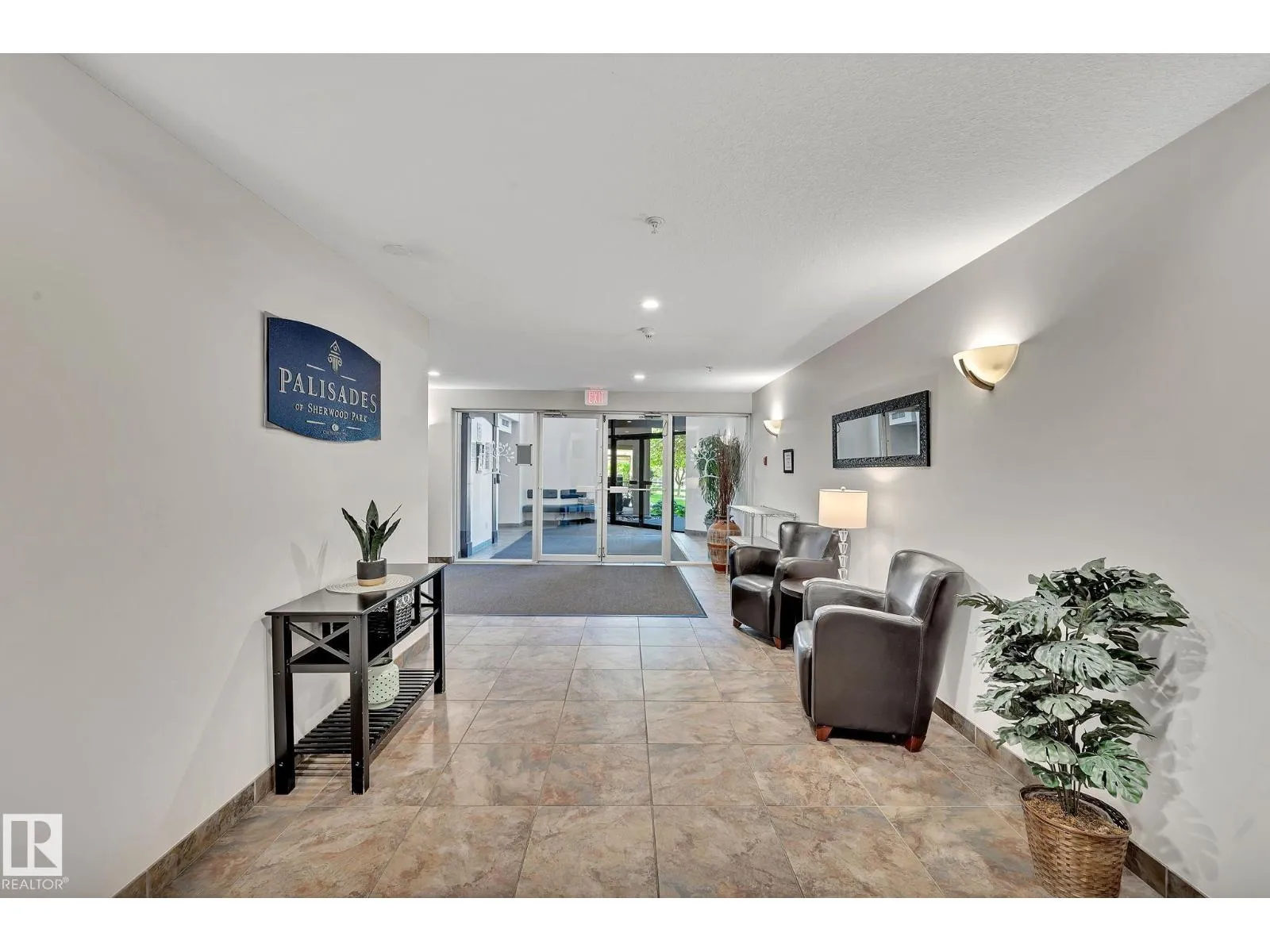 Live the Good Life in the sought-after 300 building at the Palisades in Sherwood Park. This exceptionally well-maintained west-facing main-floor condo is flooded with/ natural light. Backing onto stunning greenbelt with/ wetlands and walking trailsâan incredibly rare view. Conveniently located as the first unit off the entranceway, it offers a spacious layout ideal for entertaining! Enjoy a massive kitchen with/ a huge peninsula, two walk-in closets at the entry, and a laundry area with/ extra storage. The smart split-bedroom floorplan features a bedroom and bath on one side and a private primary suite with an ensuite on the other. A newer forced-air heating system provides fresh-air exchange and cozy comfort vs. standard baseboard systems. The ground-level patio has direct access to green space. Amenities: games room, theatre, full gym, steam room, sauna, & a car wash! Wow! Location, View & lifestyle! Visit REALTOR® website for more info! Some photos are virtually staged (id:27476)