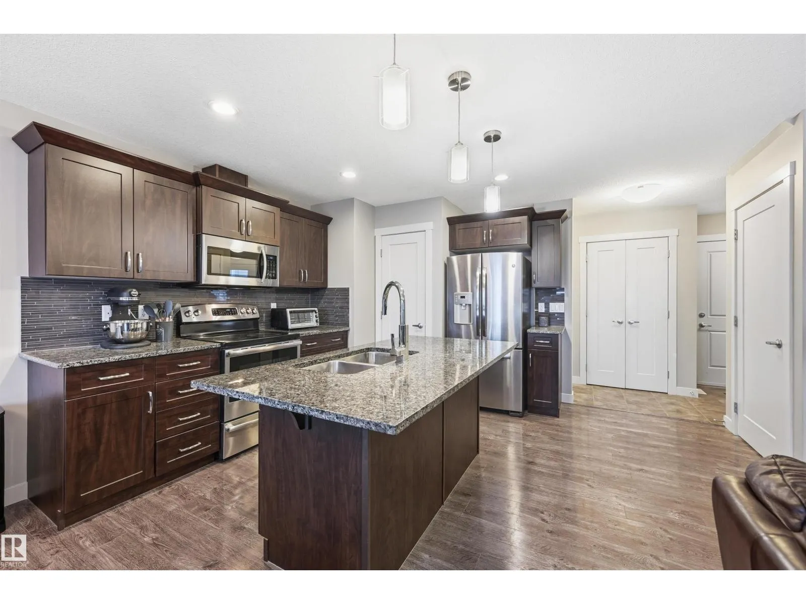 Well-maintained duplex boasting 1,500sf above grade PLUS a fully finished basement in a desirable Sherwood Park community! Nicely situated across from green space w/ a walking trail leading to park/pond. Upon entry find a cozy entrance w/ access to garage & 2pc bathroom. Open-concept main floor is the perfect family space w/ a sizeable kitchen (including granite counters, extended pantry, stainless steel appliances), dining nook & living room w/ gas fireplace. Upstairs find bonus/flex space, large primary bedroom w/ ensuite, 2 spare bedrooms, shared 4pc bathroom & laundry. Basement finished w/ recreation space, bedroom & 3pc bathroom. Double attached garage. Large west back yard (no neighbours directly facing behind either). Features include AC, 9' ceilings, Hunter Douglas blinds, extended driveway & more. Perfect starter home, or move-up single family home! Close proximity to Leisure Centre/Sports Pavillion, restaurants, shopping/retail, schools. Easy access to major arteries. A must see! (id:27476)