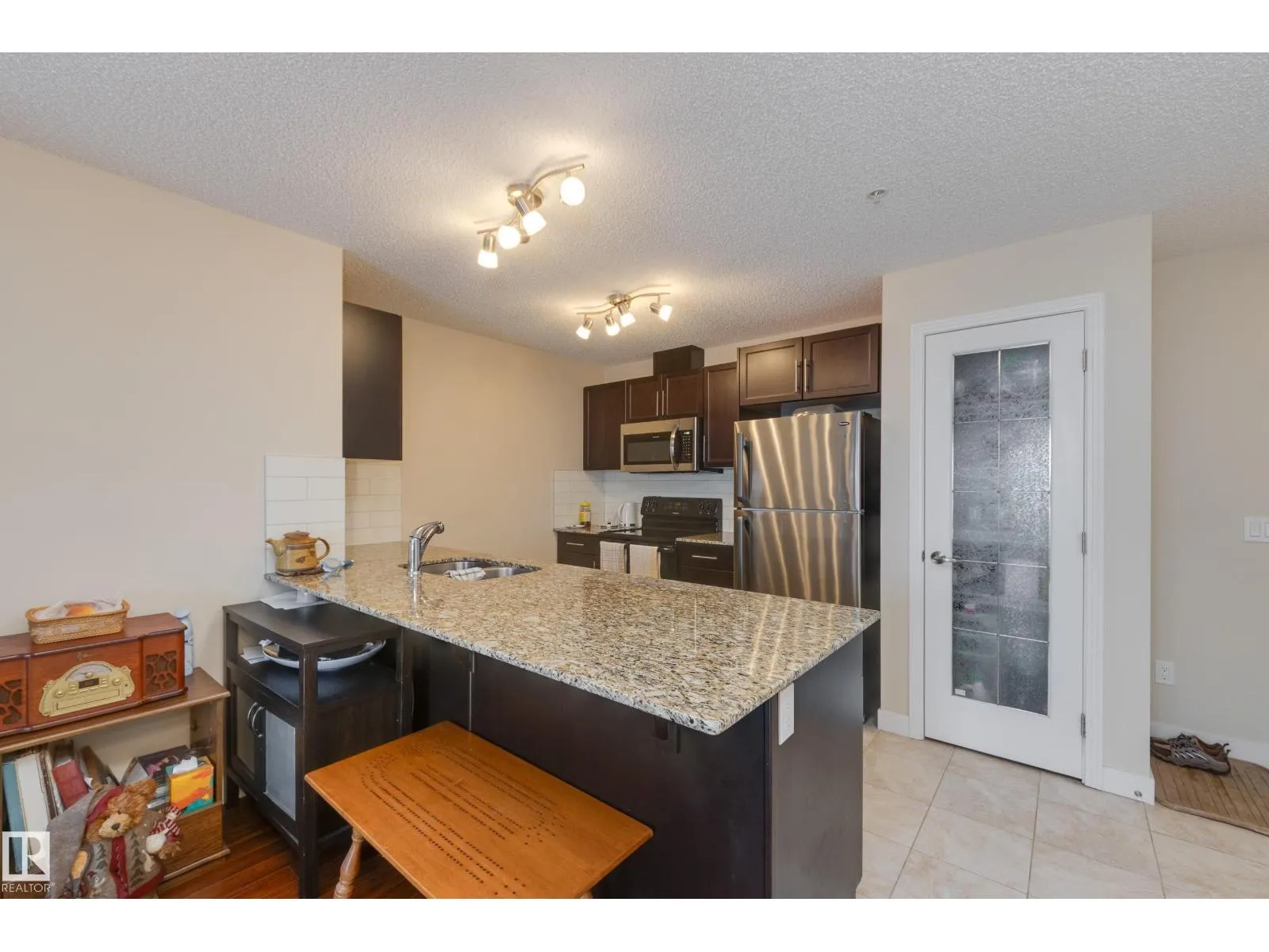 Light & Bright! Immaculate 2 bedroom, 2 full bath condo in the well-managed complex of Aspen Park Condos. Take the elevator up to your mint condition unit. The kitchen is well appointed with ceramic tile flooring, a spacious, clean kitchen with granite counters, stainless appliances, espresso cabinetry & pantry. Light flows into the dining & living room area with laminate flooring, from a full wall of windows & patio door leading to the large balcony. There are 2 large bedrooms, on opposite ends of the unit for optimal privacy & quiet, with 2 full baths. The primary suite is large enough for a king bed, and has a walkthrough closet to the ensuite. You'll never share machines again with your handy in-suite washer & dryer, with storage. This is a no smoking, no pet complex and is so clean! There's an exercise room & reasonable condo fees incl heat and water. All well-located in the Aspen Trails neighbourhood with great access to walking trails, shopping and much more. (id:27476)