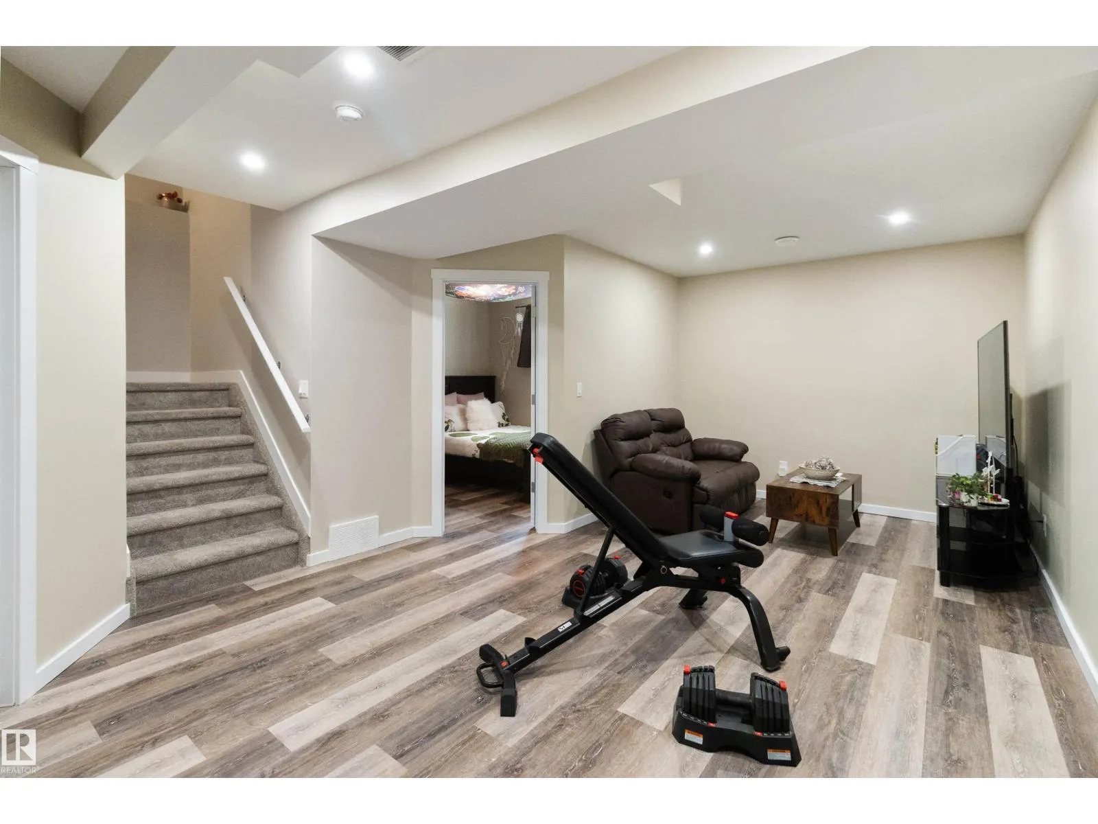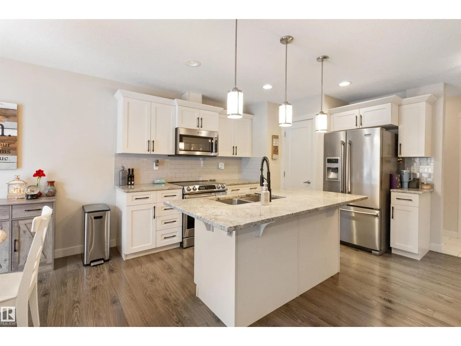 Fabulous 1481 sq ft half duplex in desirable Elements At Aspen Trails! 3+1 bedrooms and 3.5 baths and a double attached garage. Open great room with gas fireplace with mantle. White island kitchen boasts upgraded SS appls, corner walk-in pantry and granite countertops. 2 pc powder room on the main floor. Upper level has 3 spacious bedroom and 2 full baths including a 4 pc ensuite, loft and 2nd floor laundry. Professionally finished basement has 4th bd, FR and another full bath. Central AC. High efficiency furnace and hot water tank. Insulated and drywalled garage. Sunny south backing lot with large deck. (id:27476)