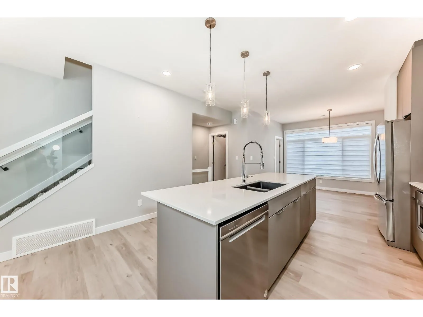 Situated in Emerald Hills, this 1590ft.² Berlin model, 2 Primary Bedroom Townhouse Shows Spotless! Some of the many features and upgrades include; Open concept layout,Chefs kitchen, Floor to ceiling cabinets, S/S Whirlpool appliances,Gas range, Integrated microwave, Large island, Quartz counters and Walk-in pantry. Spacious South facing Living room with a Walkout onto a Large South facing Deck with Gas BBQ connection, Floor to Ceiling tiled Fireplace Feature wall, Dual primary bedrooms with 4 piece ensuites & Walk-in closets, with one bedroom having Two Walk in closets, Upper level Laundry, Lower level South facing Den,. Central Air Conditioning , Remote controlled Elite window coverings in L/R, Kitchen and Bedroom, 9â Ceilings, Double attached garage with a large Driveway Fantastic location! Unobstructed South Facing View, convenient Extra Street Parking and just minutes away from all the best Emerald Hills amenities: major shopping, eateries, hospital, swimming pool and school. Too Much to list! (id:27476)