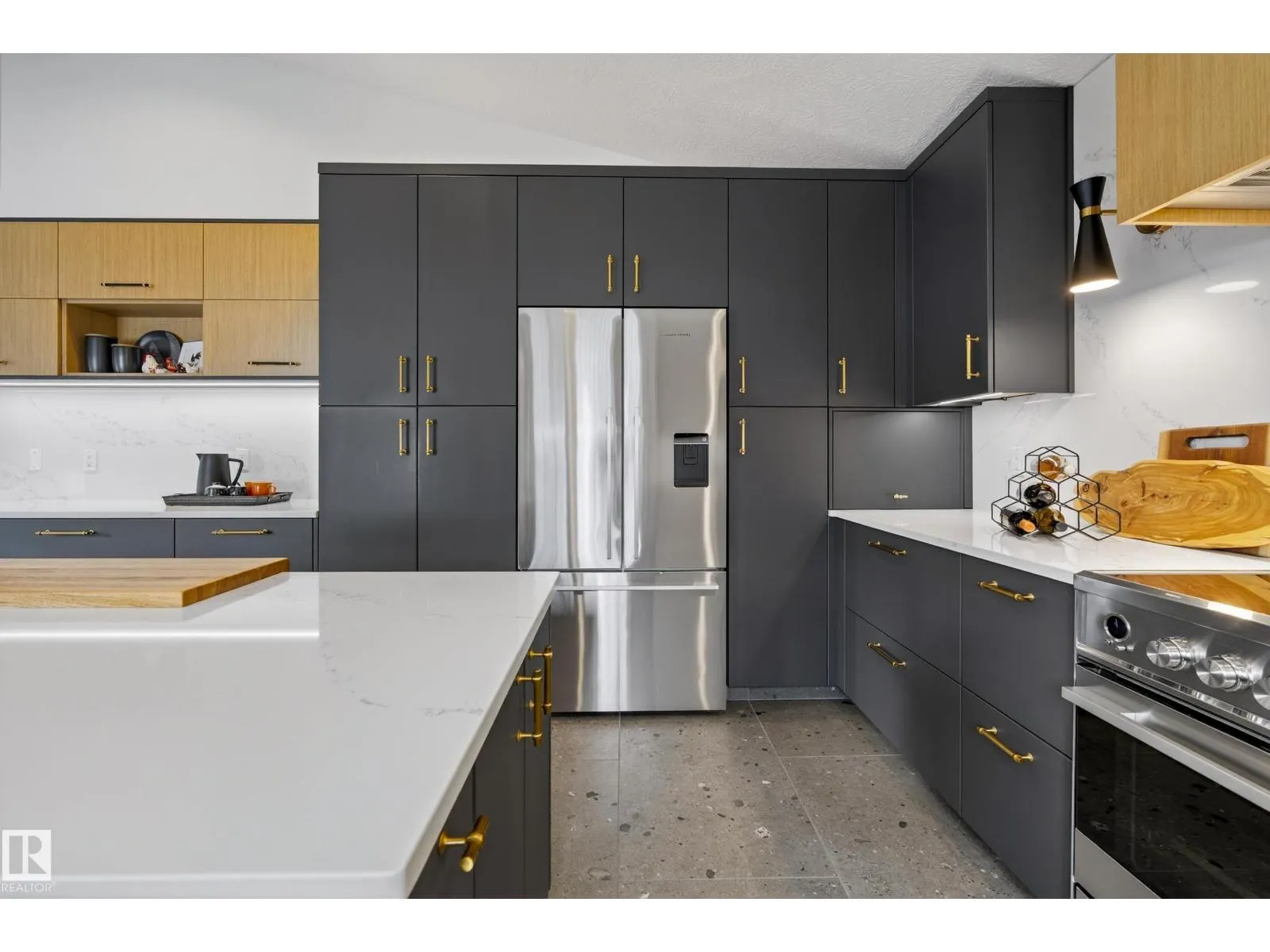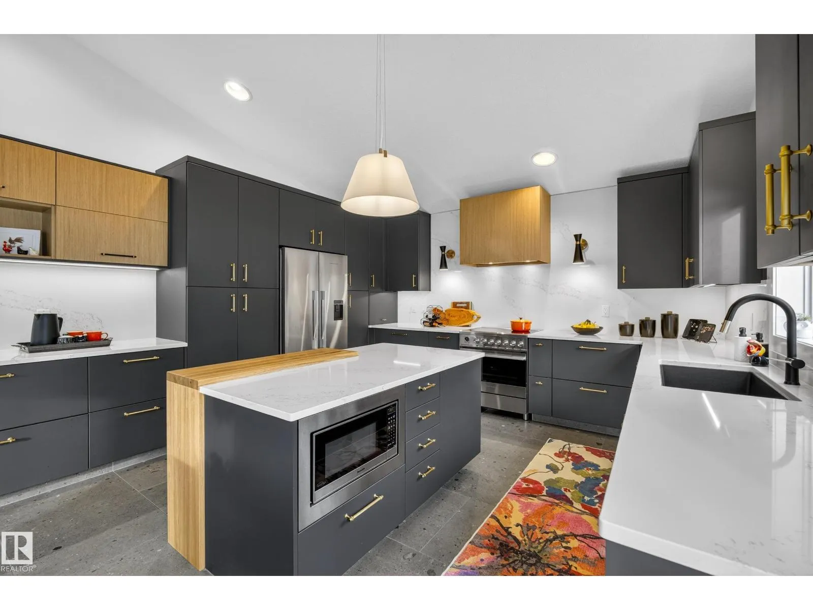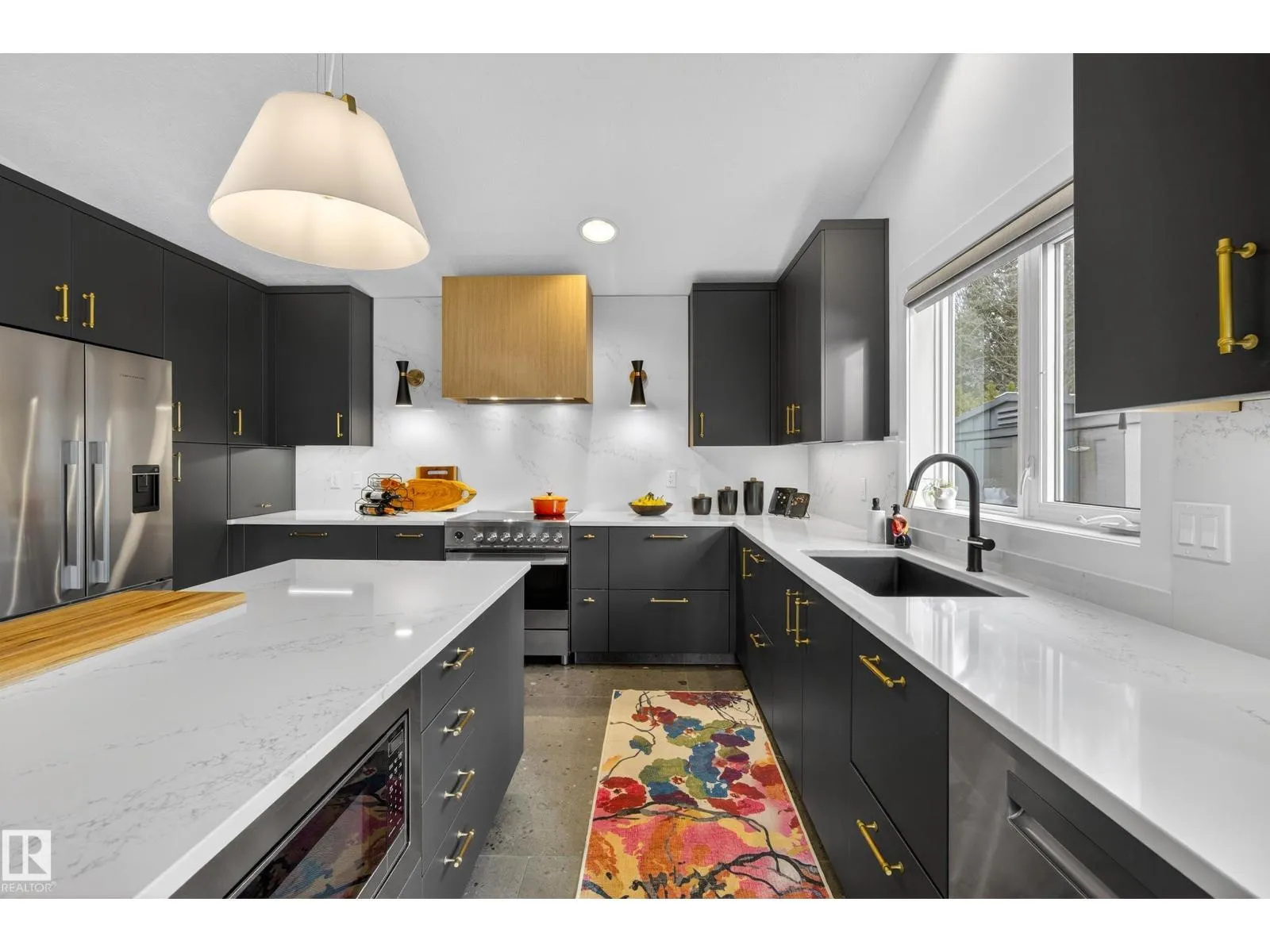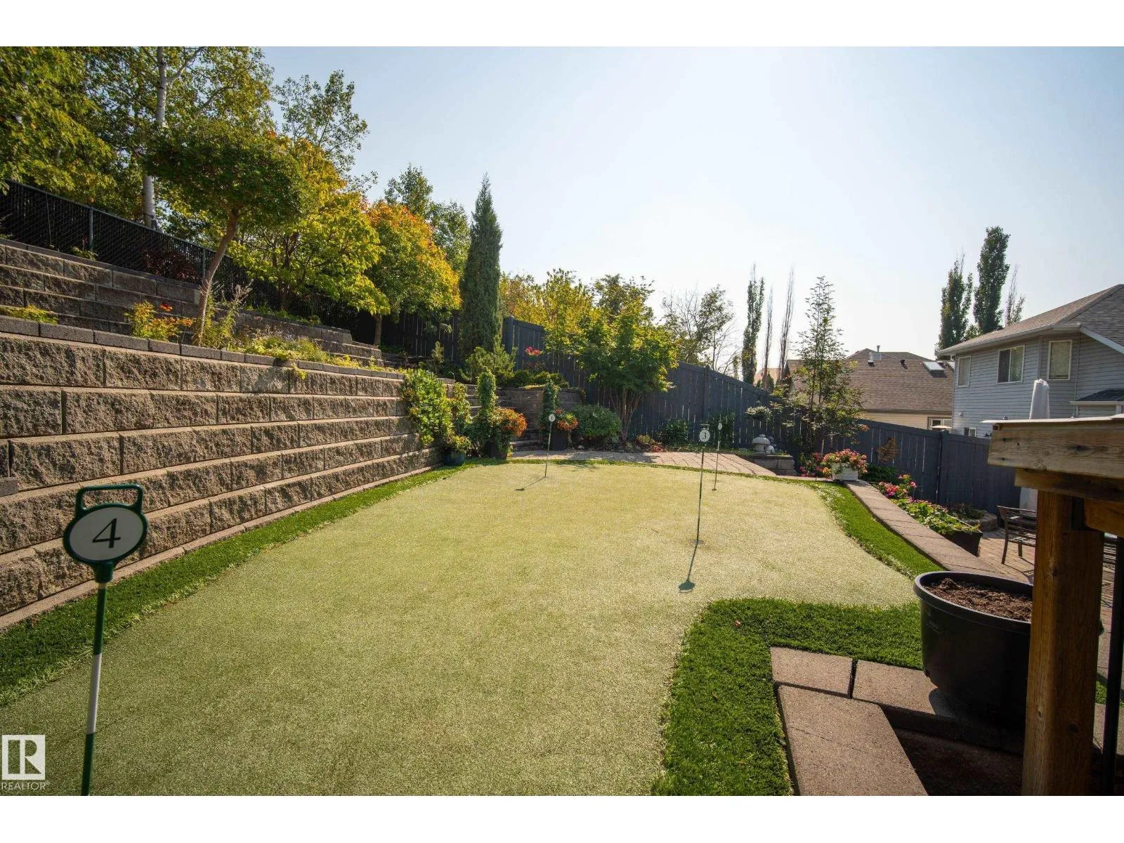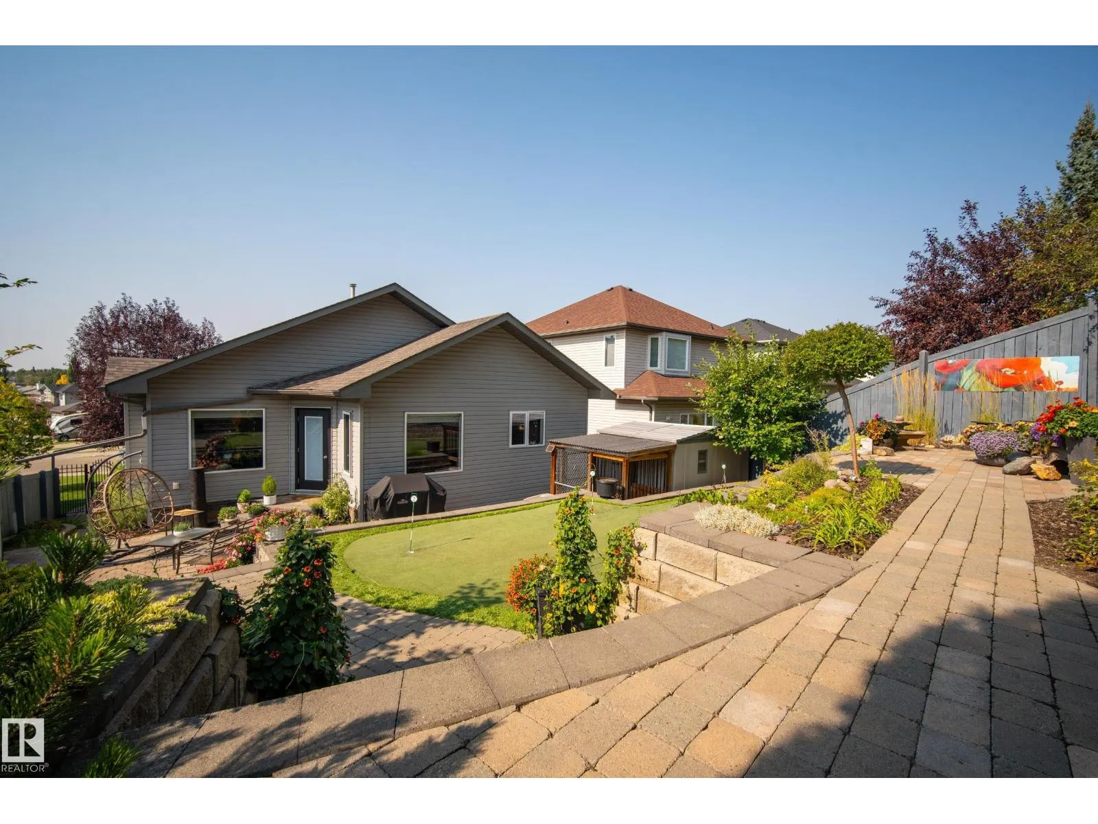 Fully renovated 1901 sqft home in the heart of Heritage Hills, offering a modern layout w/ 4 bedrms & 3 baths. Large windows and open living spaces centre around an award-winning Cucina Bella kitchen (2022) featuring Sollera cabinetry, pull-out storage, quartz countrs, Hanstone backsplash & Fisher & Paykel appliances, w/ porcelain tile flooring on the main floor. The primary bedrm occupies its own private level & includes a custom oversized WI closet & a 5pc ensuite w/ double sinks, deep soaker tub, & shower. The fully finished basement adds a 4th bedrm, bath, & rec room with in-floor heating. Outside, the landscaped backyard features a golf putting green, fruit trees, & gated access to walking trails leading to Heritage Hills School, playgrounds, soccer fields, and outdoor ice rinks, all within walking distance. Major upgrades include roof, gutters, exterior doors, furnace, AC, HWT, updated flooring, renovated baths, interior painting, and gemstone exterior accent lightingâmaking this home move in ready. (id:27476)