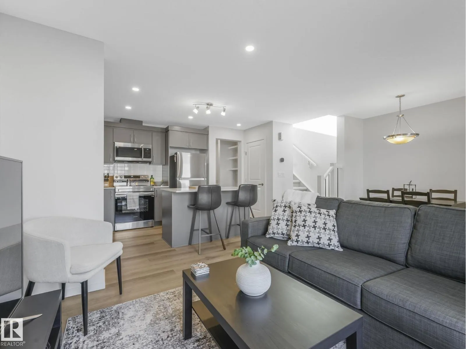 Step into this beautiful 2024-designed home that shows like a show suite, offering bright, modern finishes & exceptional functionality with NO CONDO FEES. Located in Hearthstone a friendly neighbourhood w/ excellent access at both ends of the community & close to scenic walking trails. The home features functional living, dining, and kitchen areas, ideal for both everyday living & entertaining. The kitchen is finished with quartz countertops, stainless steel appliances, and professionally installed Bali cordless window coverings throughout. The Primary south-facing bedroom offers a walk-in closet and excellent natural light. Unlike many attached homes this property includes a full basement, providing ample storage and future development potential. Enjoy outdoor living on the huge 19â x 19â deck, a welcoming front porch. The insulated, drywalled double attatched garage is generously sized to accommodate a full-size truck. Bright, stylish, & thoughtfully designedâthis home checks all the boxes. (id:27476)