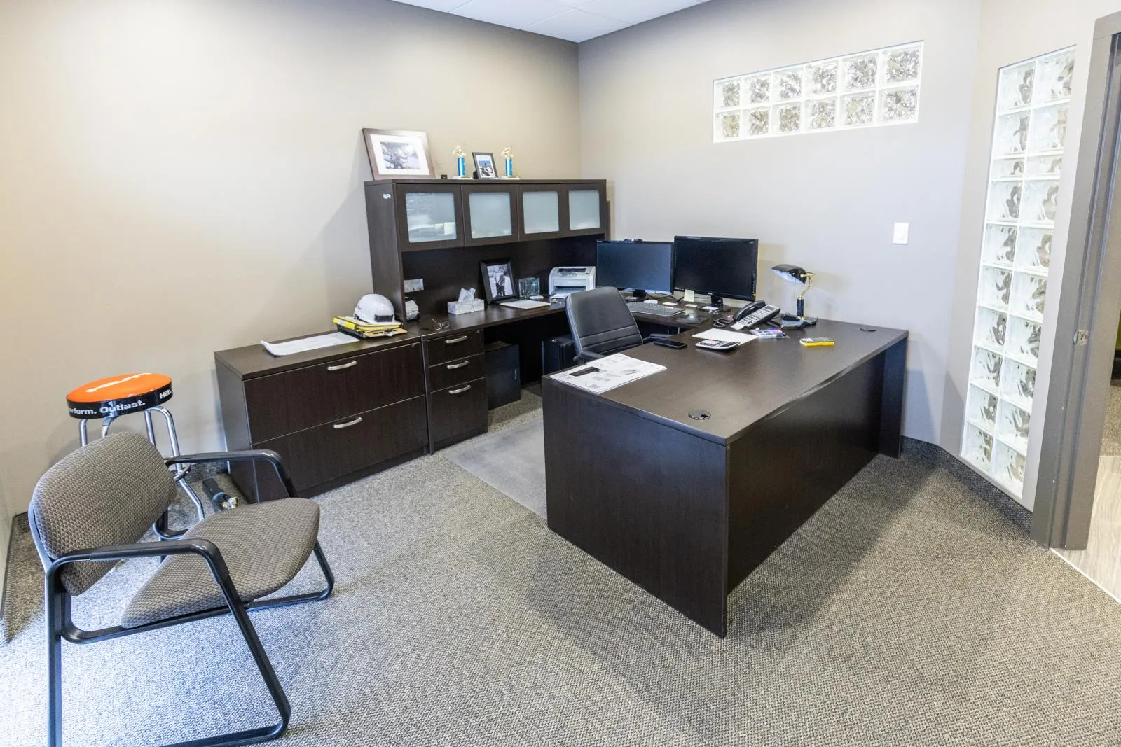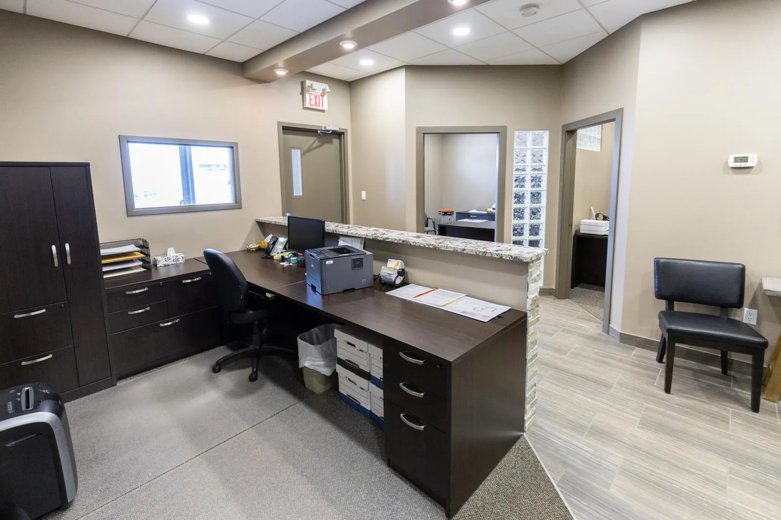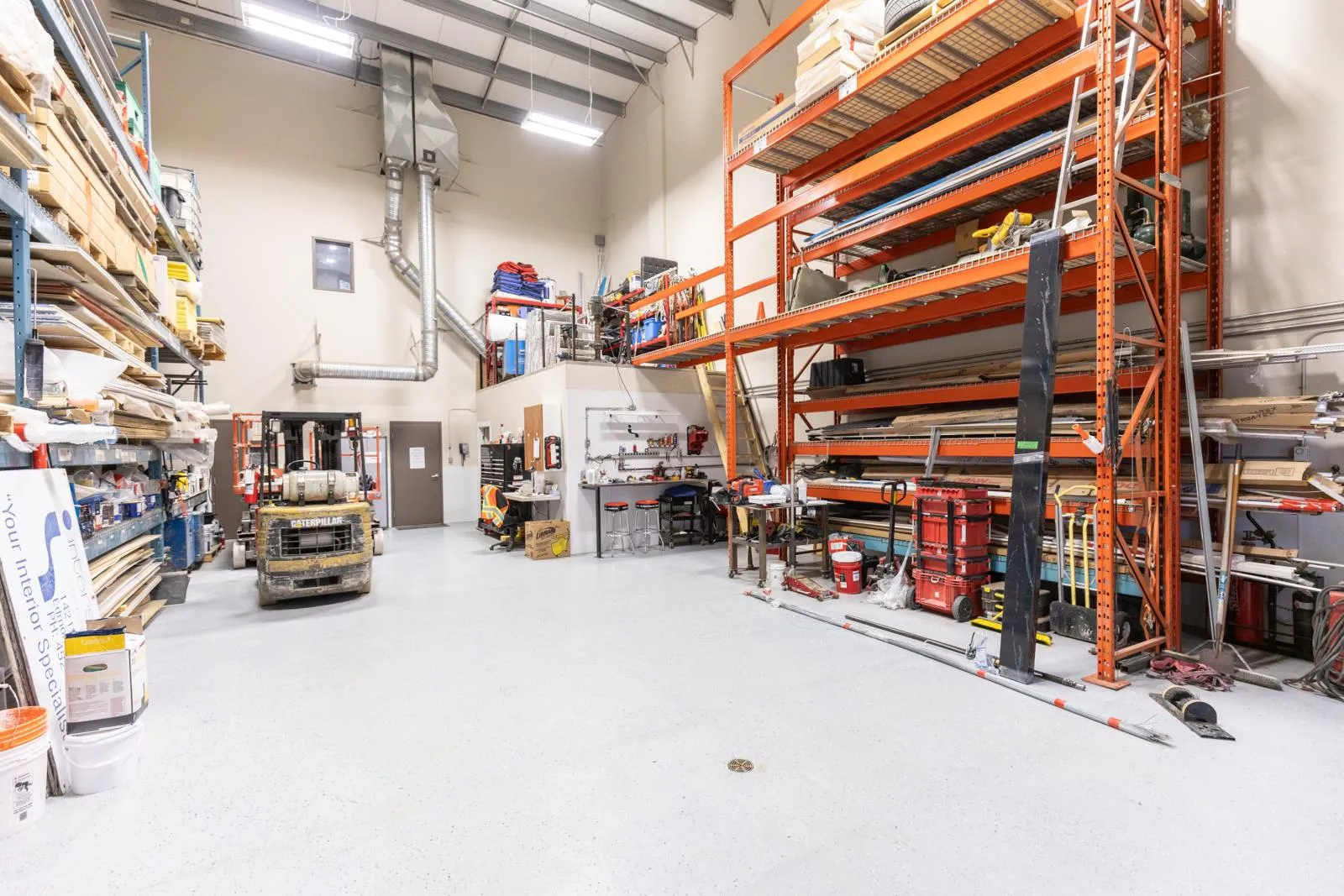 This versatile industrial building (zoned IM) offers an excellent combination of functional shop space and well-sized office areas, making it ideal for a variety of commercial or light industrial uses. The warehouse/shop measures 50â x 30â and features a durable, fully epoxy-finished floor and 2pc bathroom. Ceiling heights reach approximately 32â at the peak and 20â - 24â at the low end, providing outstanding vertical clearance for equipment, racking, or storage. A 16â x 14â overhead door enhances accessibility, while a well-designed tool crib and mezzanine add valuable storage efficiency. Complementing the warehouse is a thoughtfully designed office component with both main-floor and mezzanine offices, each measuring 30â x 30â. The main level includes two offices, an attractive reception area with built-in desk, granite countertops, filing and storage, plus a two-piece bath and kitchenette. The upper level features two additional offices, an executive boardroom, staff kitchen, two-piece bath, and eating area. A fenced rear yard measuring 30â x 130â is available for storage at $588 per month if required. Overall, this property presents an excellent opportunity for businesses seeking a clean, functional, and well-maintained industrial space with strong ceiling height and flexible office integration. (id:27476)