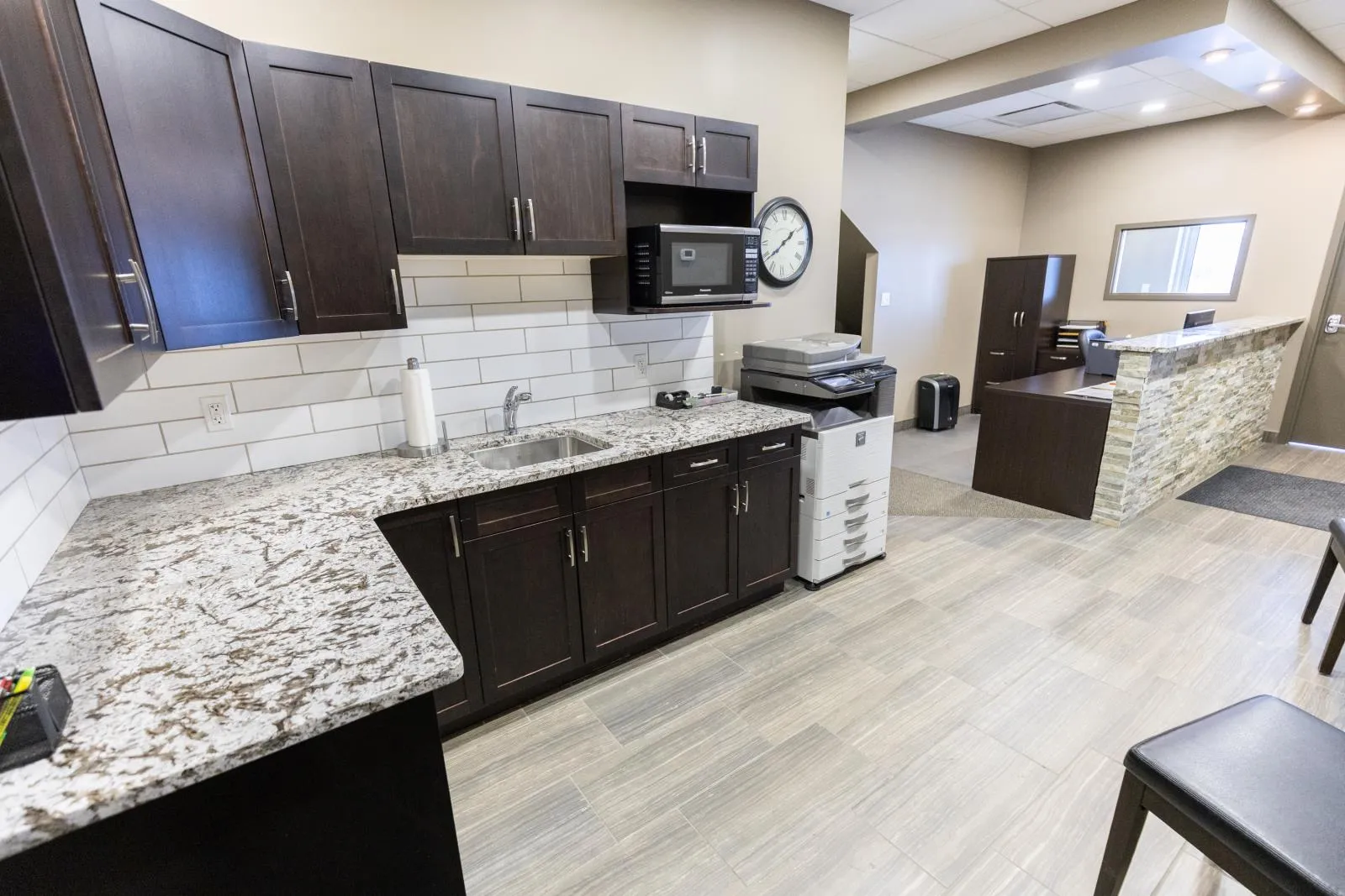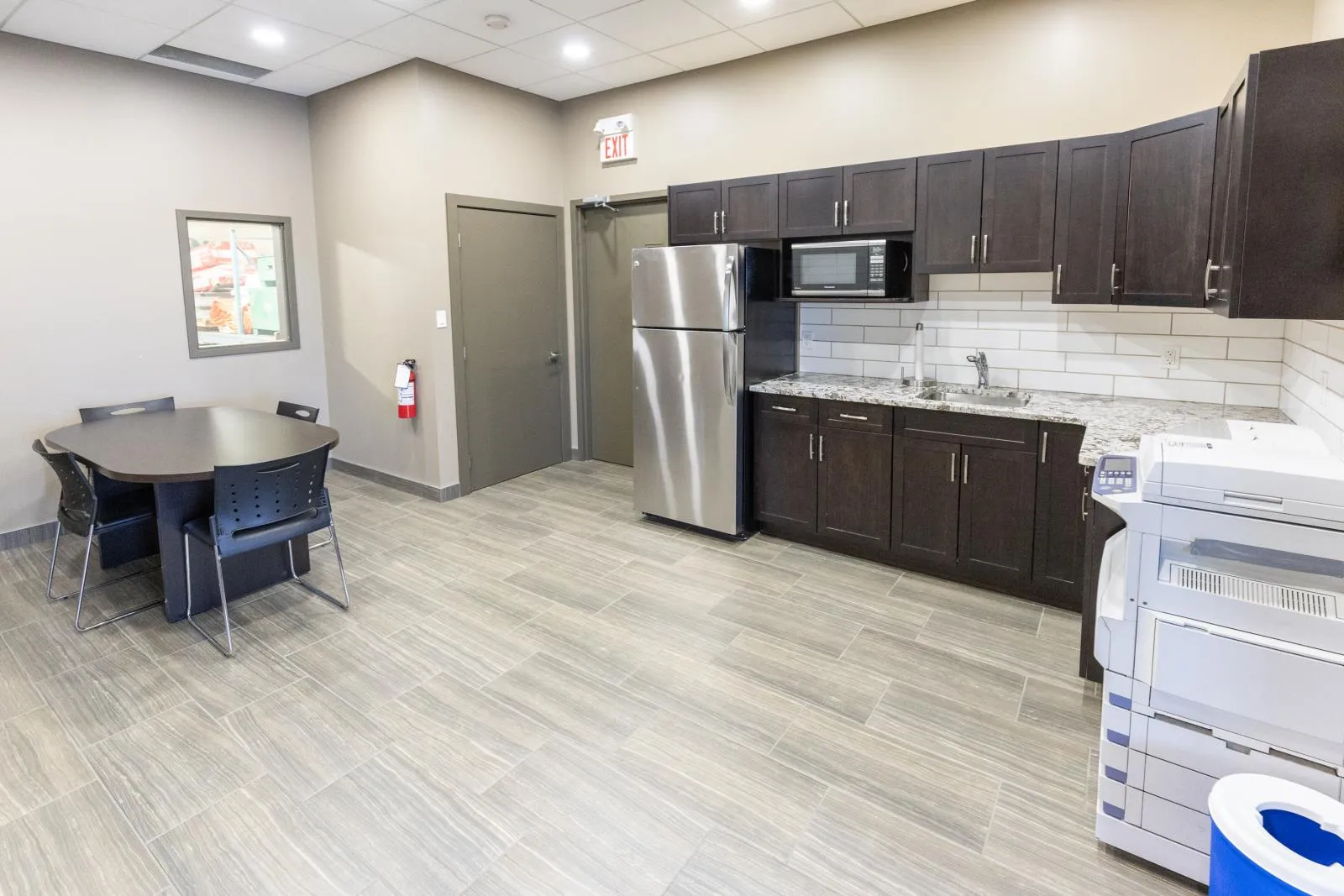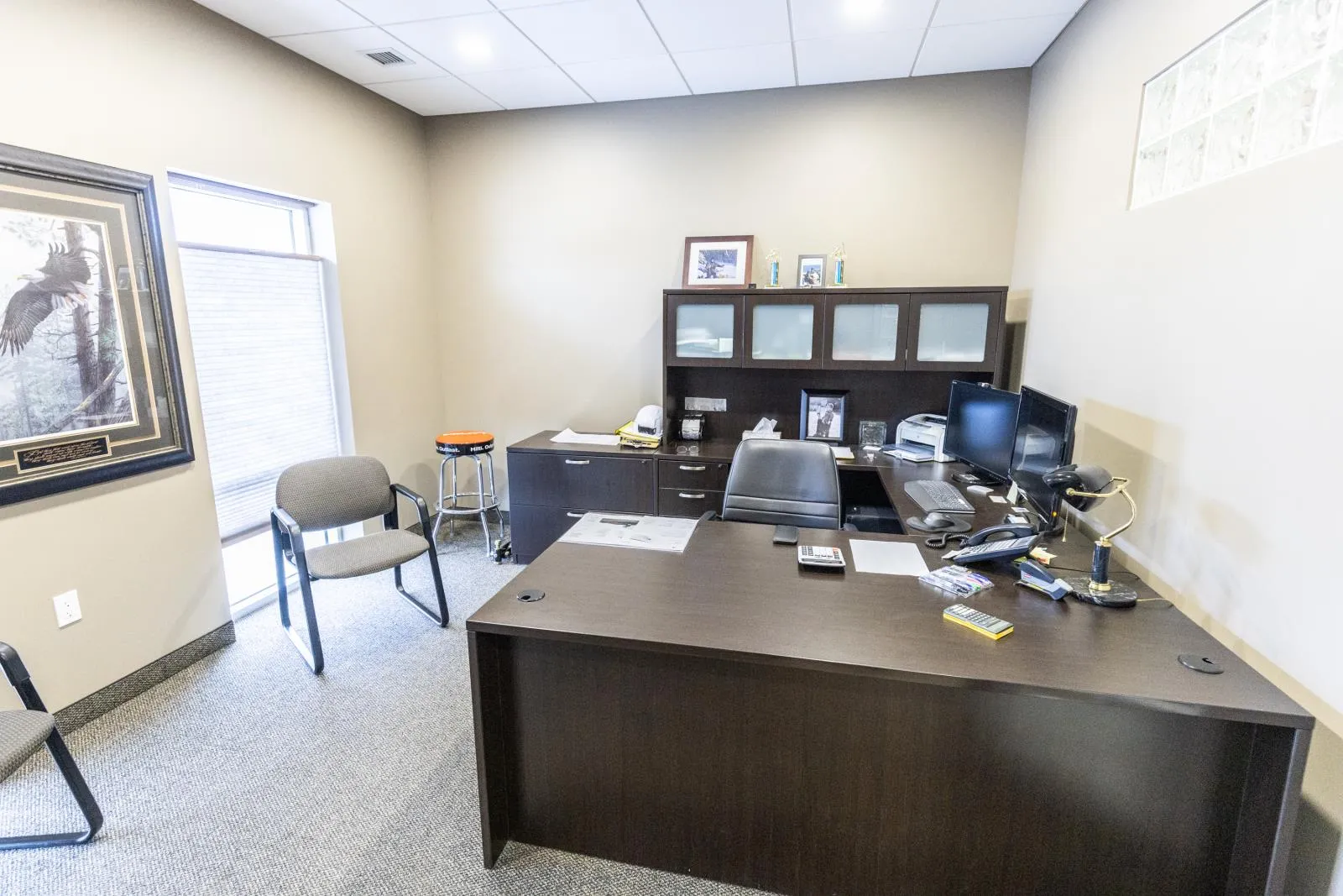 This versatile industrial building (zoned IM) offers an excellent combination of functional shop space and well-sized office areas, making it ideal for a variety of commercial or light industrial uses. The warehouse/shop measures 50â x 30â and features a durable, fully epoxy-finished floor and 2pc bathroom. Ceiling heights reach approximately 32â at the peak and 20â - 24â at the low end, providing outstanding vertical clearance for equipment, racking, or storage. A 16â x 14â overhead door enhances accessibility, while a well-designed tool crib and mezzanine add valuable storage efficiency. Complementing the warehouse is a thoughtfully designed office component with both main-floor and mezzanine offices, each measuring 30â x 30â. The main level includes two offices, an attractive reception area with built-in desk, granite countertops, filing and storage, plus a two-piece bath and kitchenette. The upper level features two additional offices, an executive boardroom, staff kitchen, two-piece bath, and eating area. A fenced rear yard measuring 30â x 130â is available for storage at $588 per month if required. Overall, this property presents an excellent opportunity for businesses seeking a clean, functional, and well-maintained industrial space with strong ceiling height and flexible office integration. (id:27476)