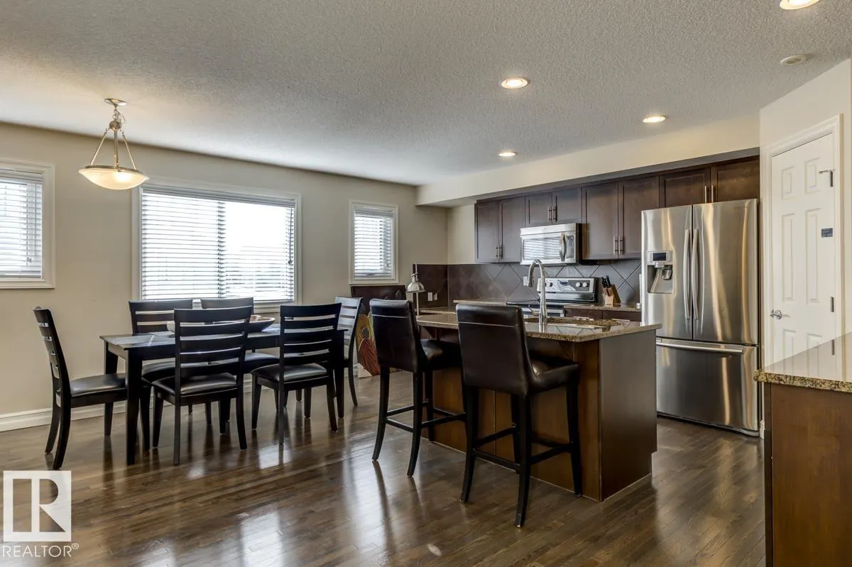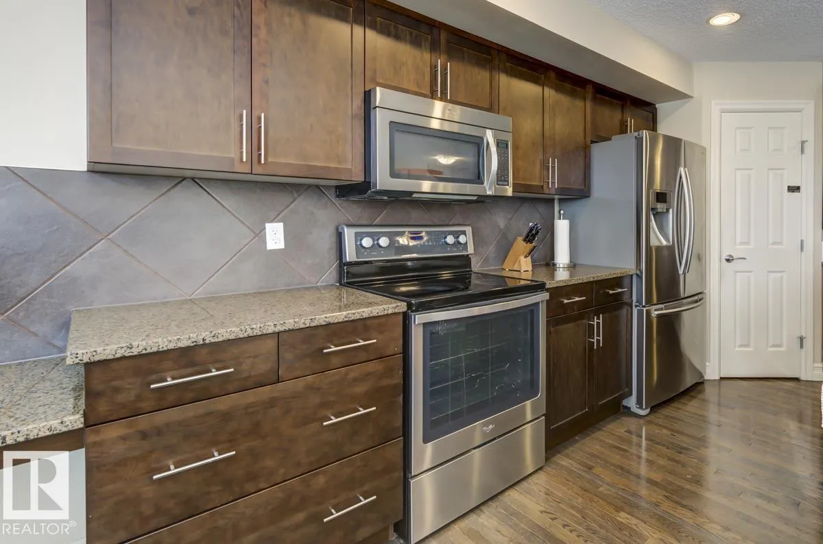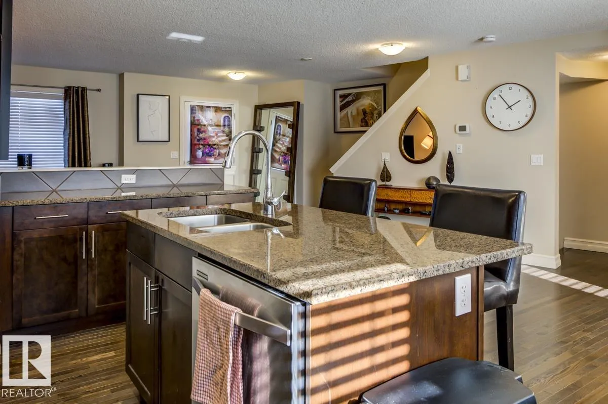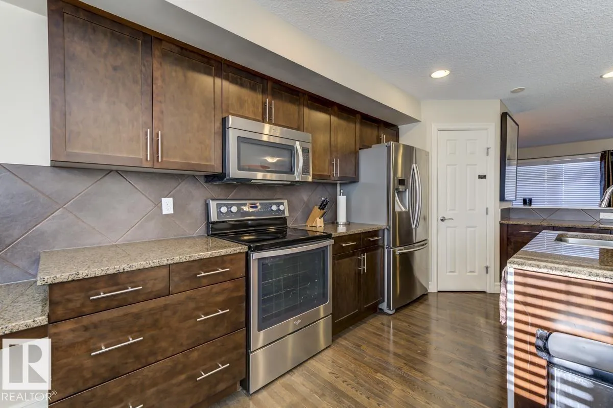 Welcome HOME! This spacious 3 bed 2.5 bath home in desirable Emerald Hills SHPK is one of the LARGEST floor plans in the complex and is in pristine condition! As you enter the main floor notice the gorgeous open concept layout & high-end quality finishings, hardwood floors, upgraded kitchen, stainless steel appliances, granite counters, large island, walk-in pantry, main floor laundry, and office nook! The living room is huge and features an oversized balcony to enjoy the fresh air and green space views as it faces the community garden & play areas. The upper level holds three great-sized bedrooms and the ownerâs suite has a 3pc ensuite with large walk-in shower & an oversized closet. Other features include an OVERSIZED double attached garage WITH man door(there are only two like this in the complex!)easily fitting two vehicles + two motorbikes or storage. Do not miss the tankless hot water system. This well-maintained complex offers visitor parking and is close to all amenities! What are you waiting for? (id:27476)