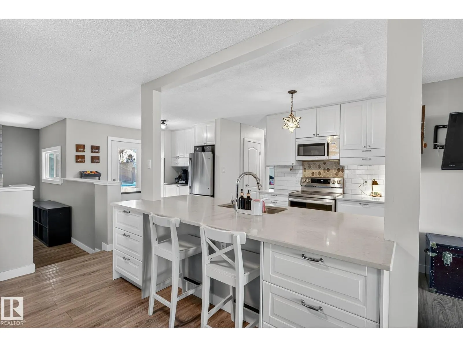 Welcome to this spacious bungalow located in a mature neighbourhood! Offering 4 bedrooms and 3 full bathrooms, this home delivers exceptional space and functionality. The bright main floor features a beautifully designed kitchen with stainless steel appliances, ample cabinetry, and generous counter space. Two separate living areas on the main level include a family room with a wood-burning fireplace. Three bedrooms are located upstairs, including a primary suite with a private 3-piece ensuite. The fully developed basement offers one additional bedroom, a 4-piece bathroom, den, an office and a large recreation room. Outside youâll find an oversized double detached garage and a south-facing backyard. Walking distance to Woodbridge Farms Park and elementary school. Updates: roof, furnace, and central A/C (2016), hot water tank (2022). (id:27476)