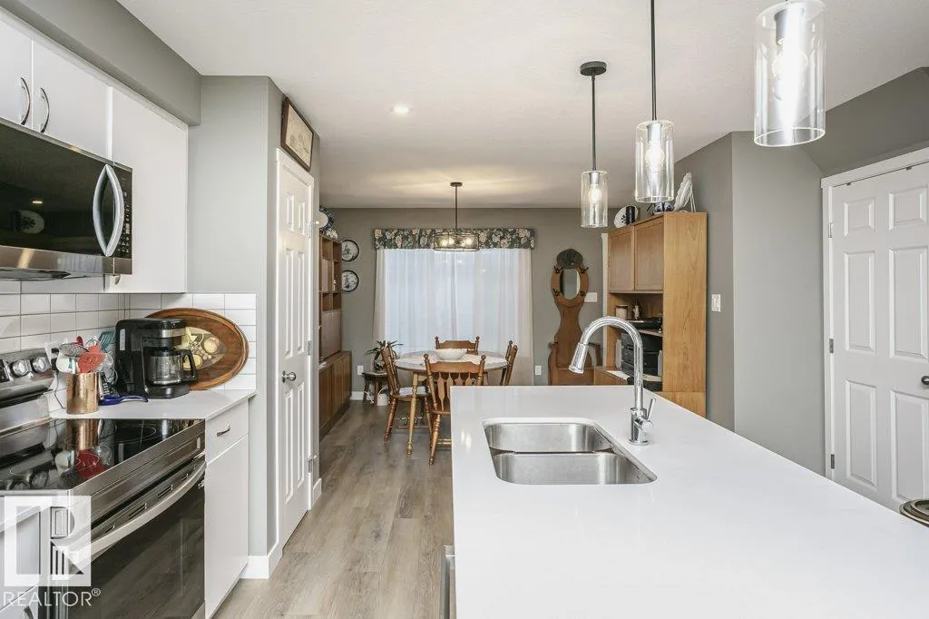 NO Condo FEES !!! An amazing value in Summerwood awaits this THREE BEDROOM THREE BATH Townhouse Built by Pacesetter Homes. Open concept on the main floor with Vinyl plank flooring throughout main level. Spacious front living area is open to the Dining Room and Kitchen with an abundance of soft close cabinets - working Island and Quartz counter tops. Back door leads to landscaped yard and Double Garage off back alley. Upstairs of this home you will find a large primary suite with massive walk in closet and full 4 piece ensuite - two additional bedrooms and another FULL bath. Second floor laundry is a real bonus. Basement level has plumbing for a future 4th bathroom and open for additional family expansion. Great location in Summerwood close to parks -walking trails and Public Transit (id:27476)
