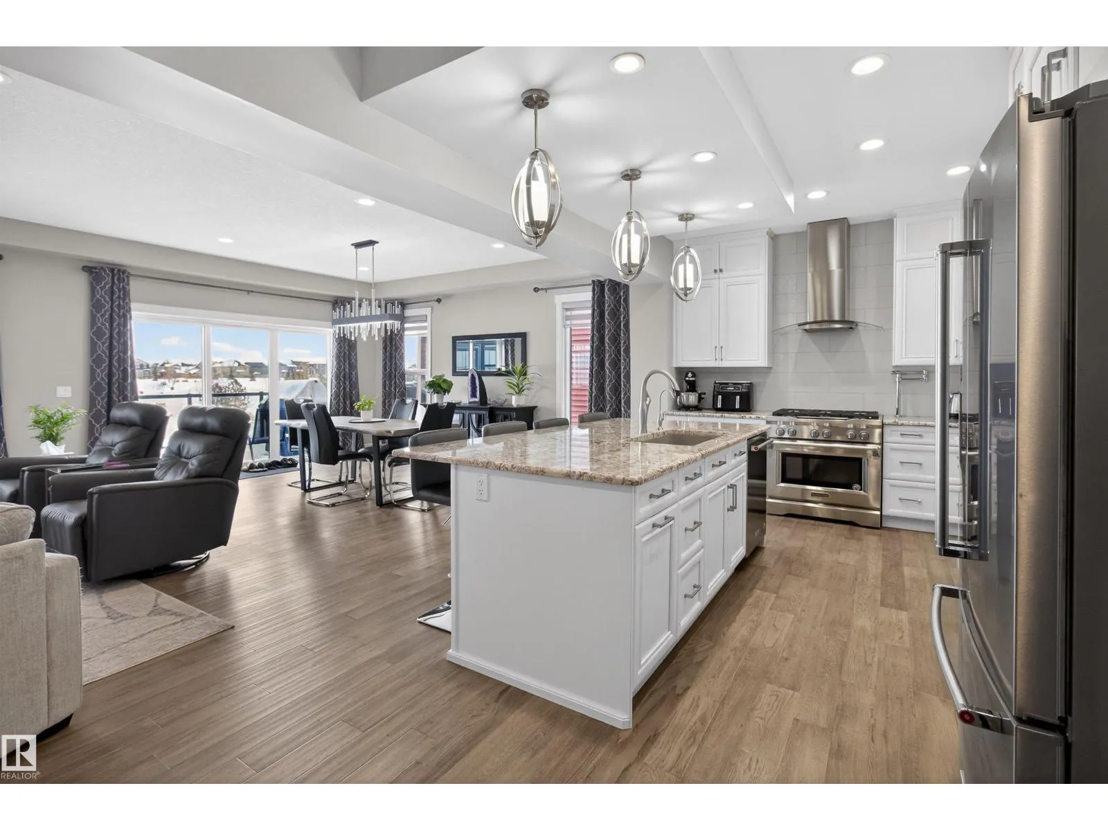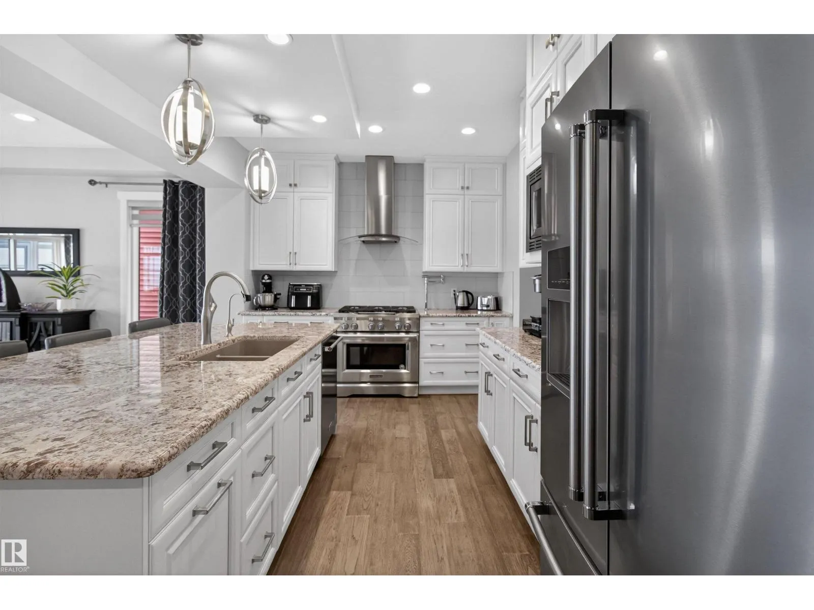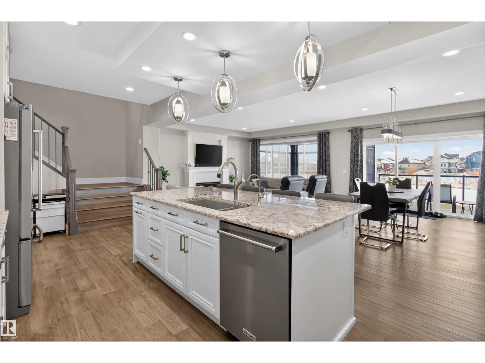 MILLION DOLLAR VIEW! Welcome to this stunning 2 storey home backing onto the lake! Open concept with 2646 square feet plus a fully finished WALKOUT BASEMENT! Gorgeous GOURMET KITCHEN with huge island, pantry, granite countertops, gas stove, and an abundance of beautiful cabinetry. Large living room with gas fireplace and large windows. AWESOME SUNROOM and adjacent deck to enjoy those beautiful views. Upstairs are 3 bedrooms, Bonus room, and laundry area. The Primary Bedroom features a gorgeous 5 piece ensuite with soaker tub, shower, dual sinks, vanity plus 2 walk-in closets. Fabulous basement with massive Rec Room, 4th bedroom, 4 piece bathroom, and utility/storage space. Central A/C, hot water on demand, water softener, reverse osmosis & central vac system. Super low maintenance front & backyard with stone patio & rubber mulch. Double attached HEATED garage. Beautiful curb appeal! Unbeatable location! Close to schools, parks, shopping and more! Visit REALTOR® website for more information. (id:27476)